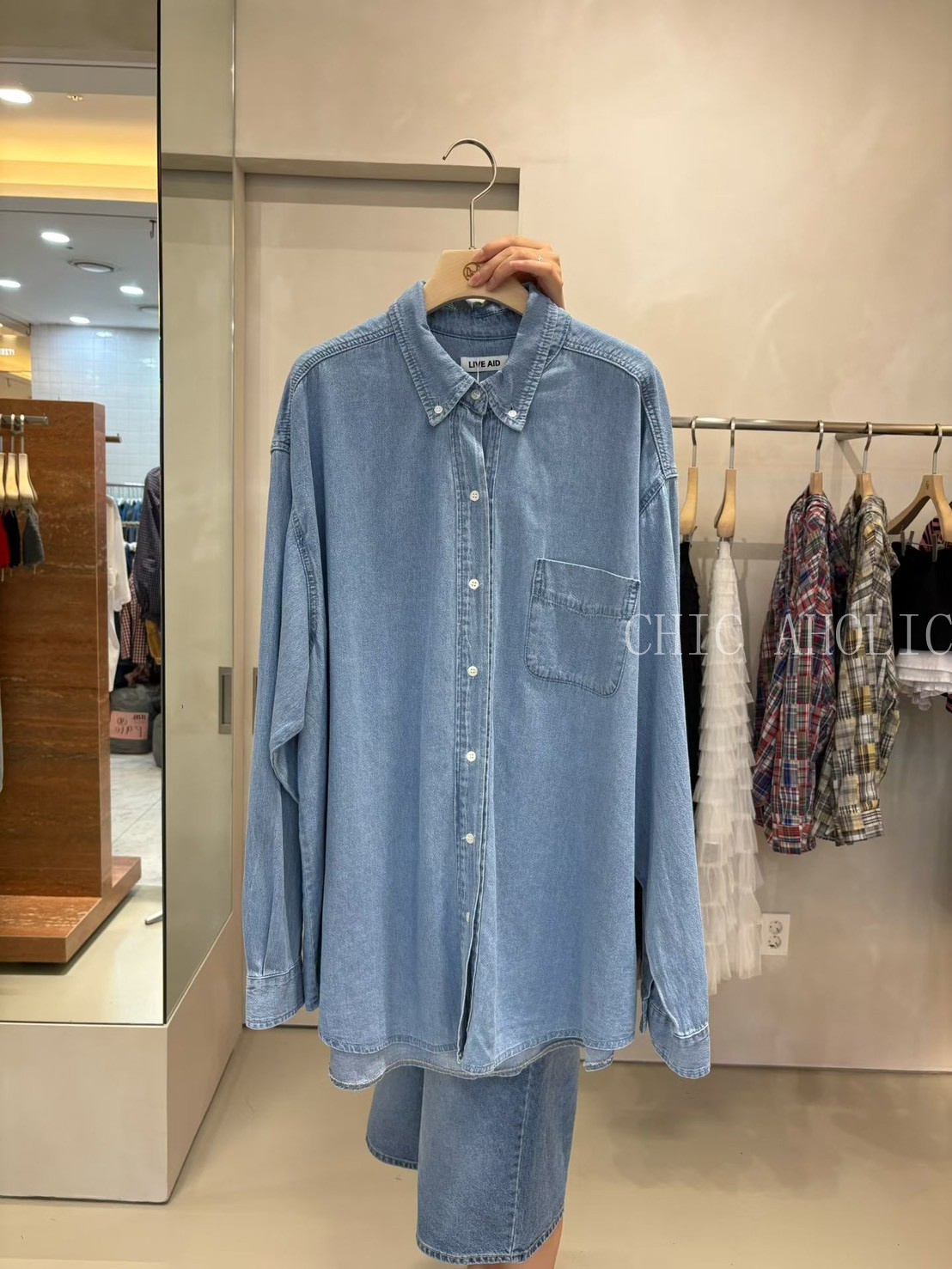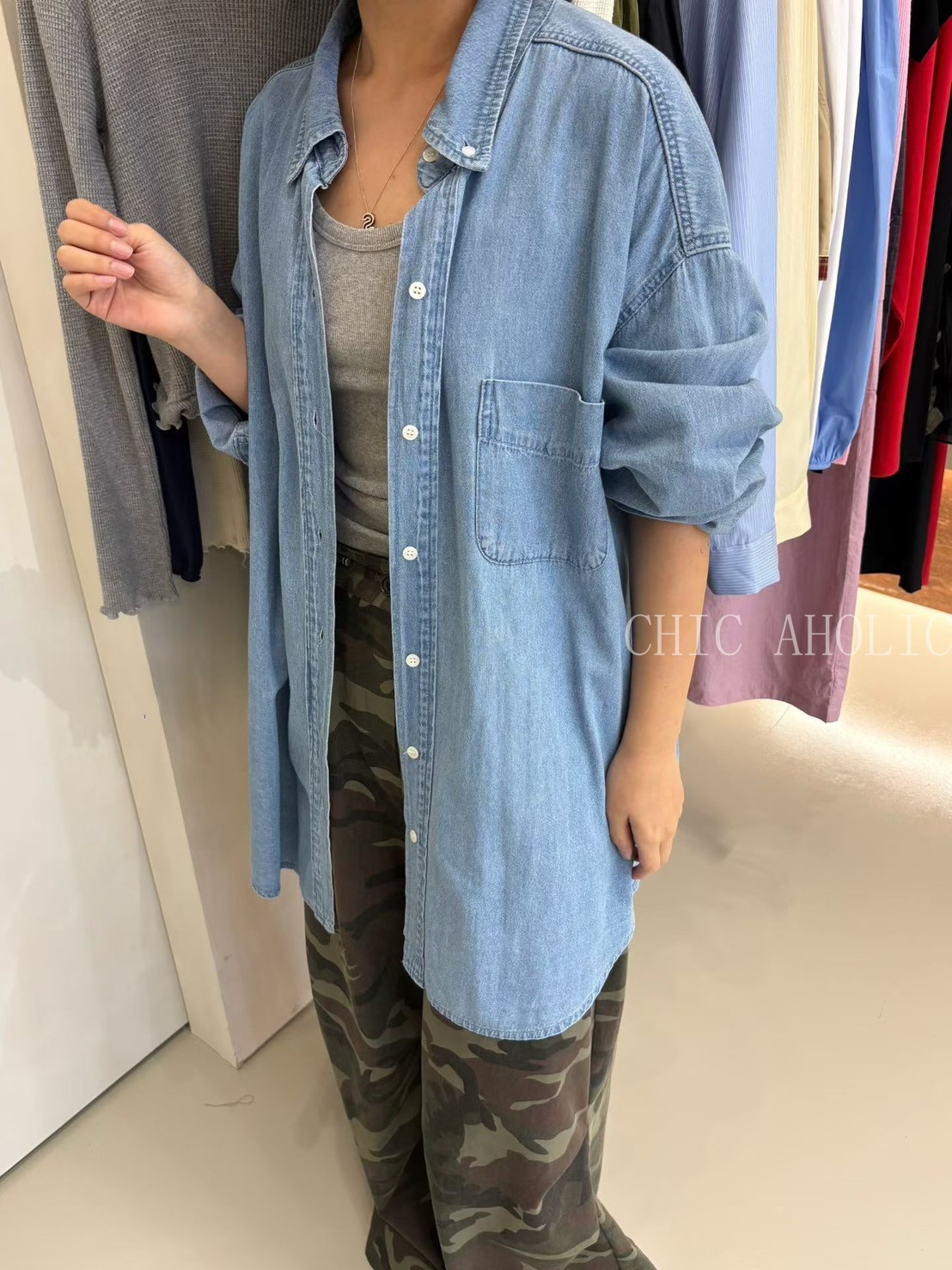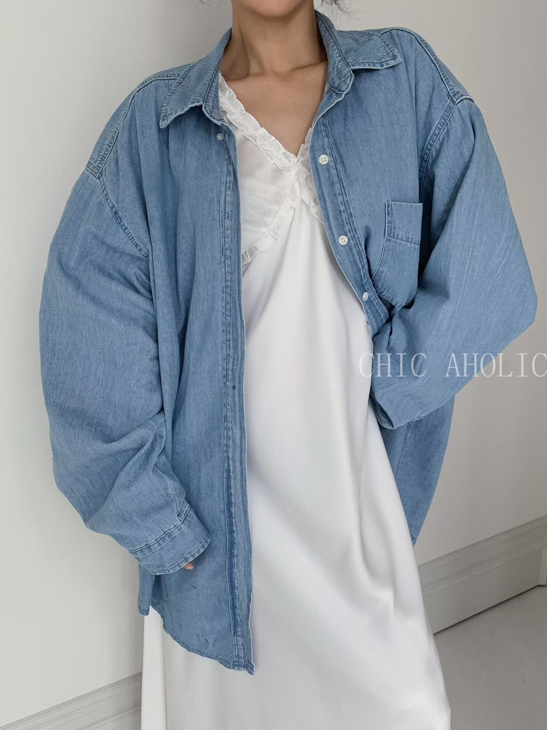 淺牛仔刷色襯衫
