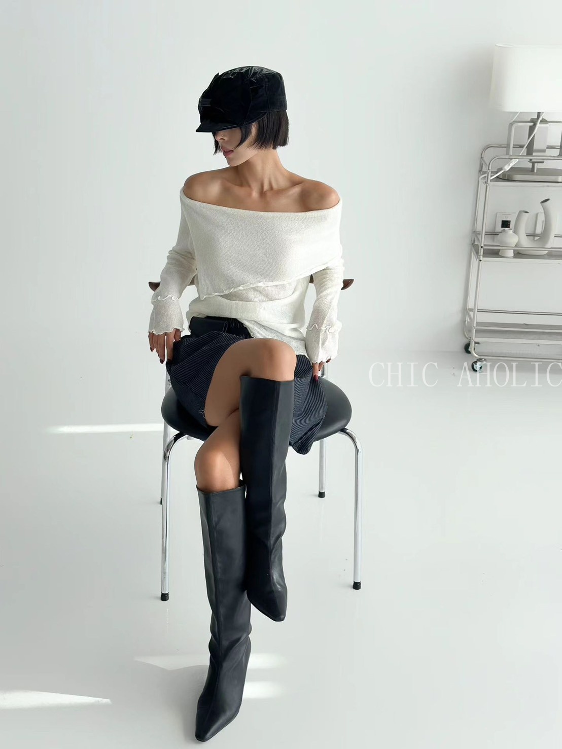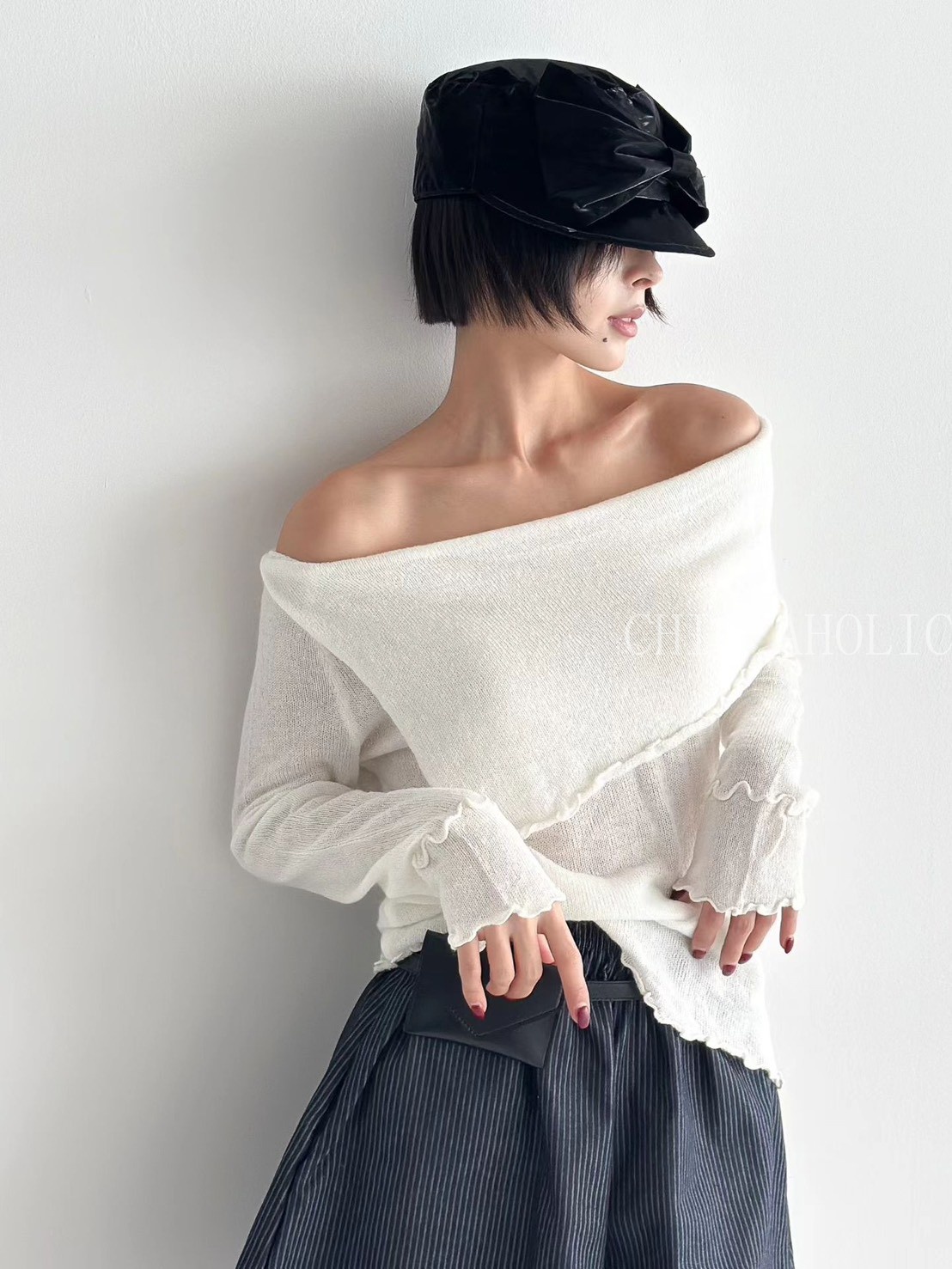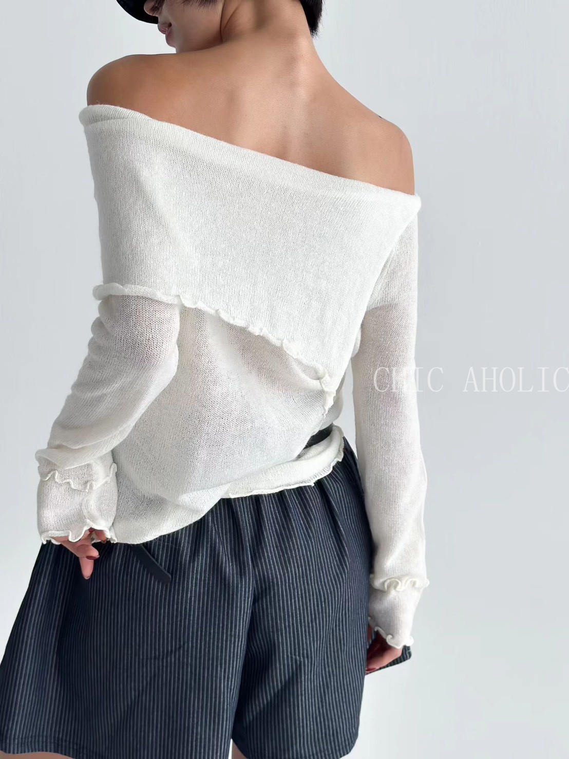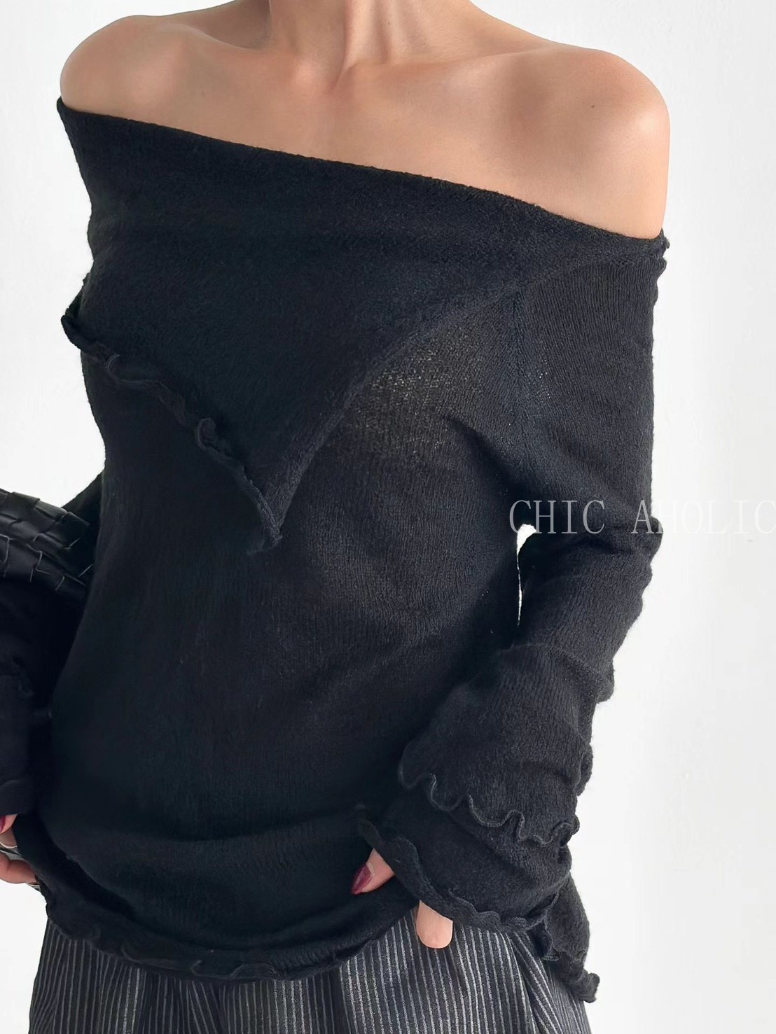 設計感斜擺捲邊針織衣