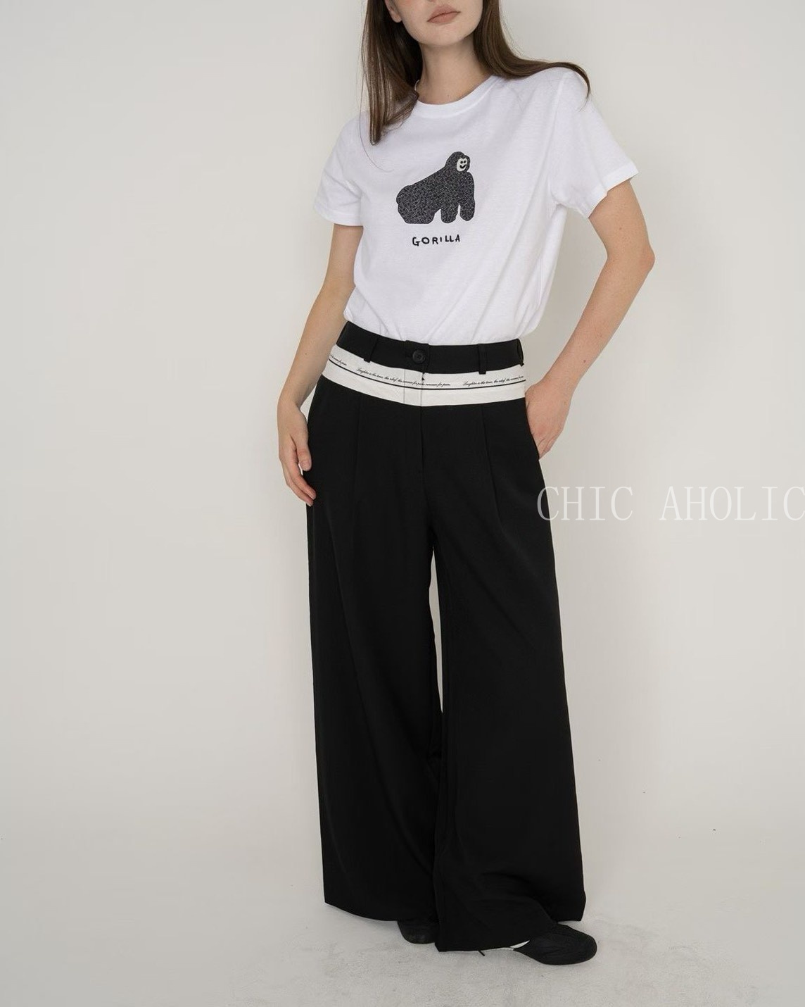 腰頭拼字母西裝長褲