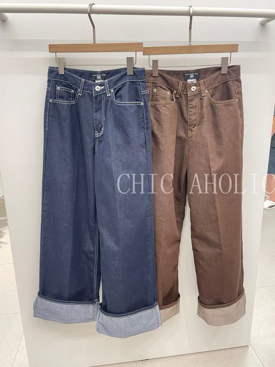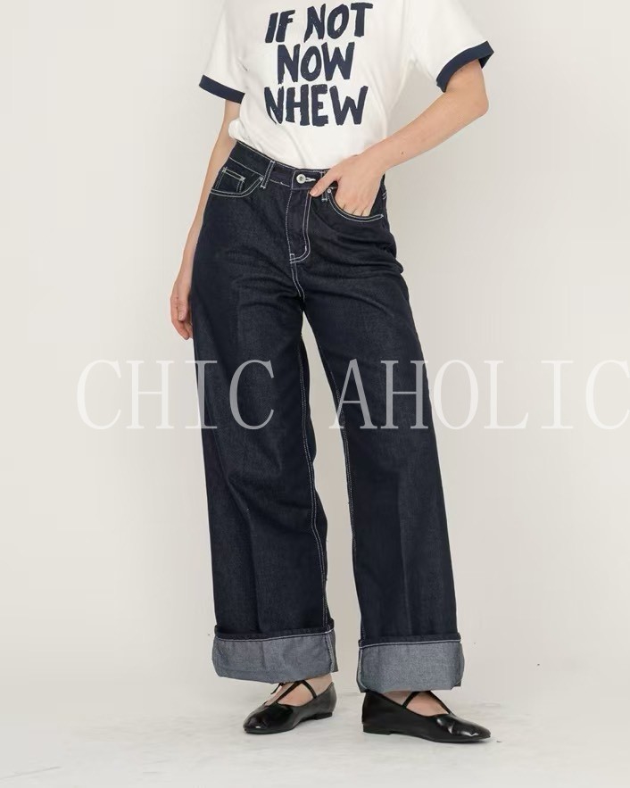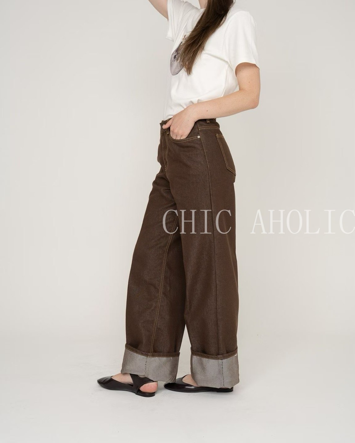 WN08反折褲腳咖啡牛仔褲