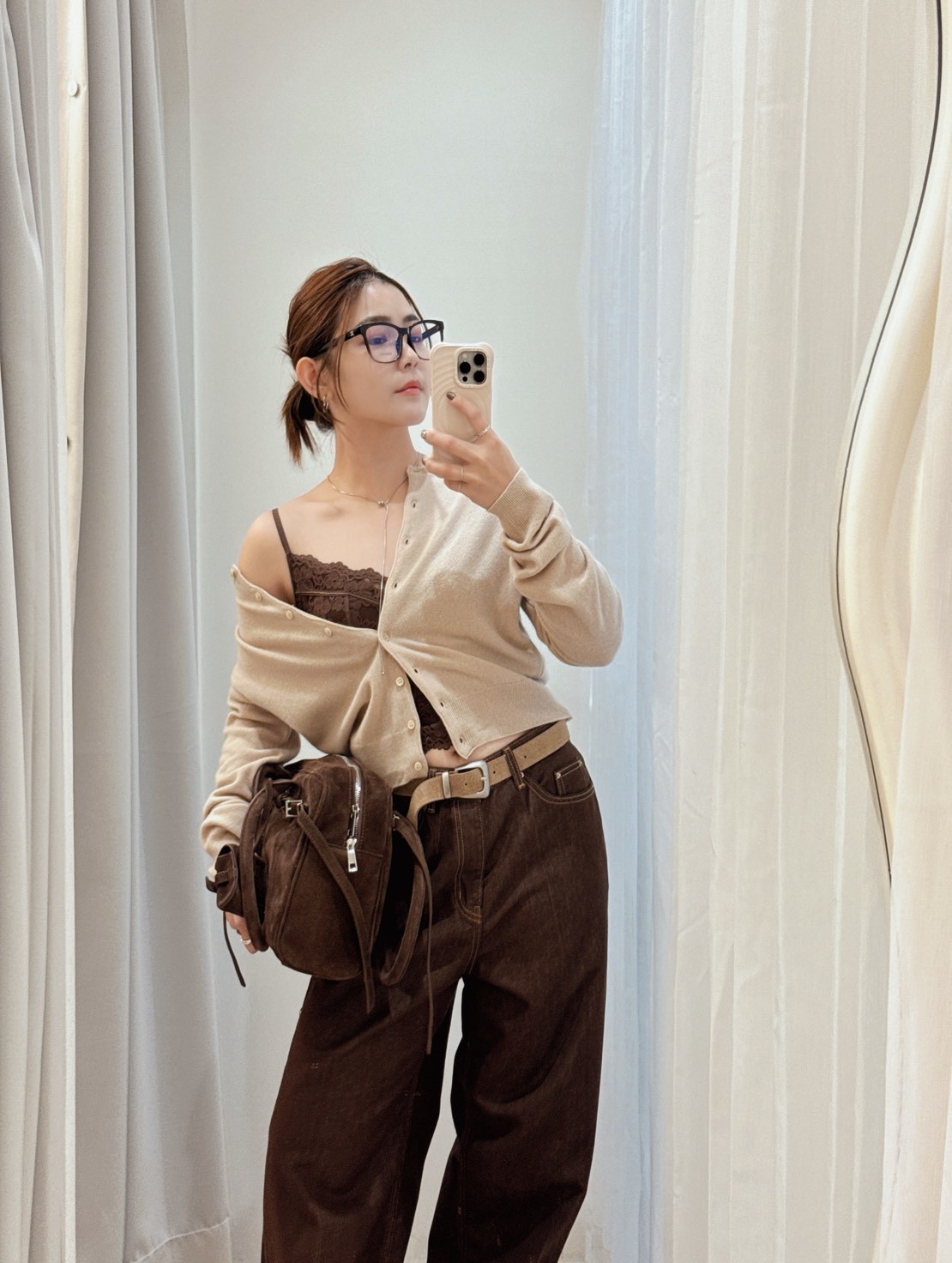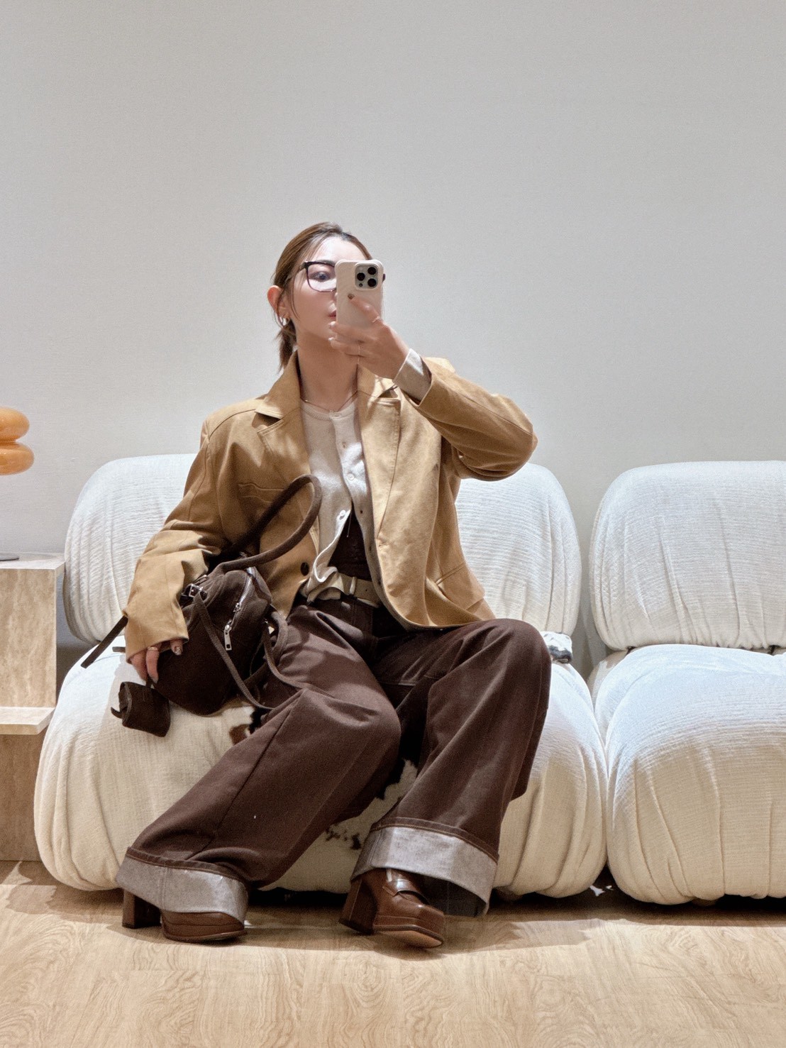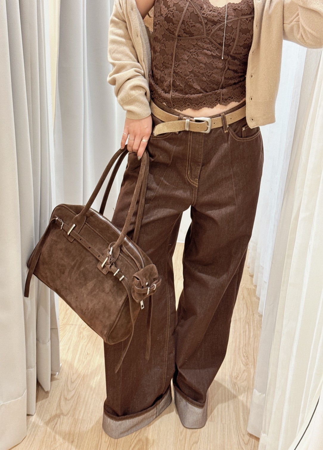 WN08反折褲腳咖啡牛仔褲