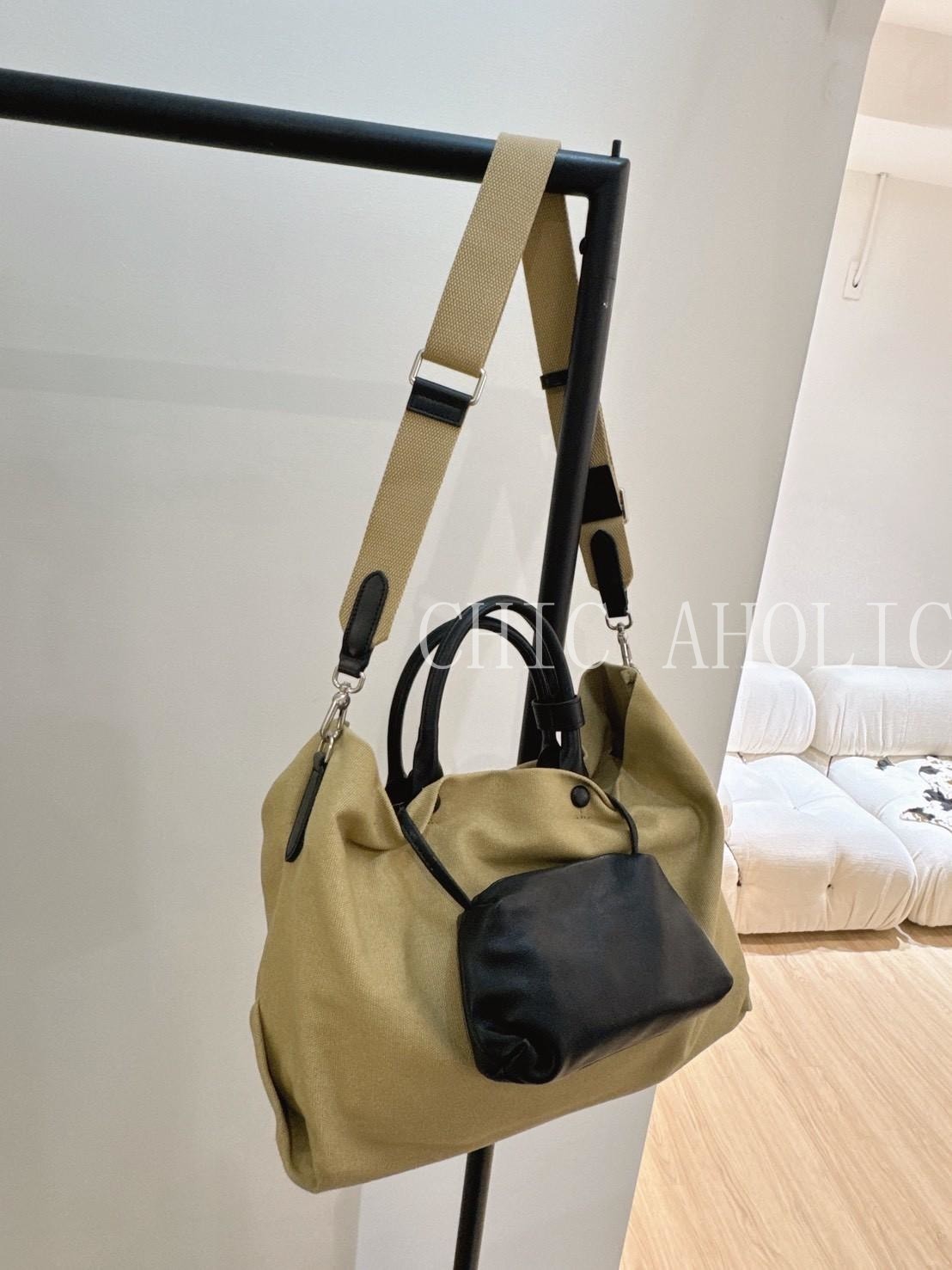 WN16黑提把鬆弛真皮子母包
