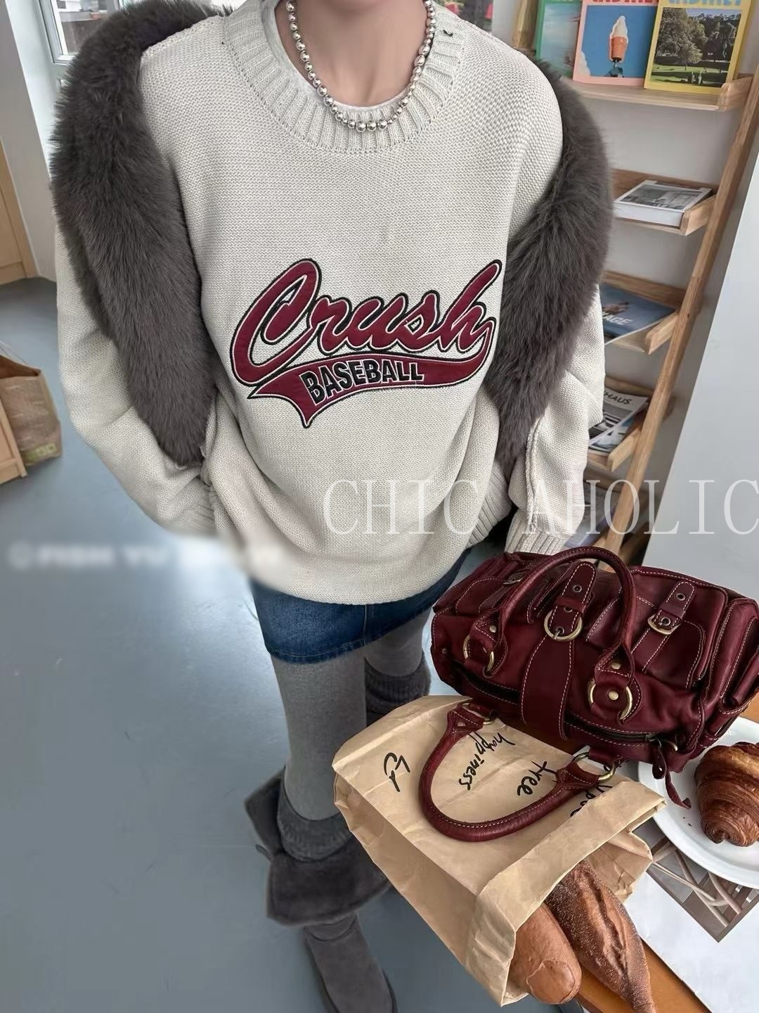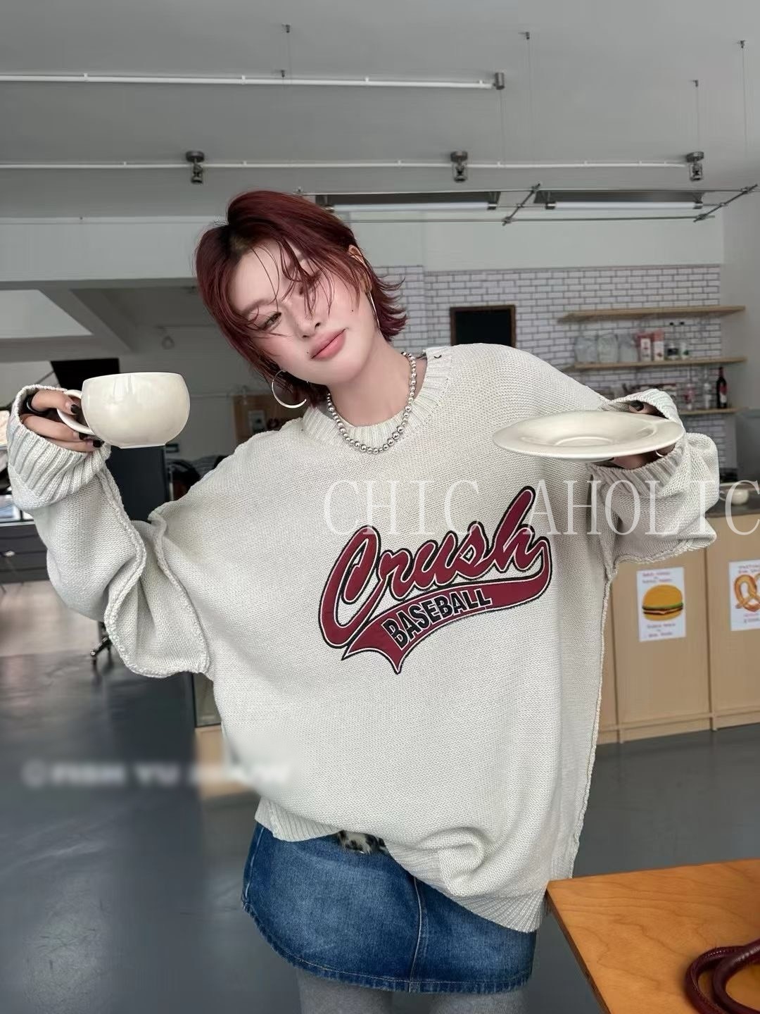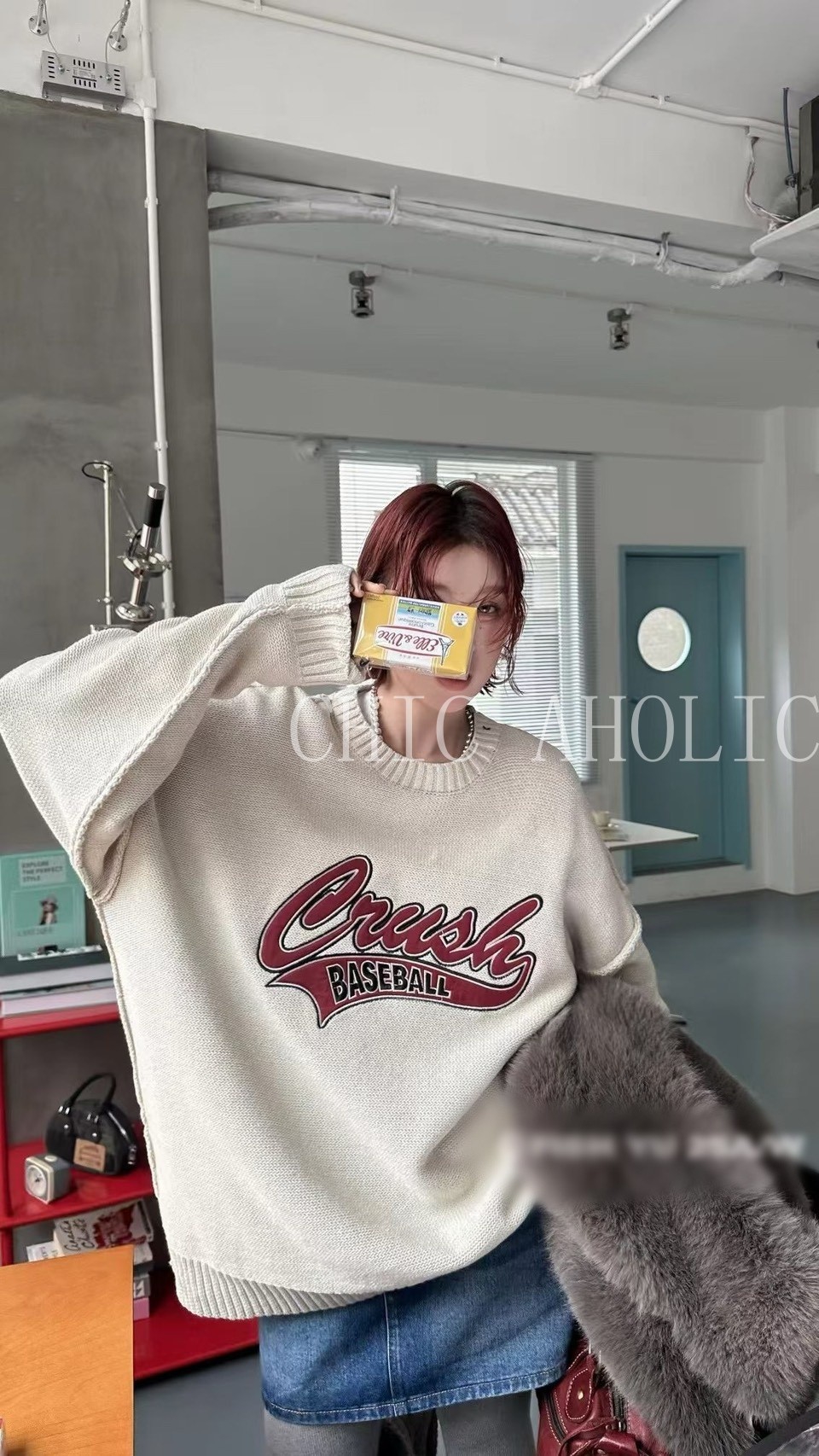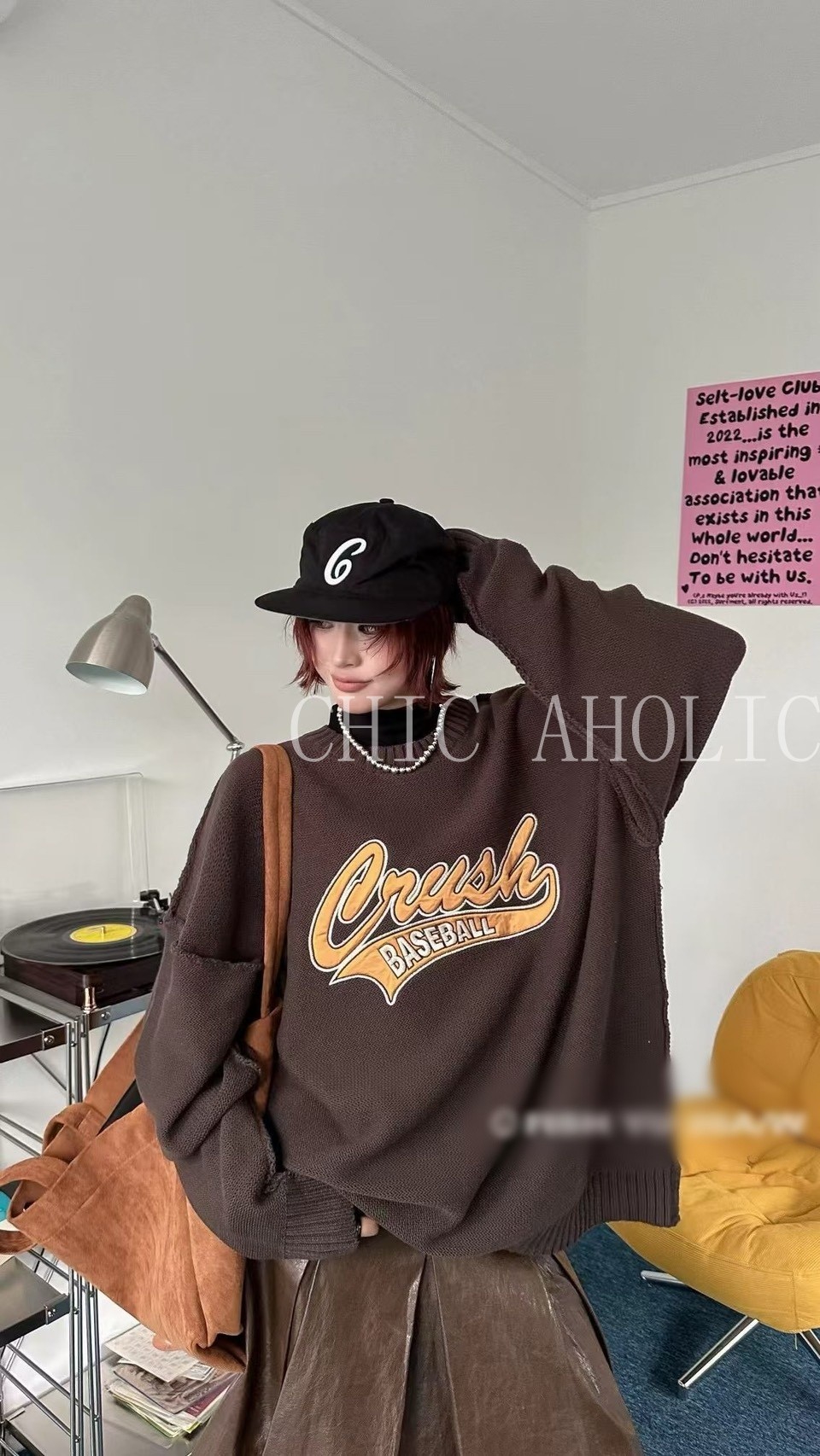 WN21棒球風字母針織寬衣