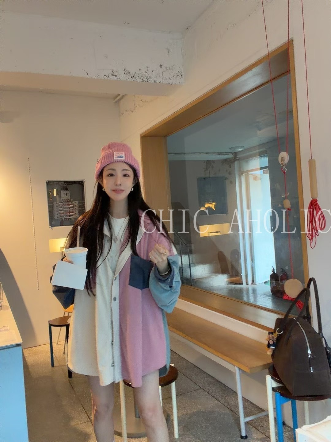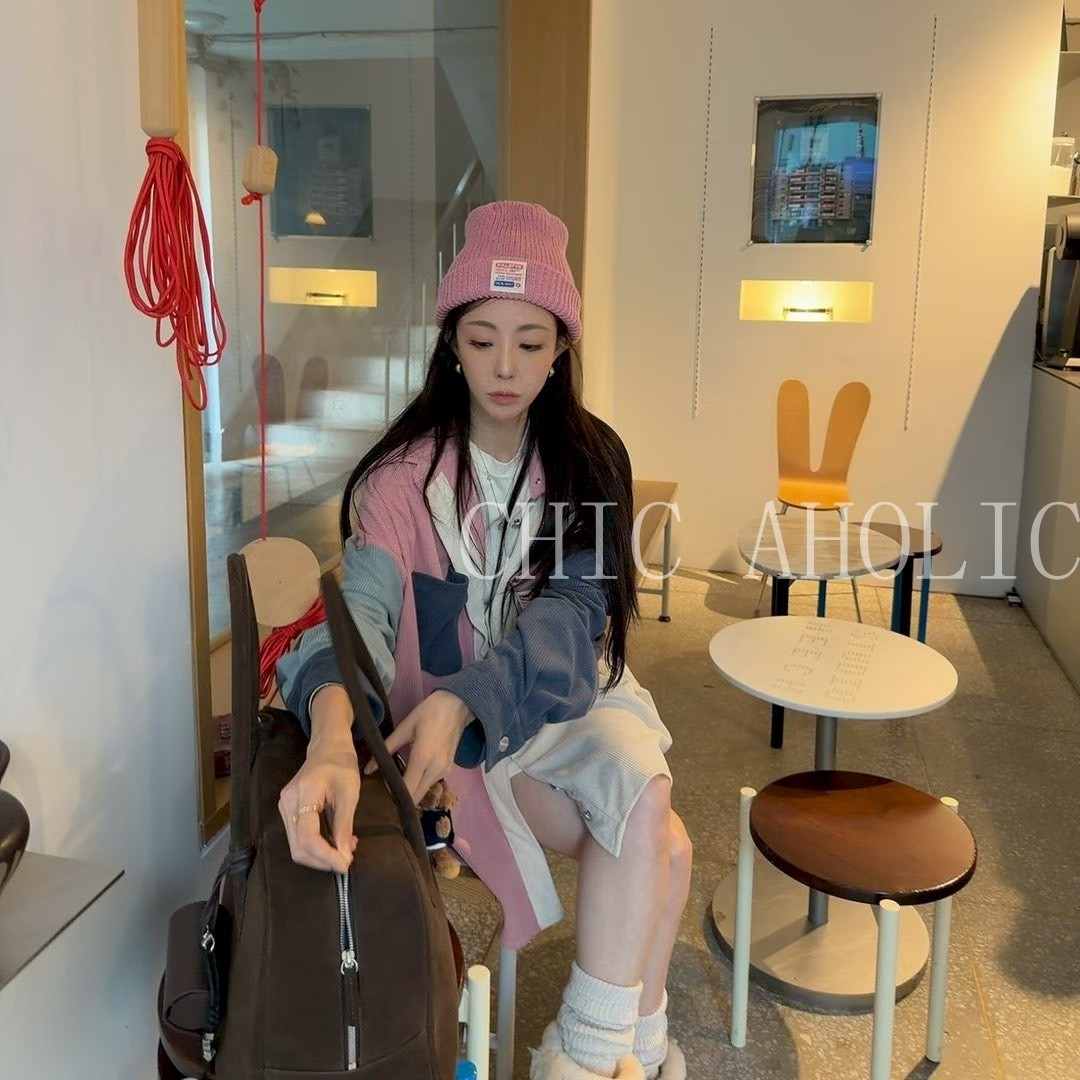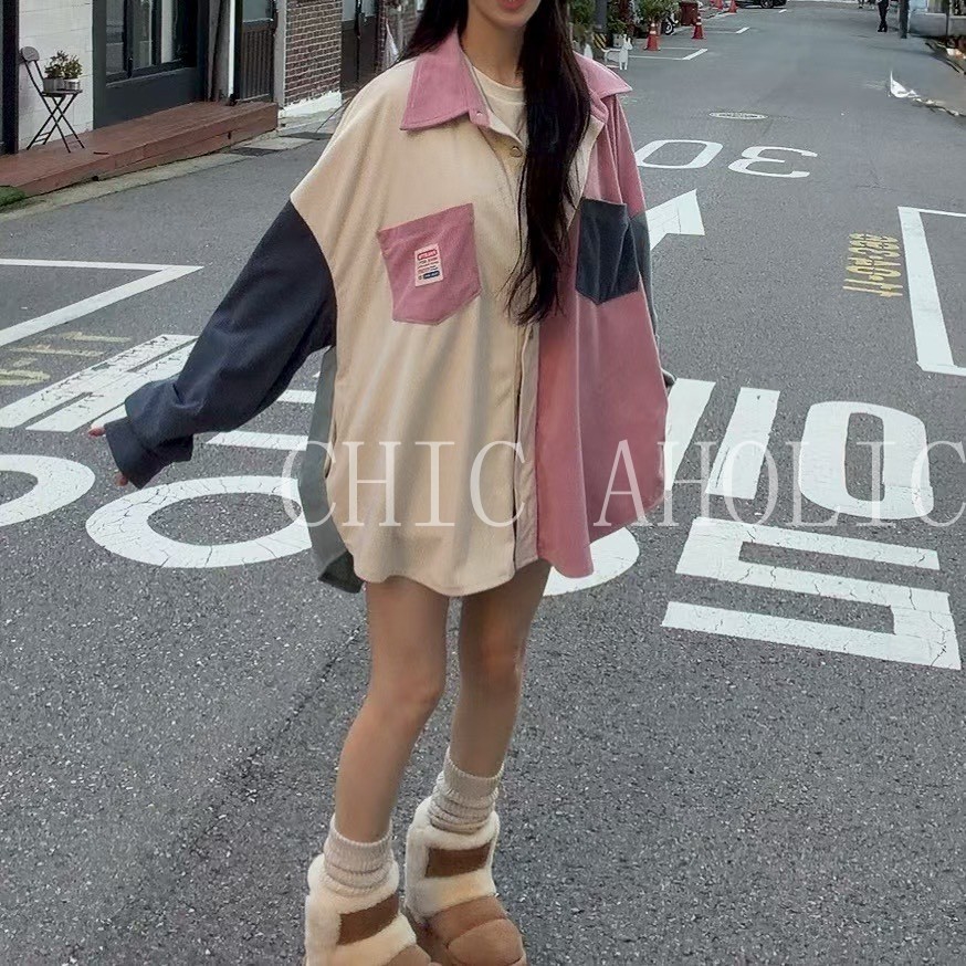 WN23粉白藍撞色燈心絨外套