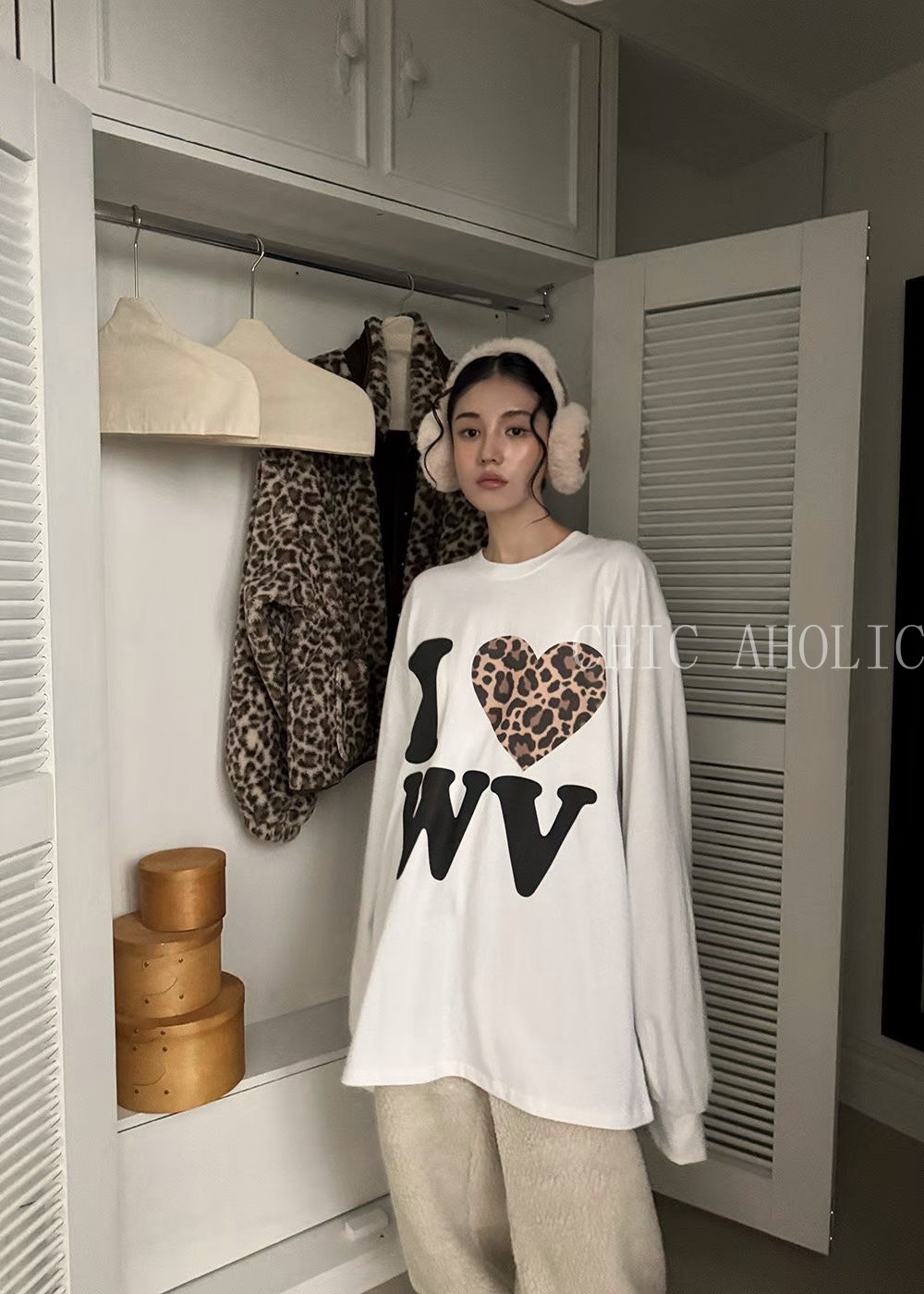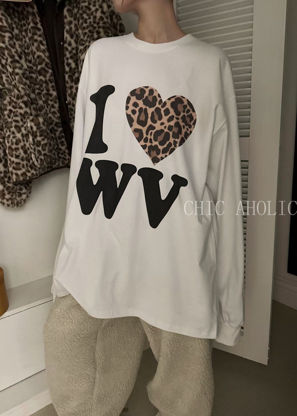 CA33豹紋愛心字母大T