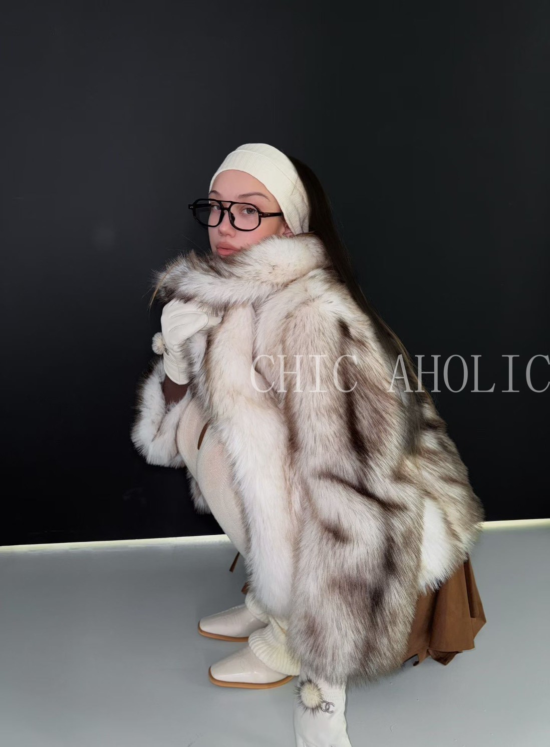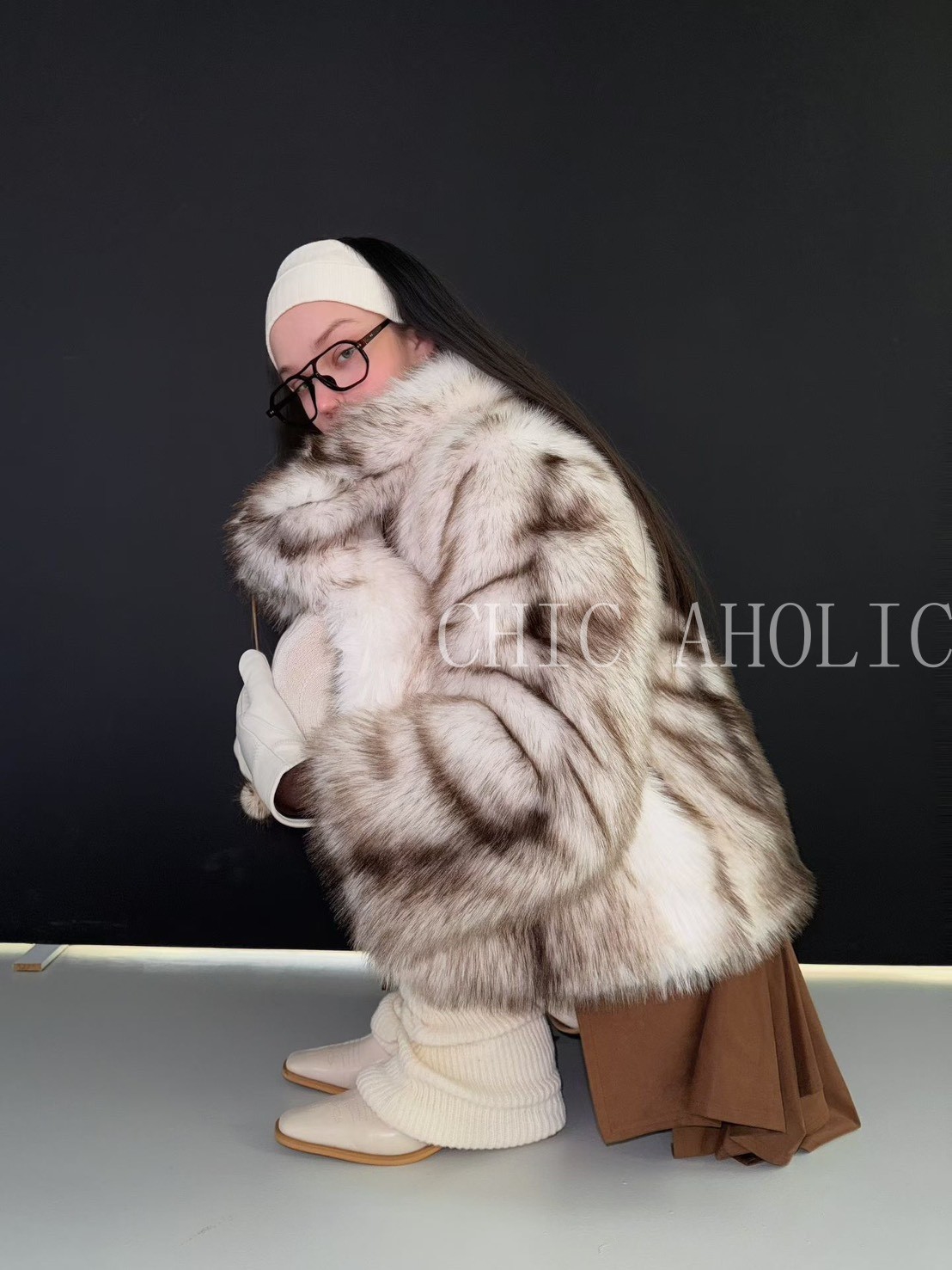 DEC39黑米混色皮草外套