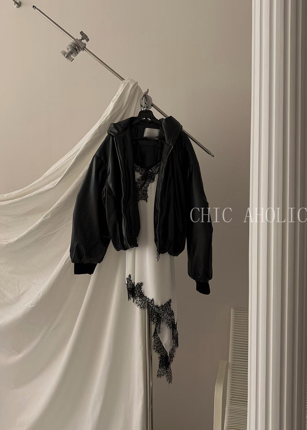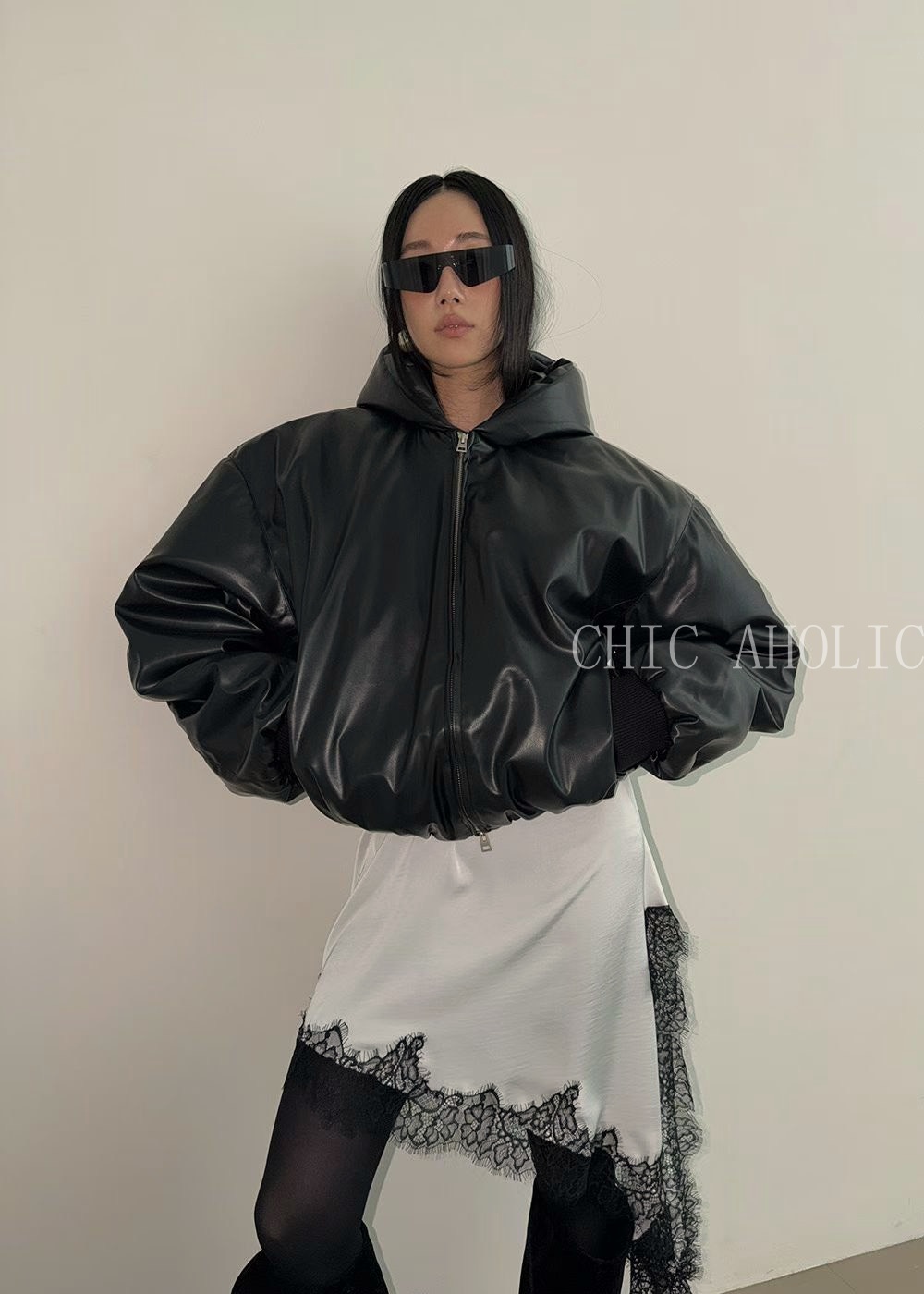 CA36拼接蕾絲緞面洋