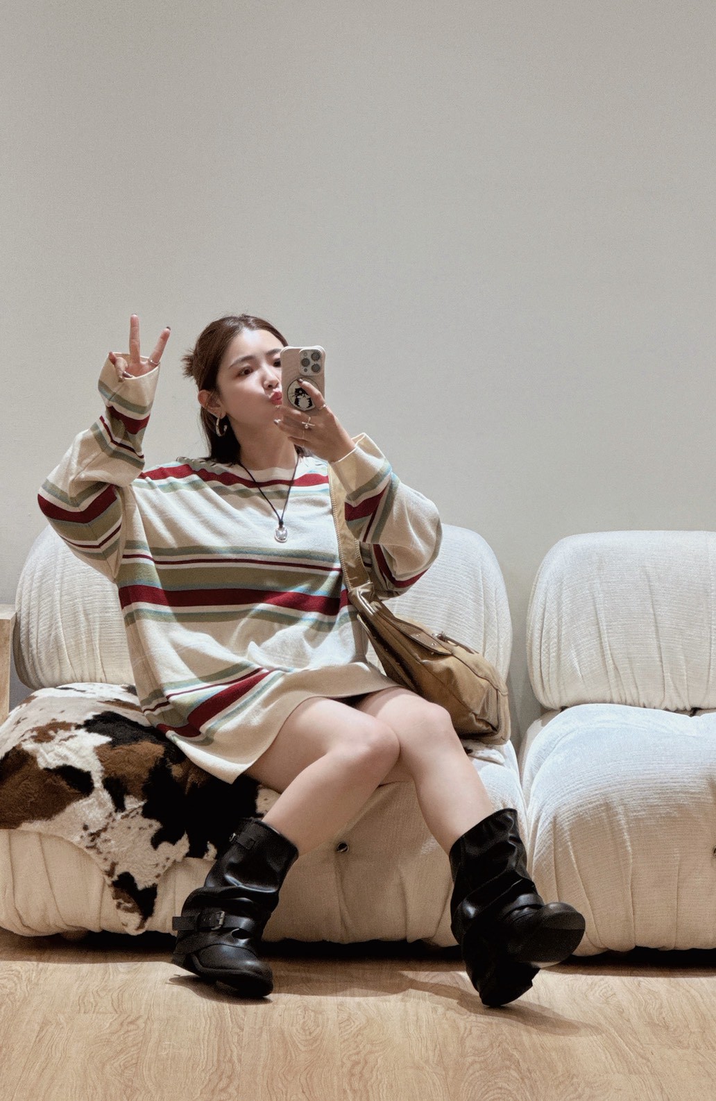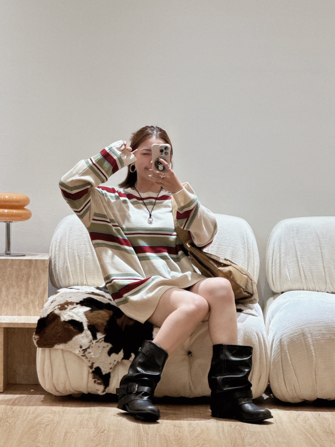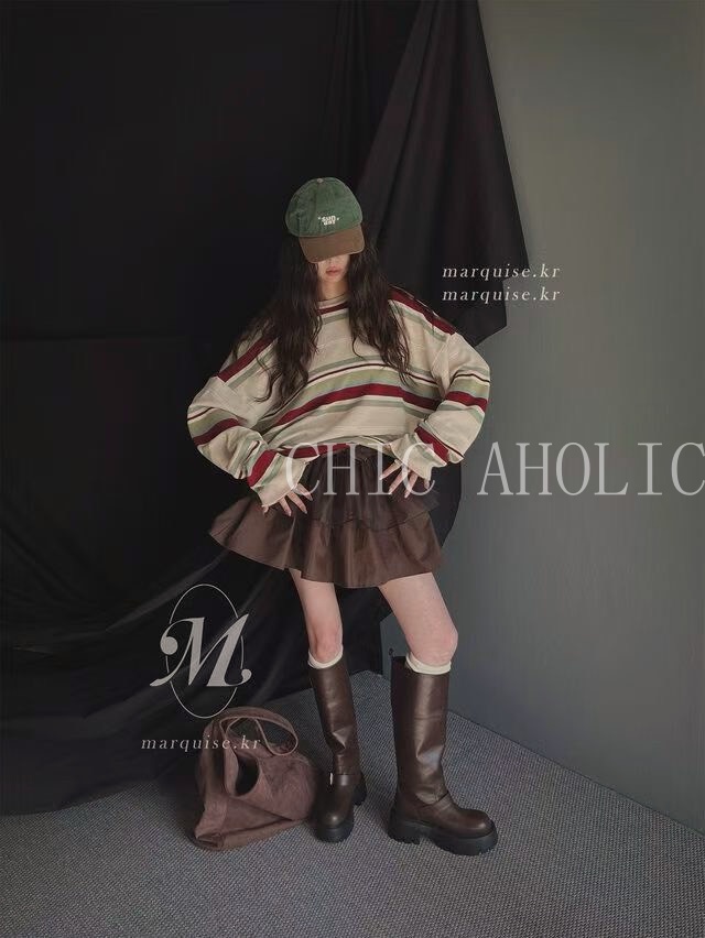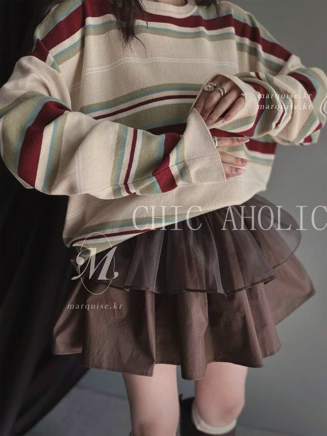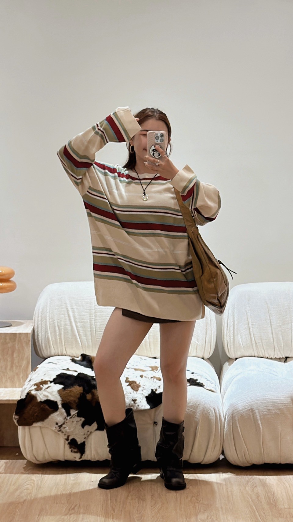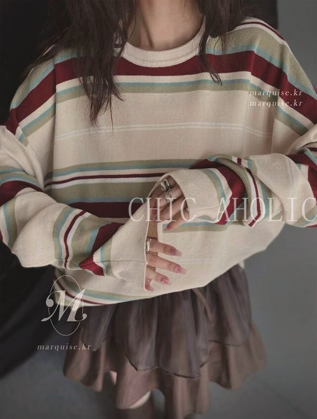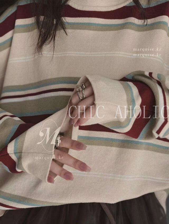 ▌酒紅條綠/黑條寶藍/米條紅 3色