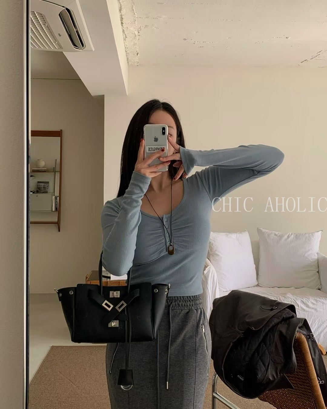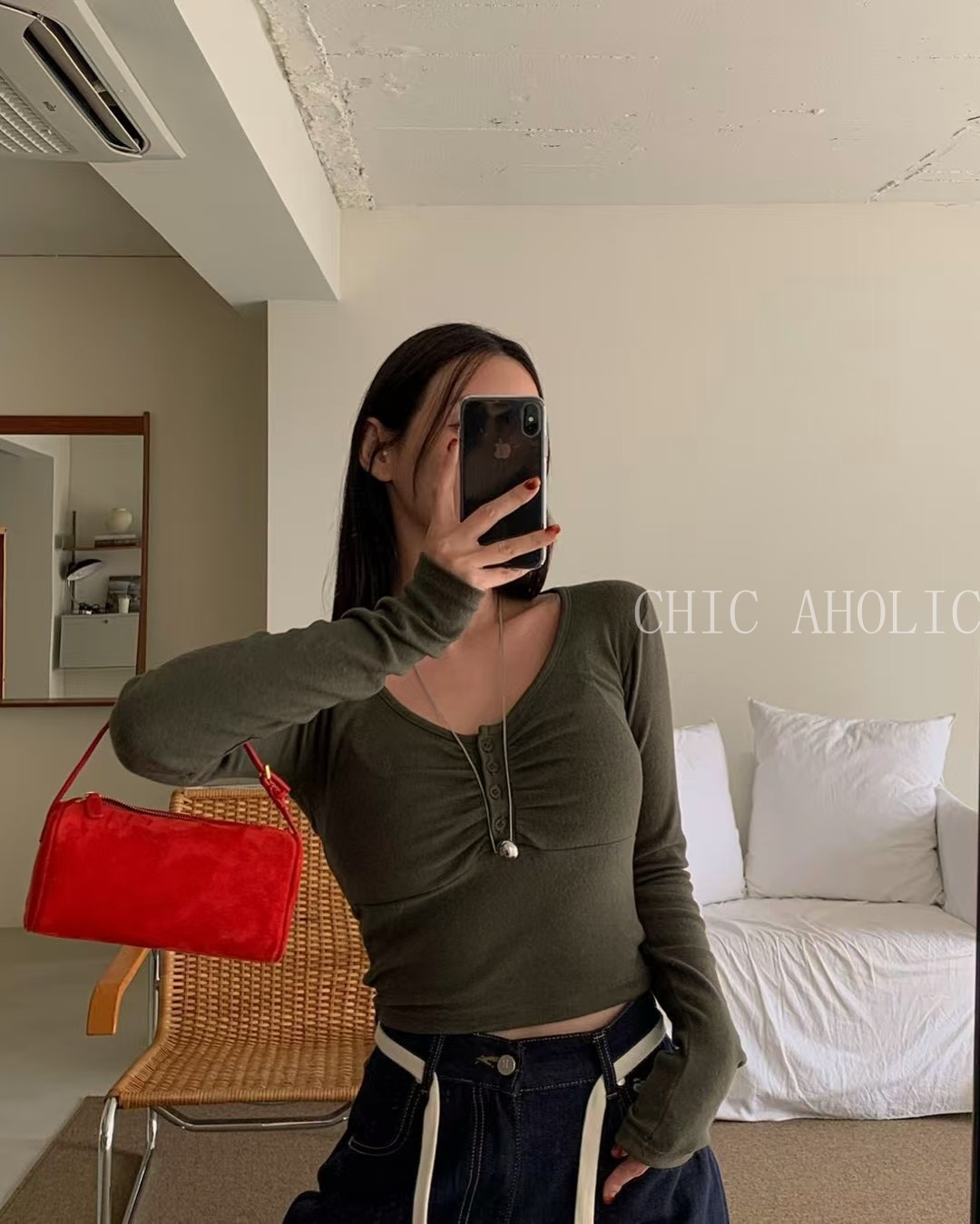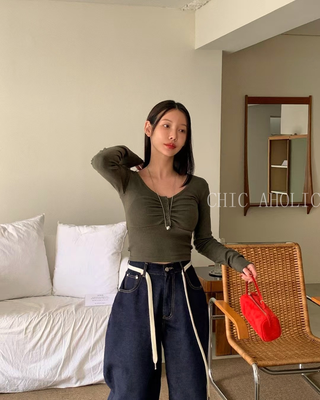 胸口抓褶4釦上衣