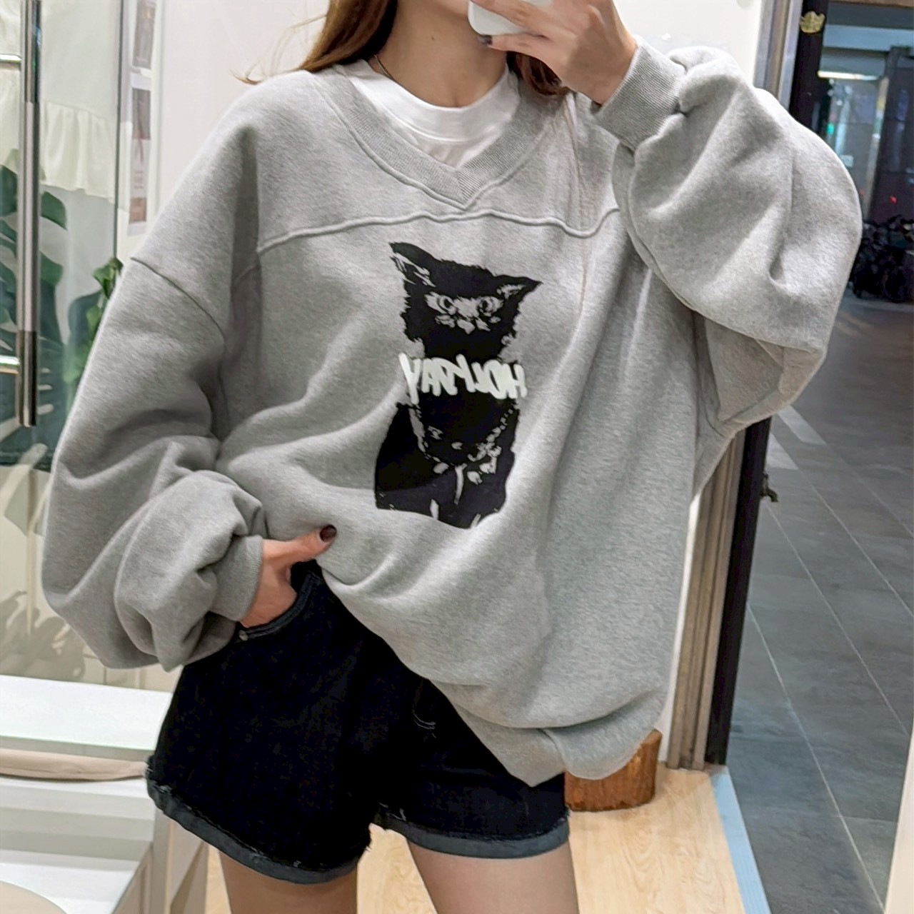 FU12口袋字母牛仔短褲