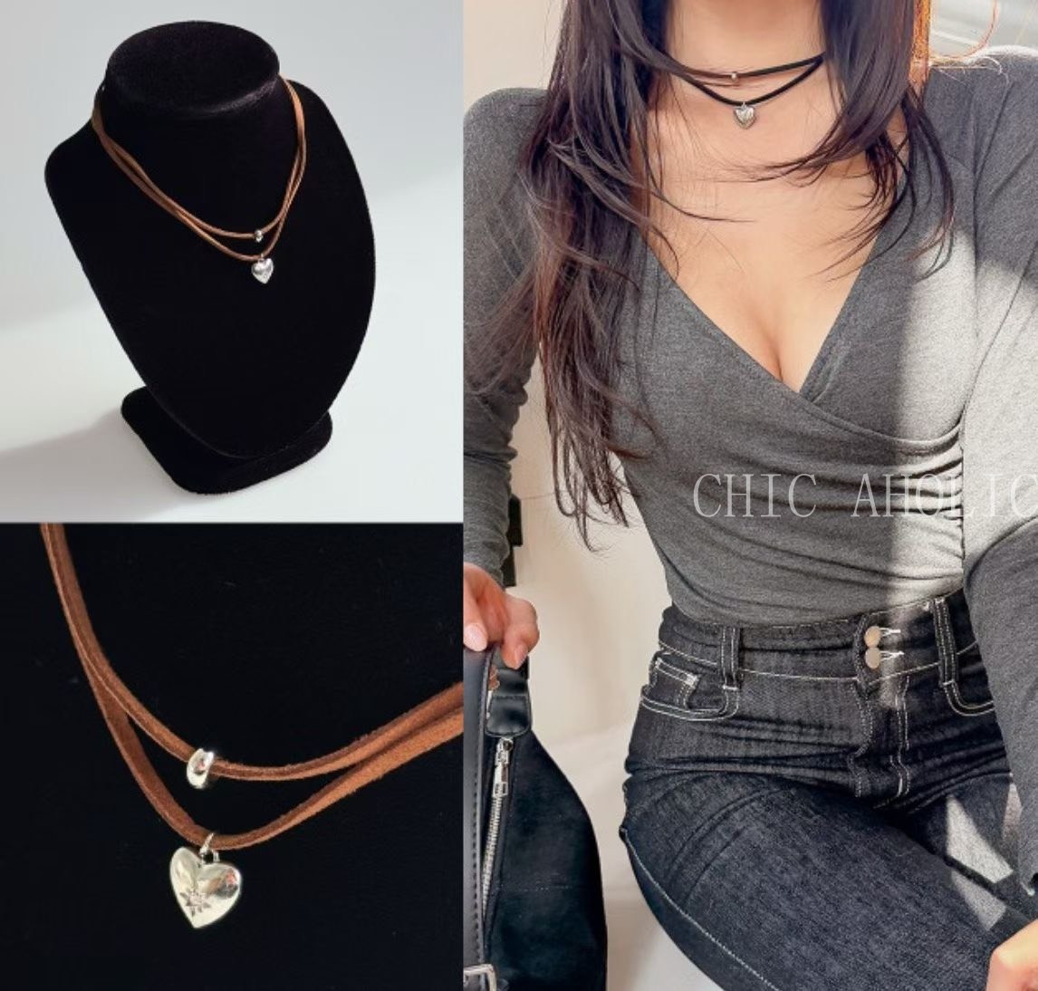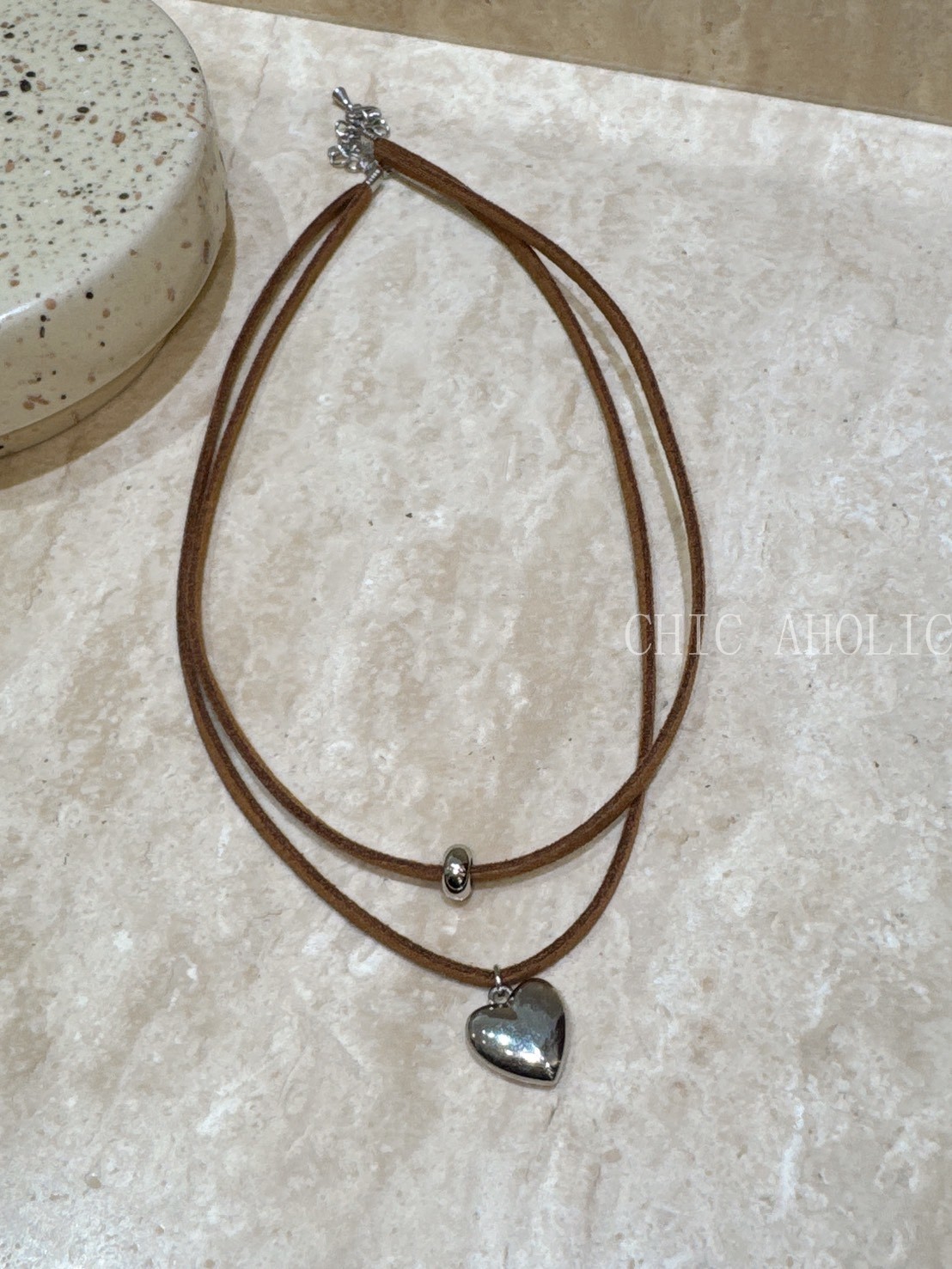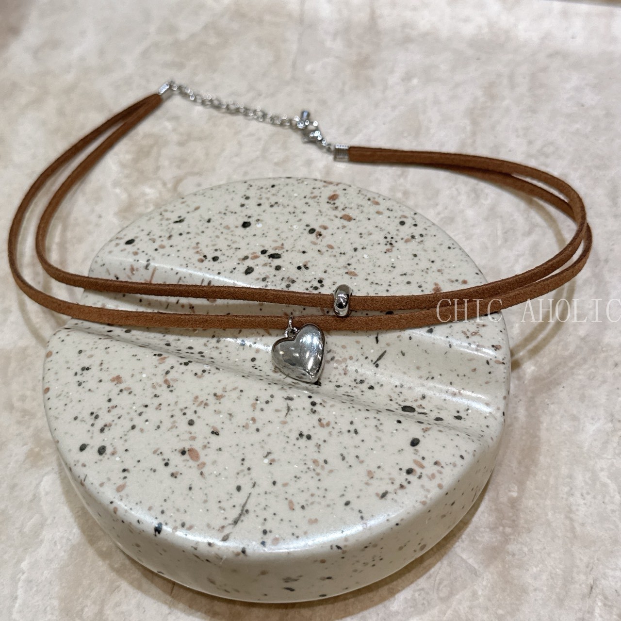 FU61咖啡麂皮愛心項鍊