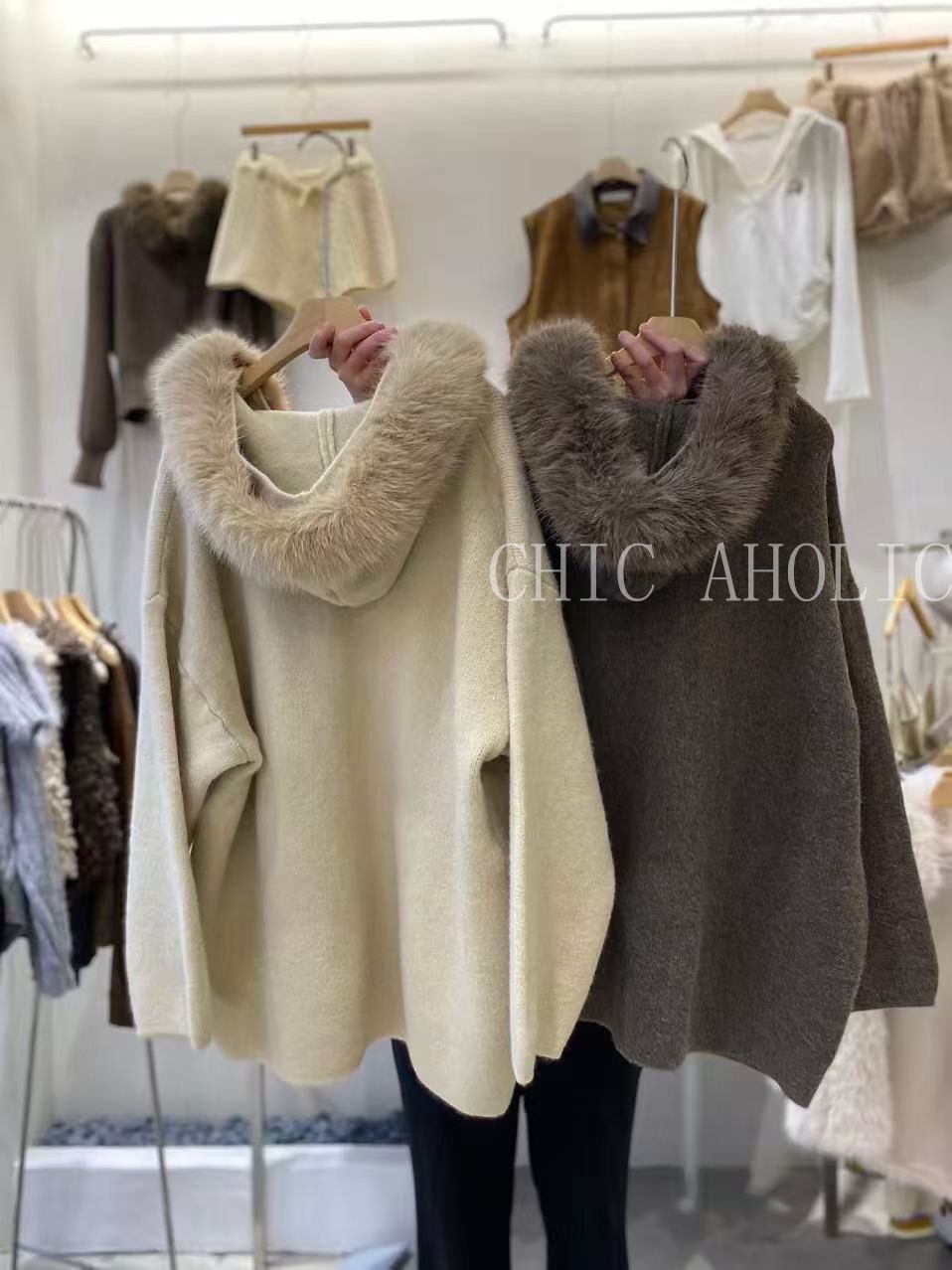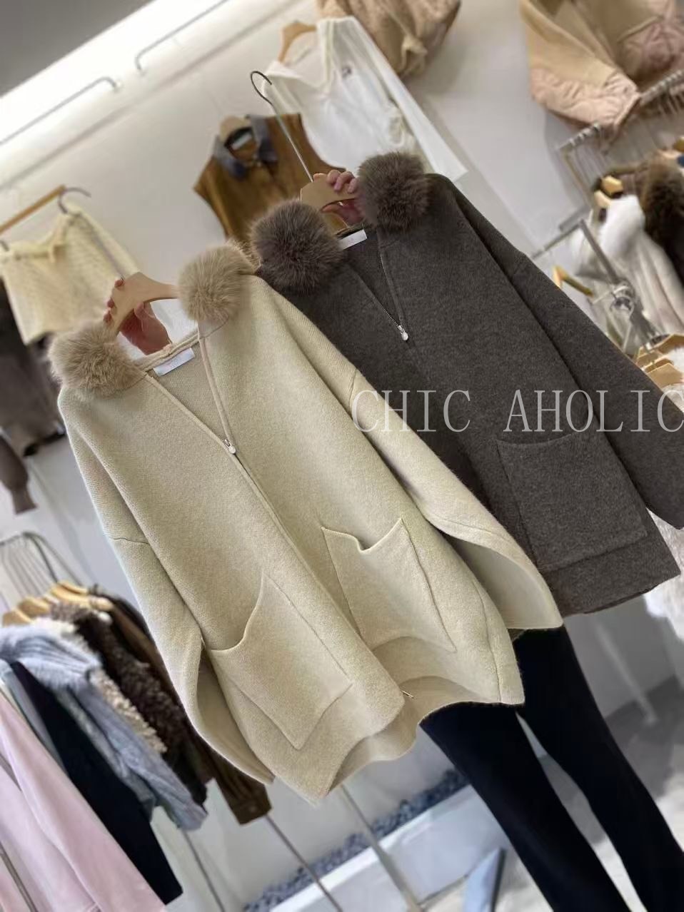 NEW17毛圈領長板針織外套