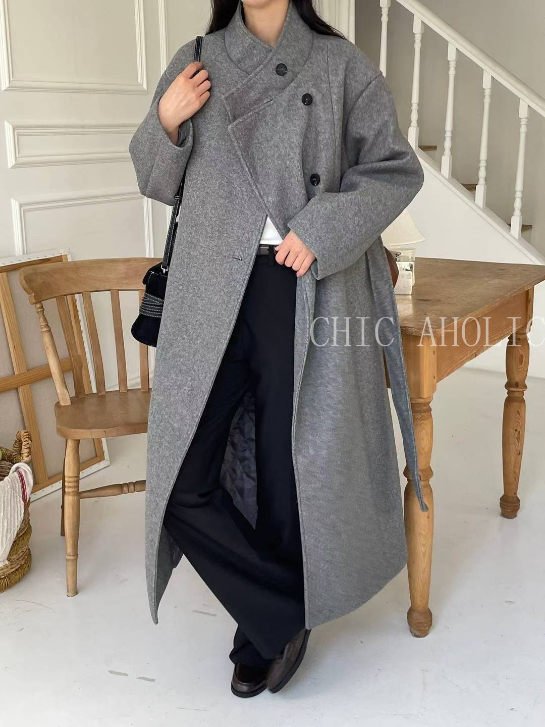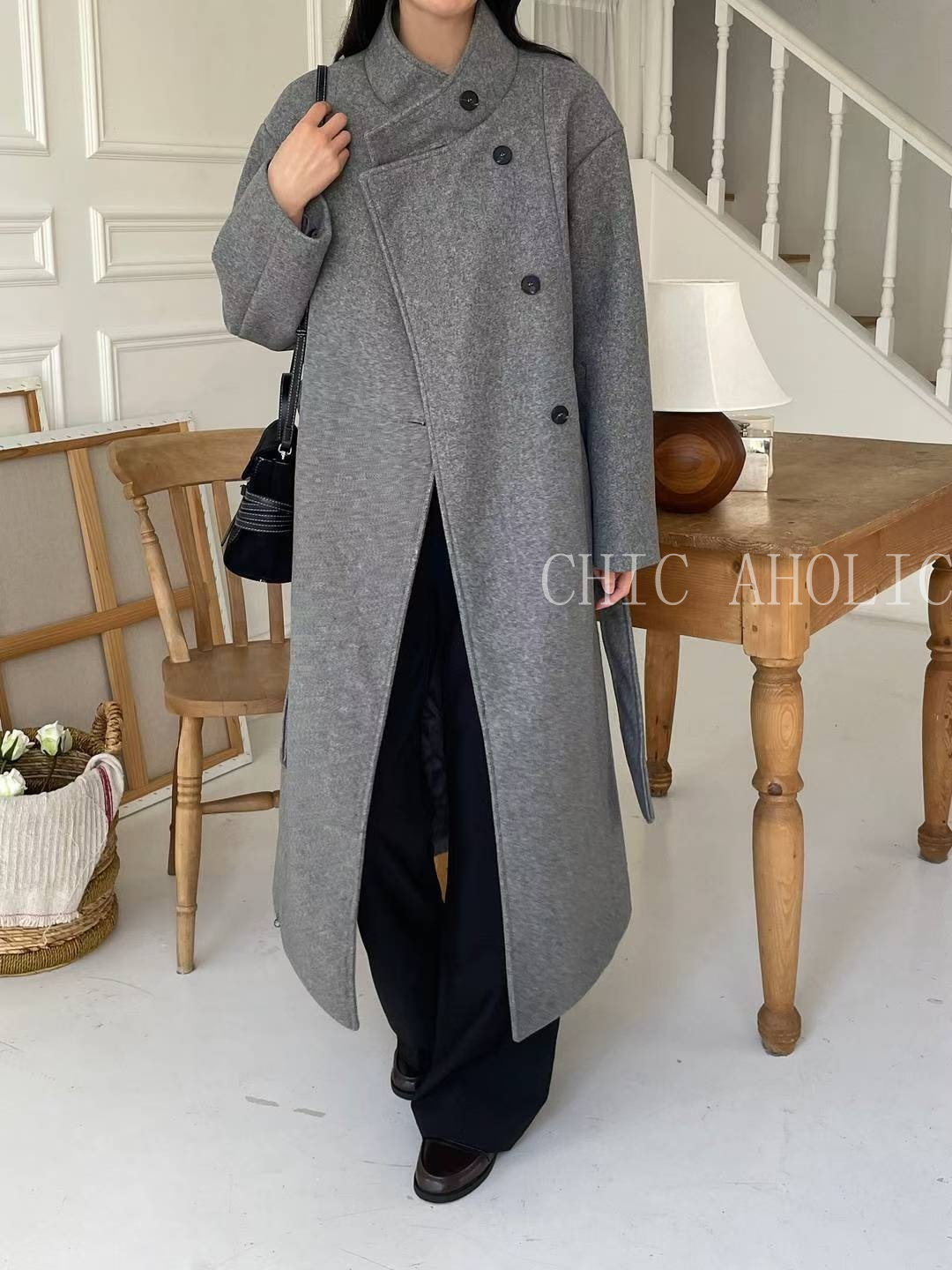 NEW34高領巴黎長版大衣