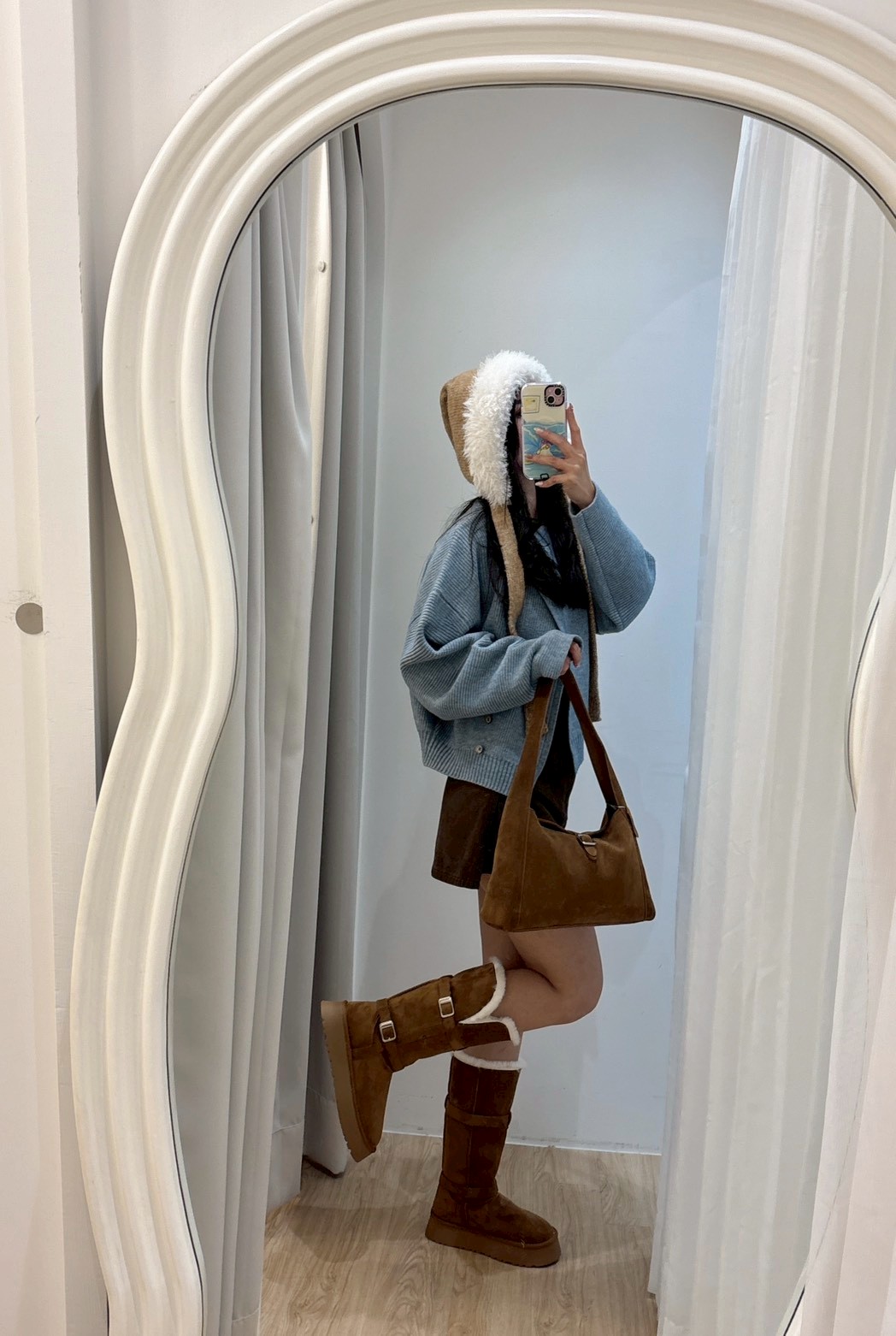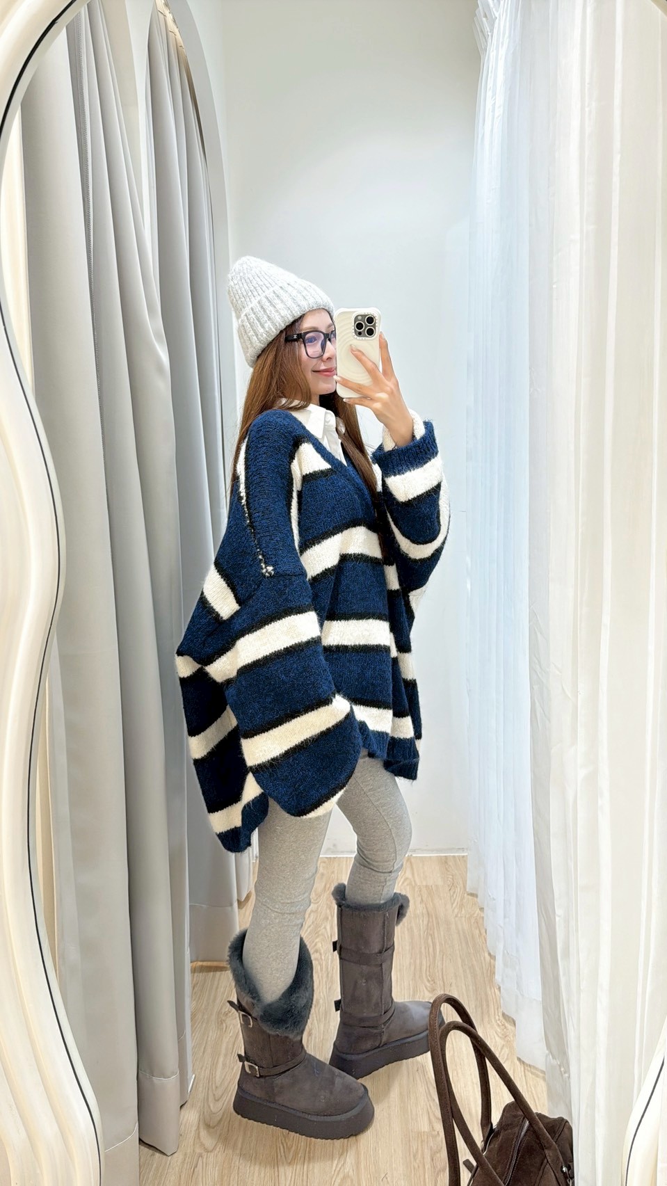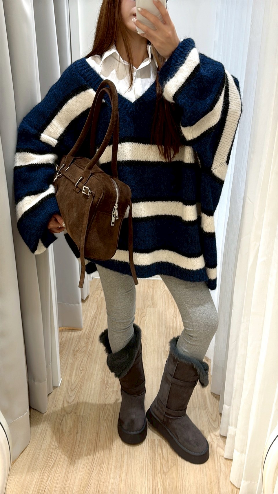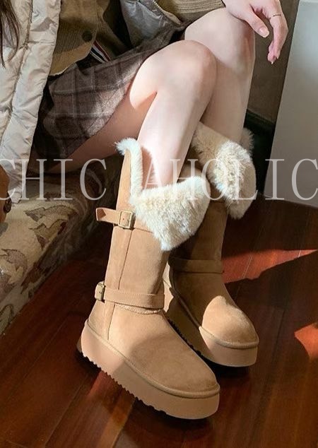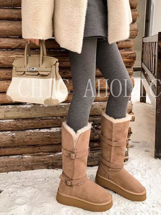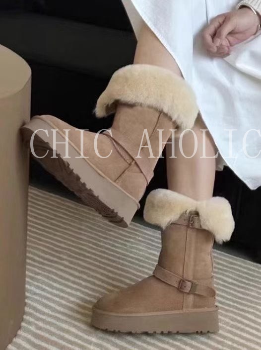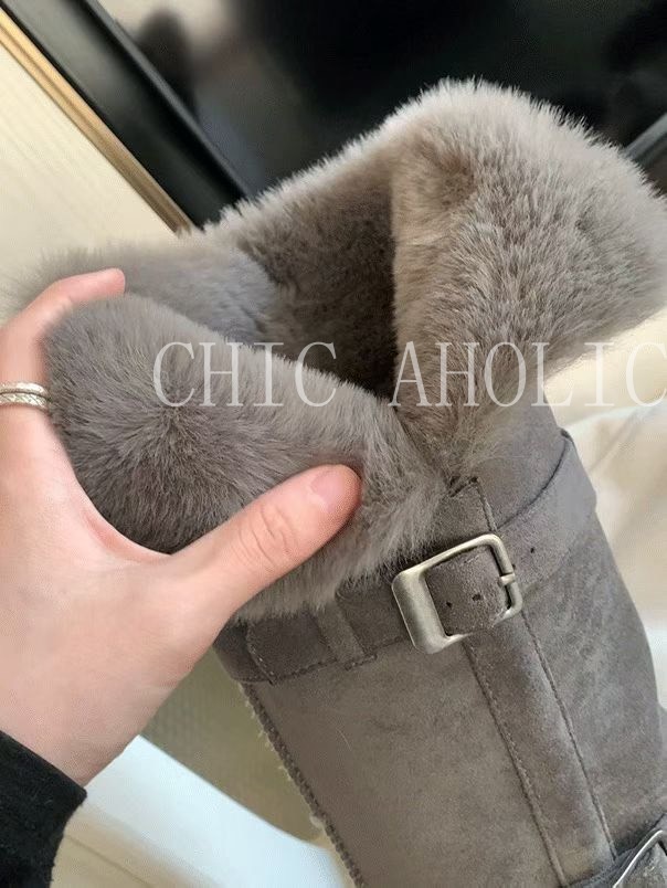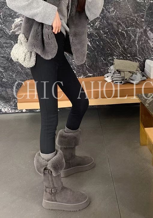 NEW40長款可反折雙銀釦灰雪靴