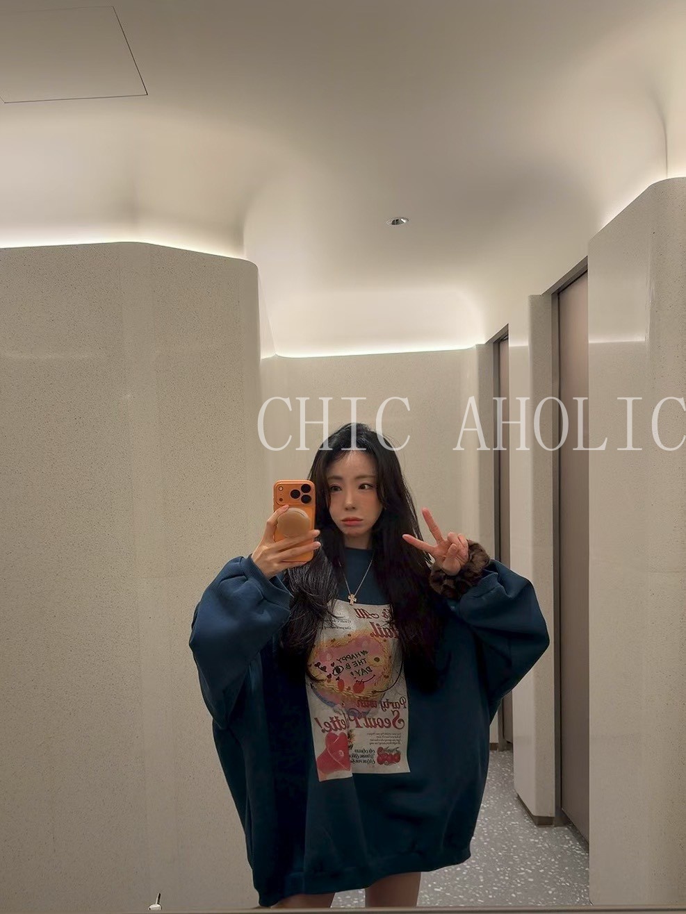領口拉鍊前大口袋連帽大學T