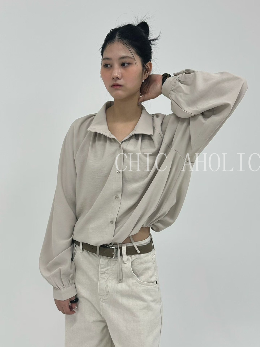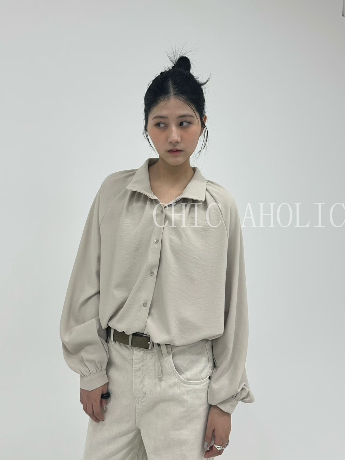 雲朵寬直筒牛仔褲(附皮帶)