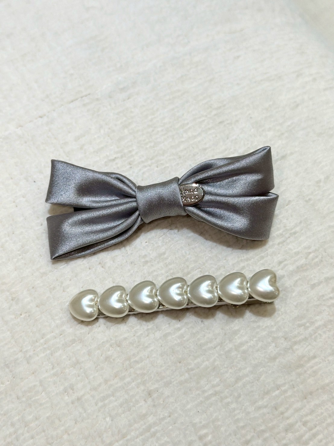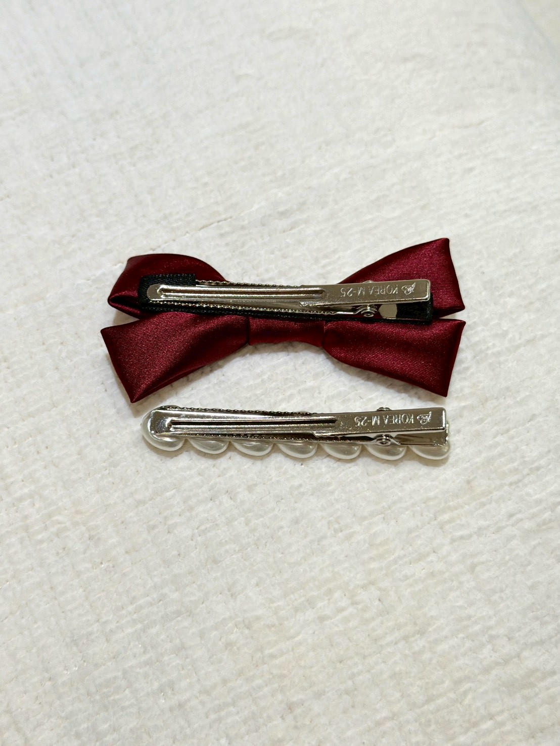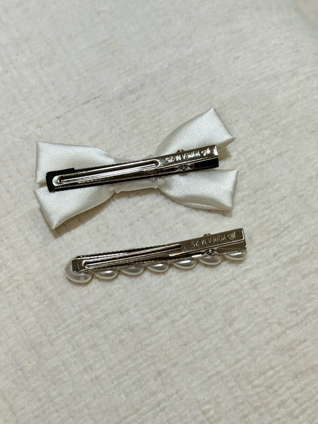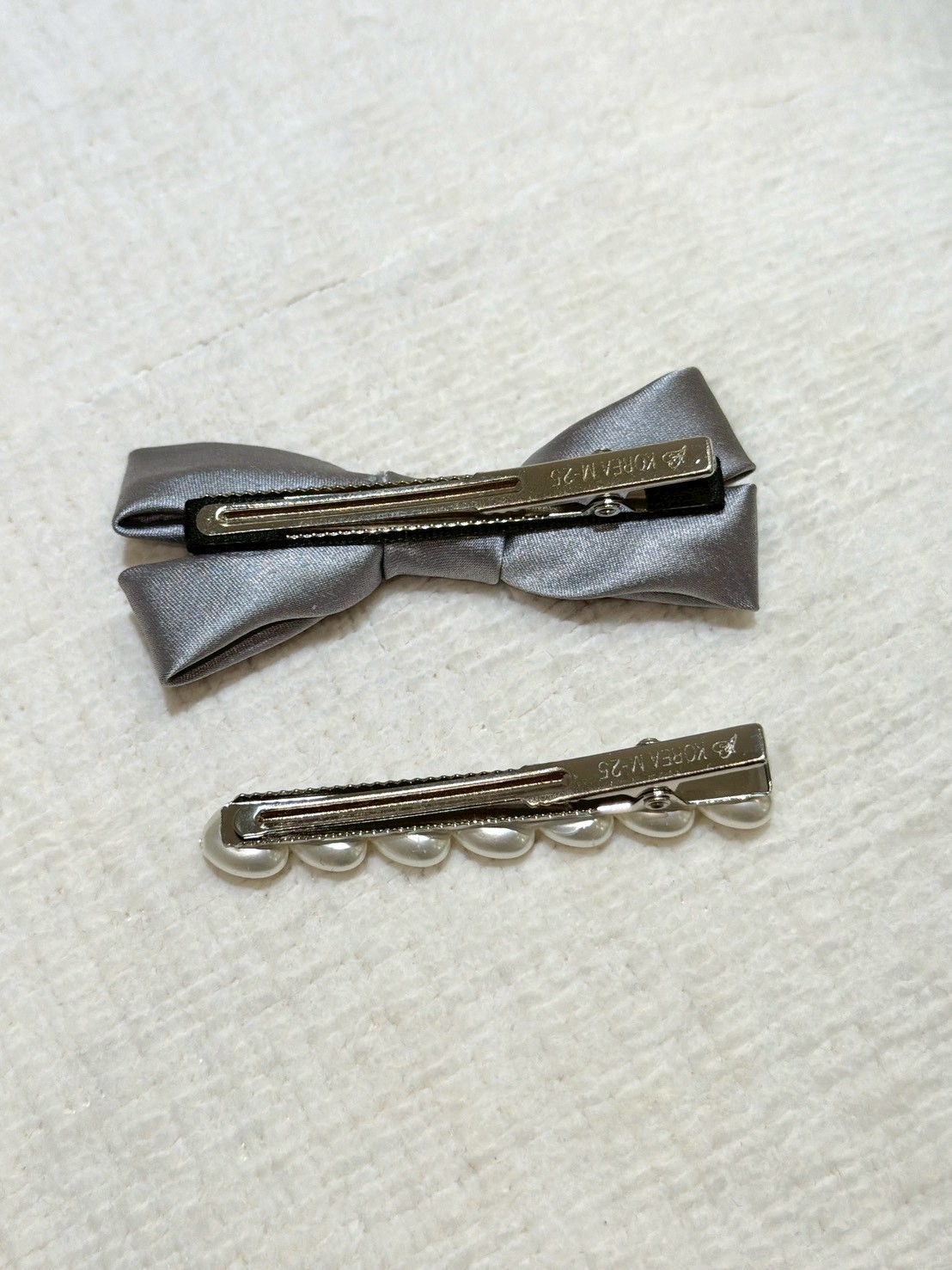 ON43絲綢蝴蝶結珍珠兩件式髮夾