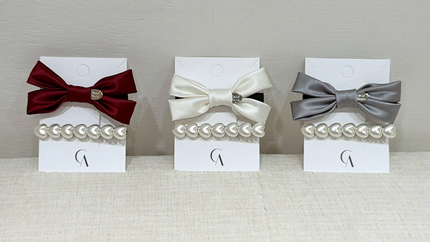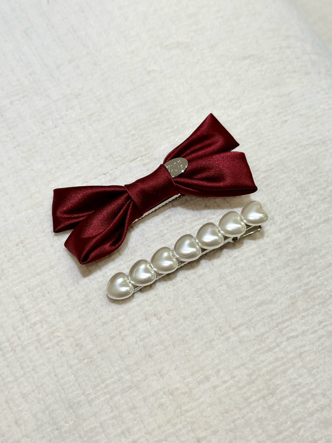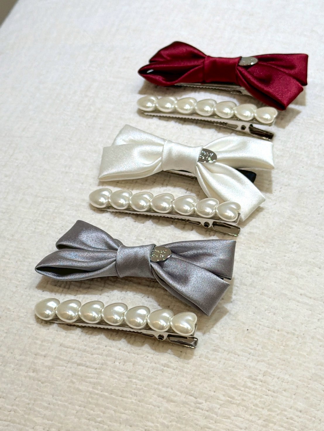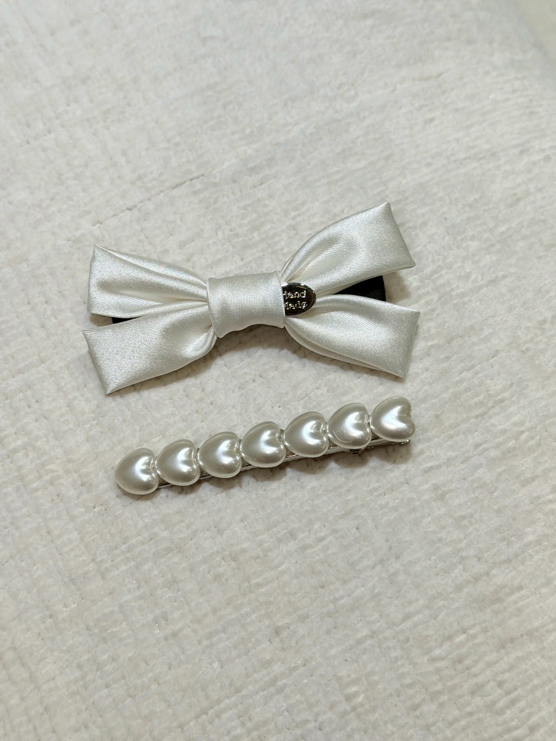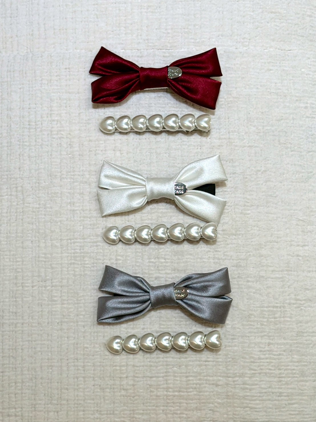 ON43絲綢蝴蝶結珍珠兩件式髮夾