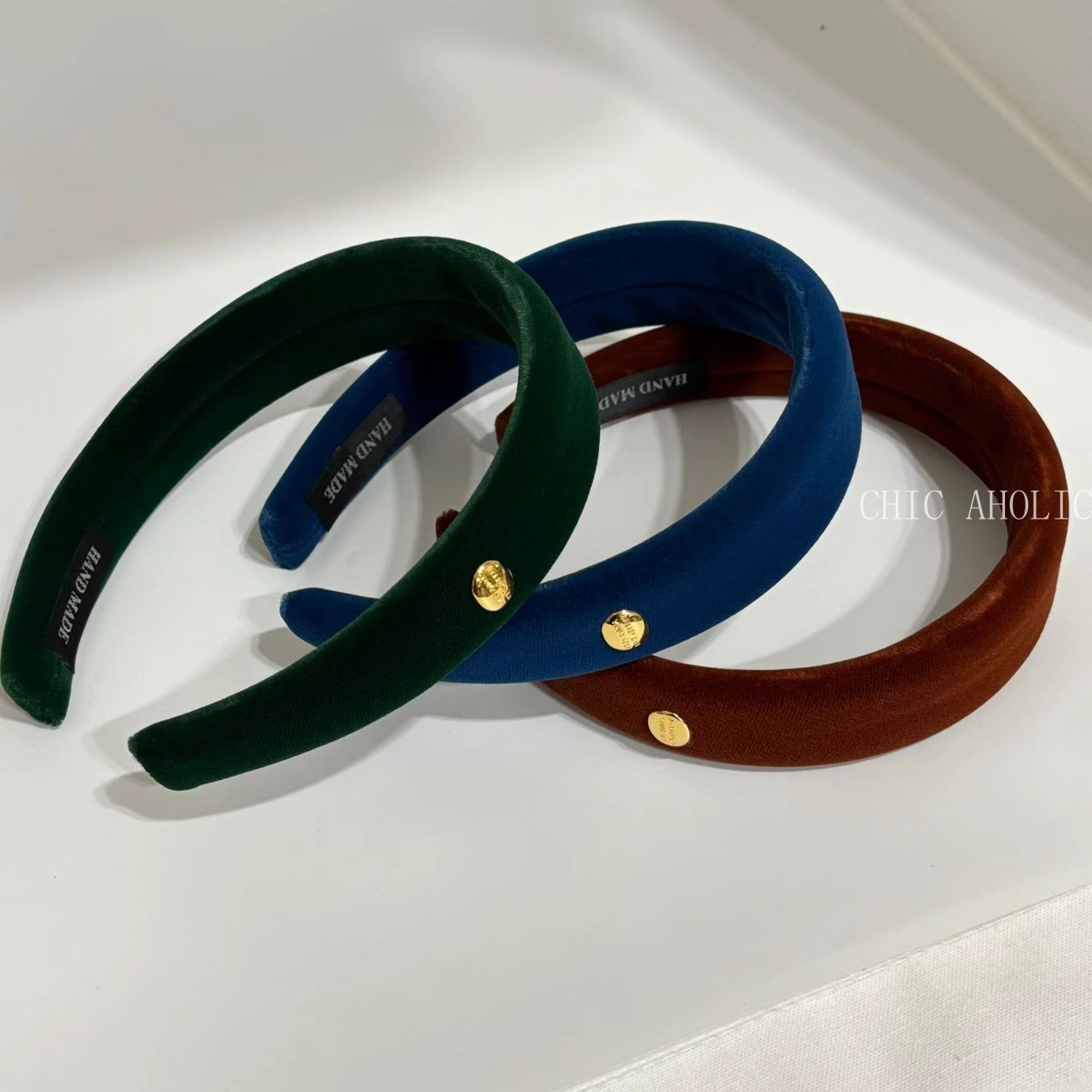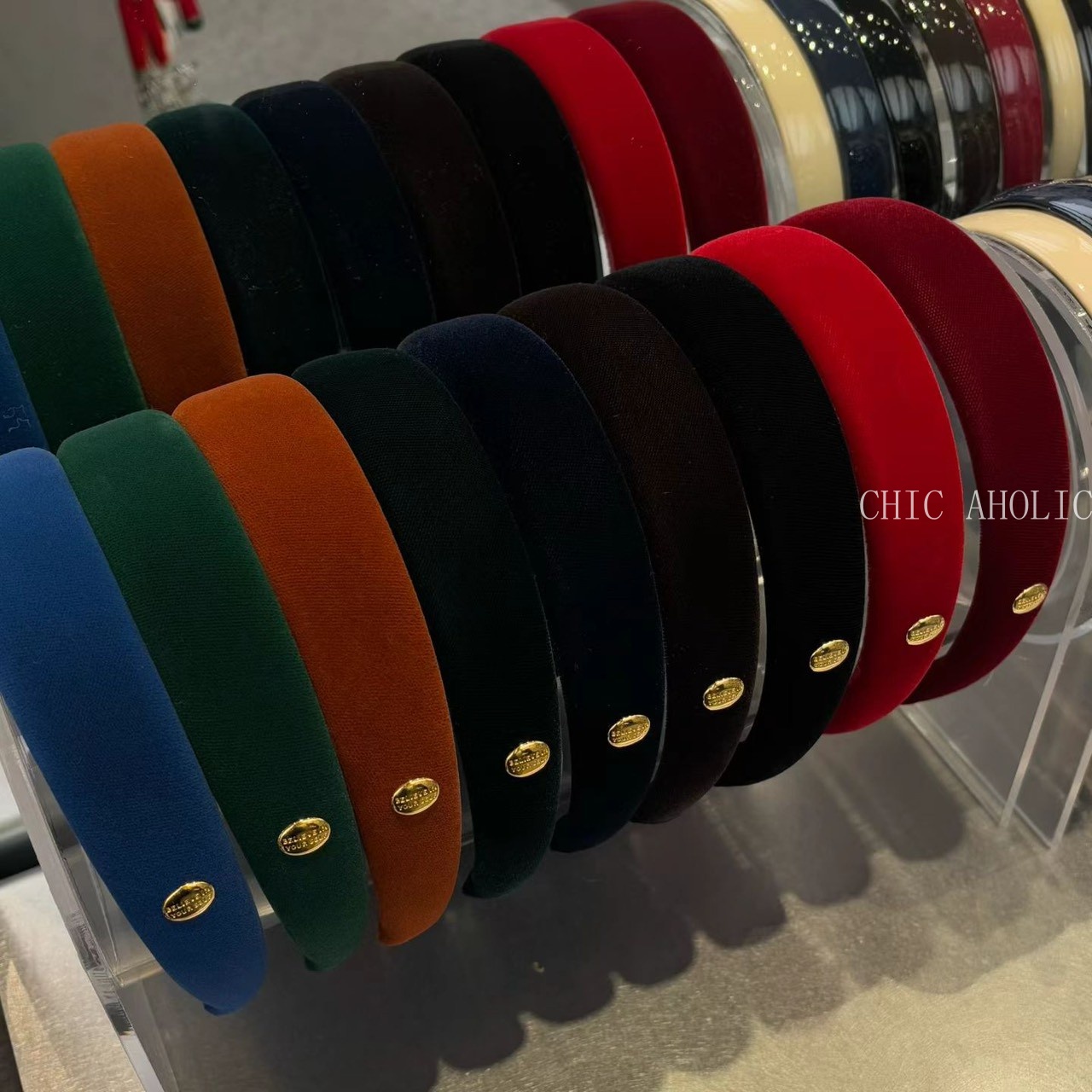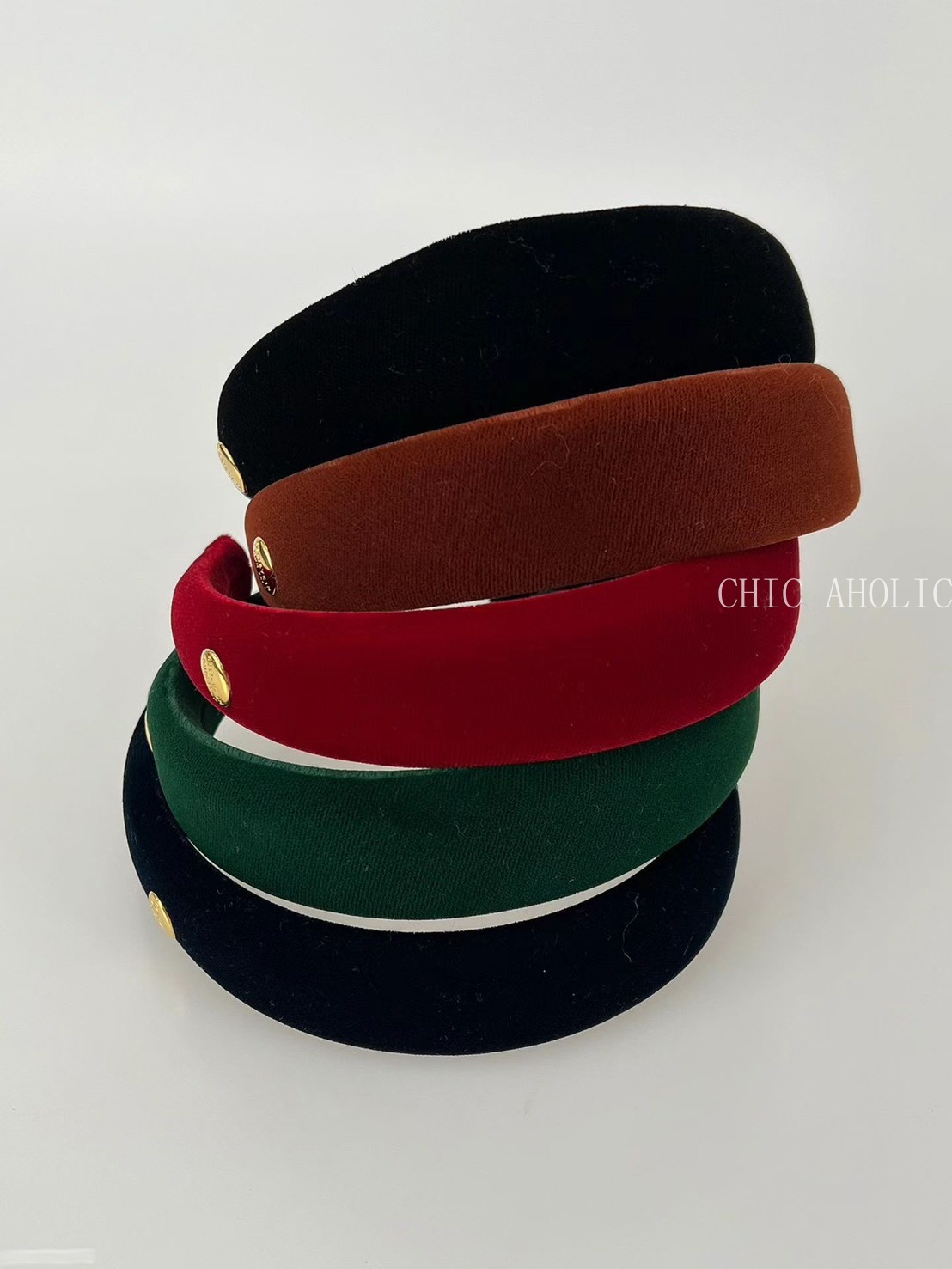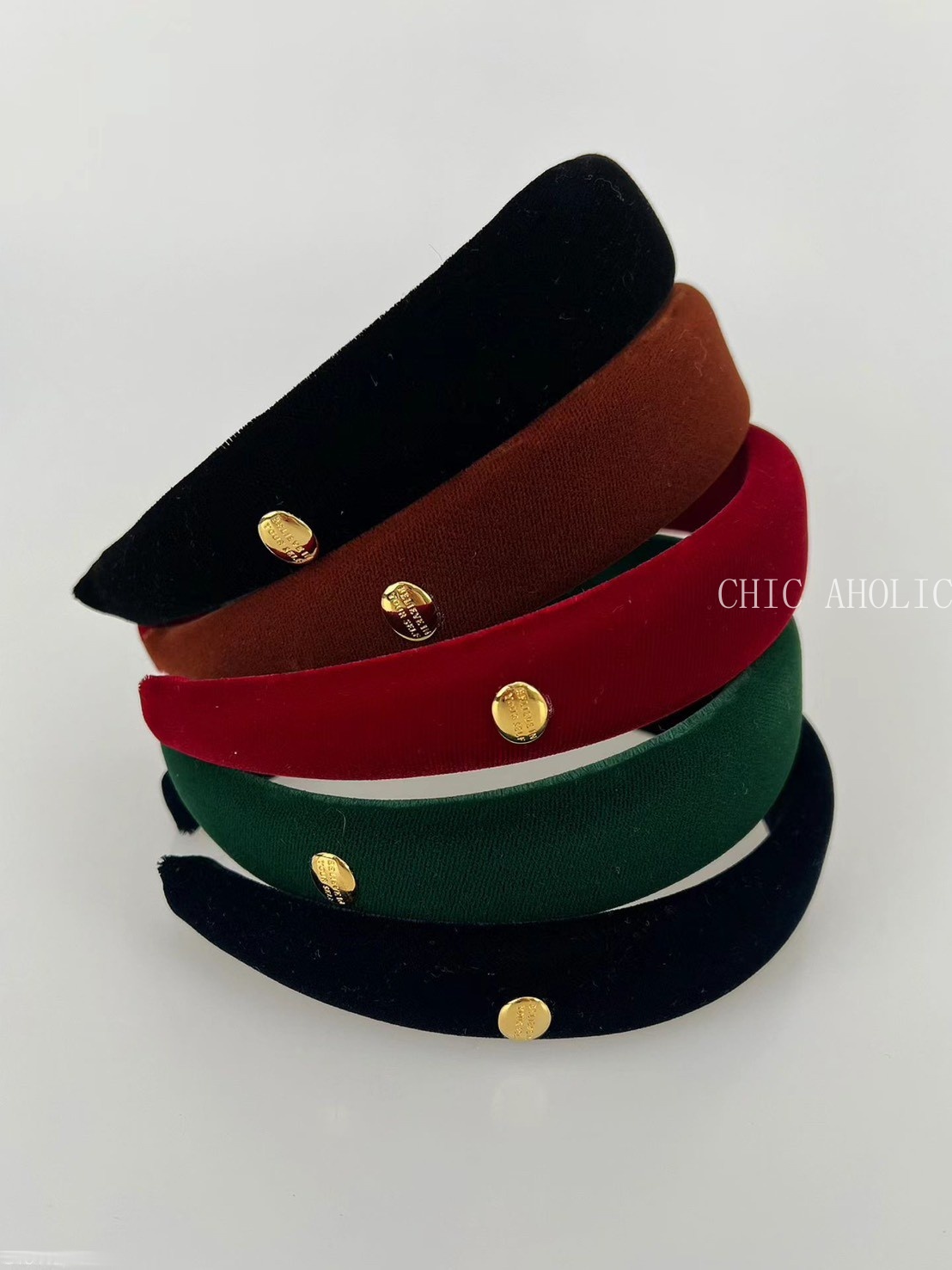 UN40金圓牌寬版黑絨髮箍