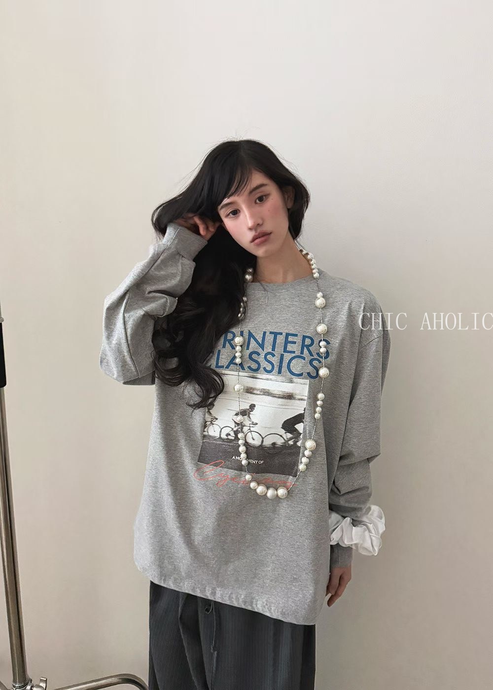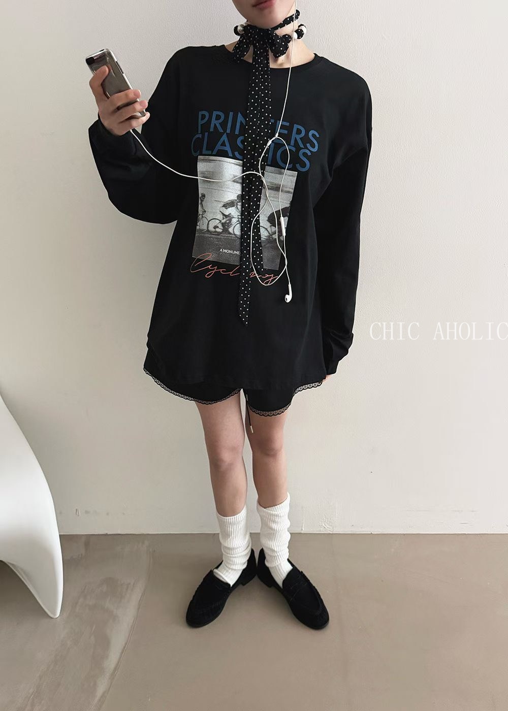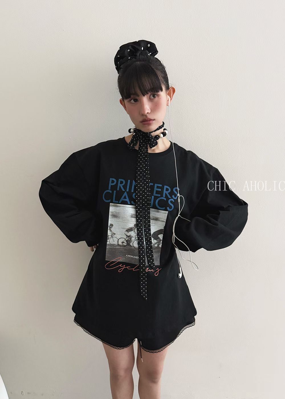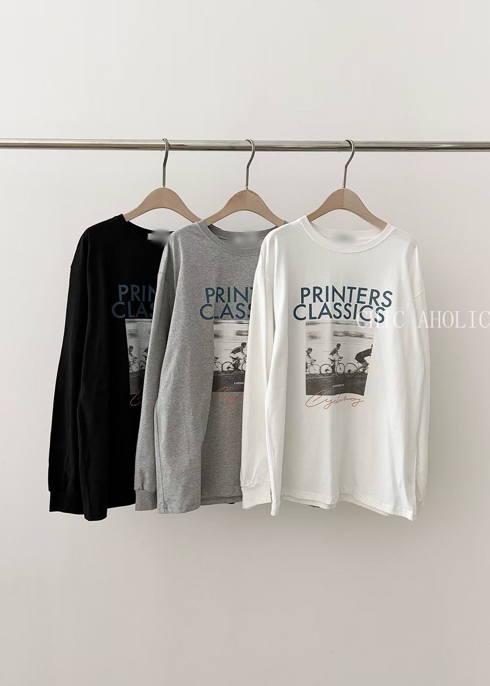 單車英文字圖案長袖T