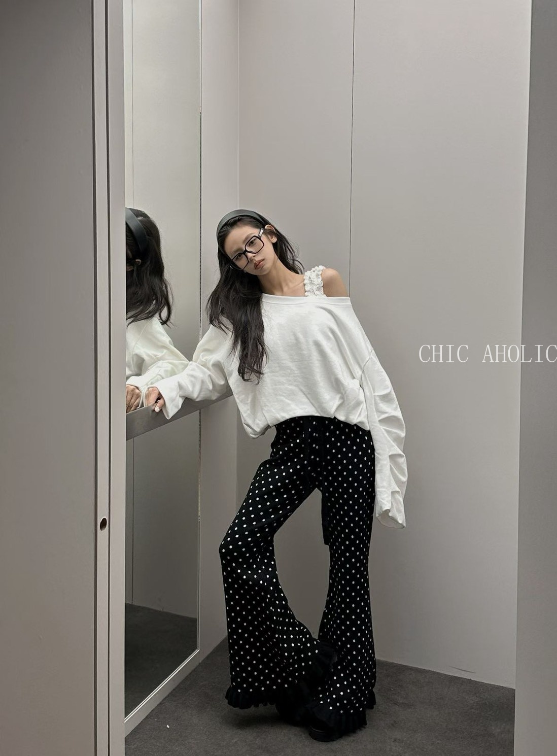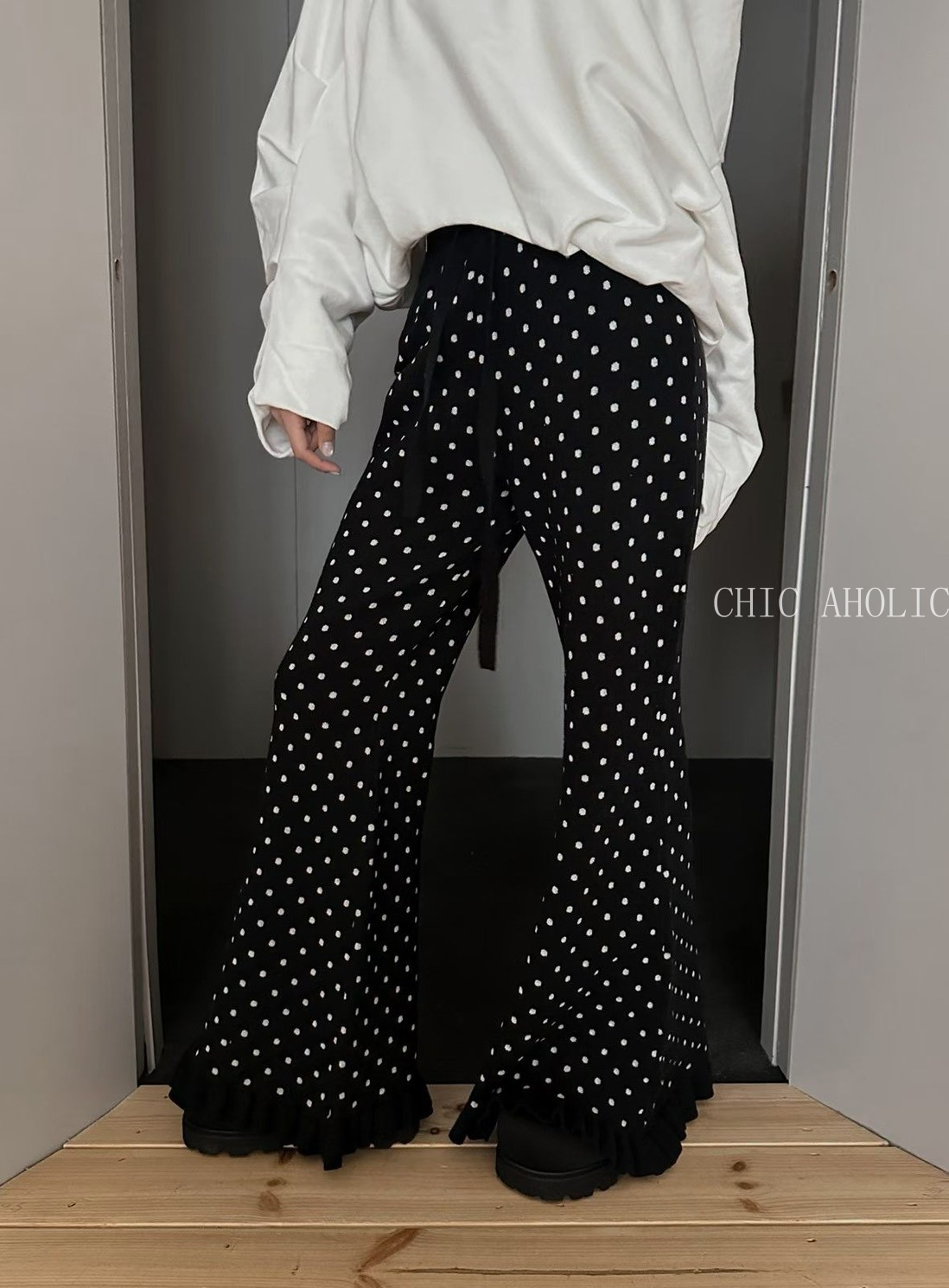 波點荷葉喇叭長褲