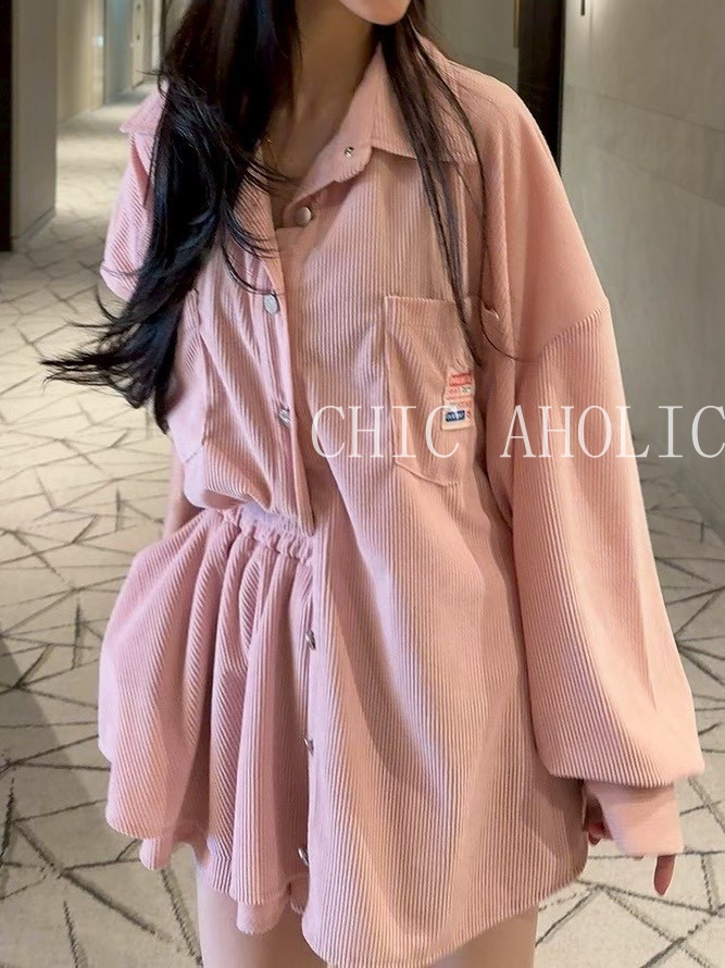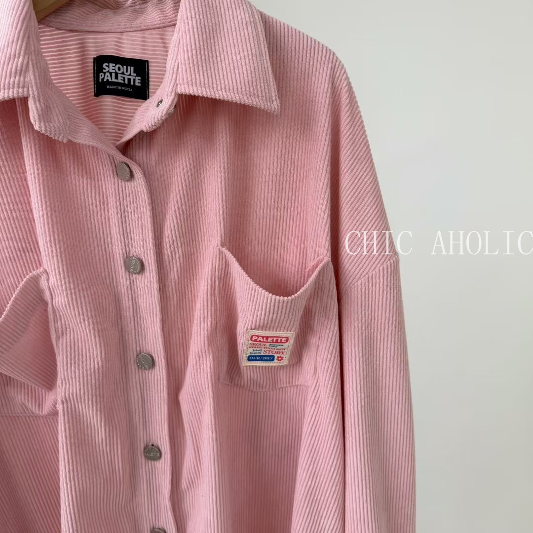 春款口袋有貼布襯衫