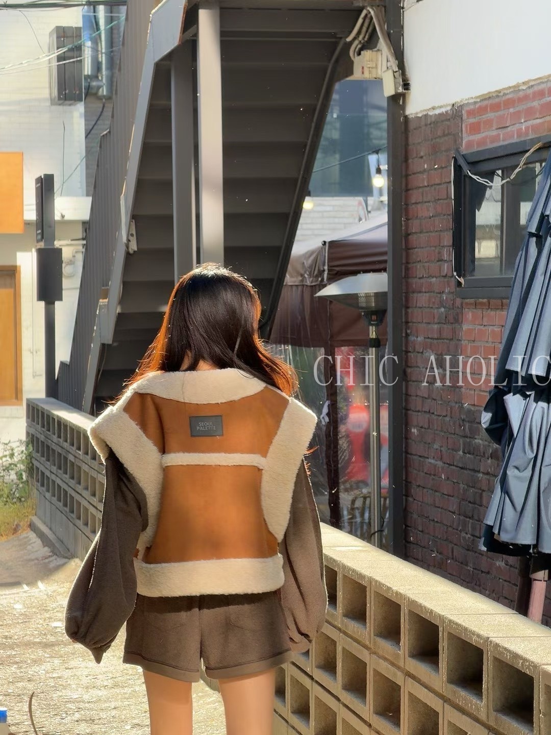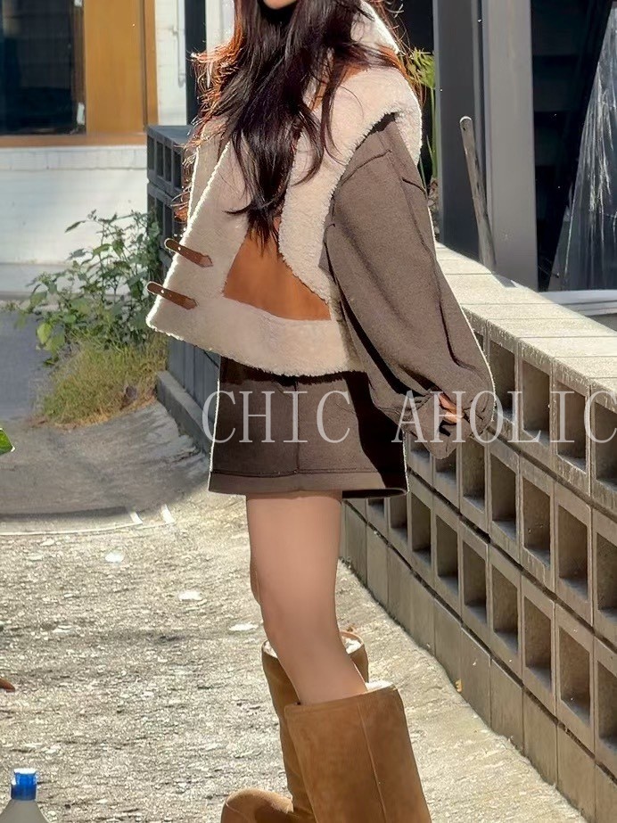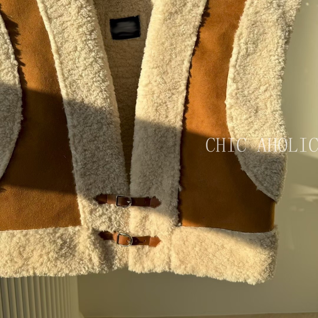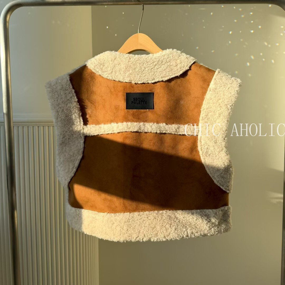 雙釦羊羔毛麂皮背心
