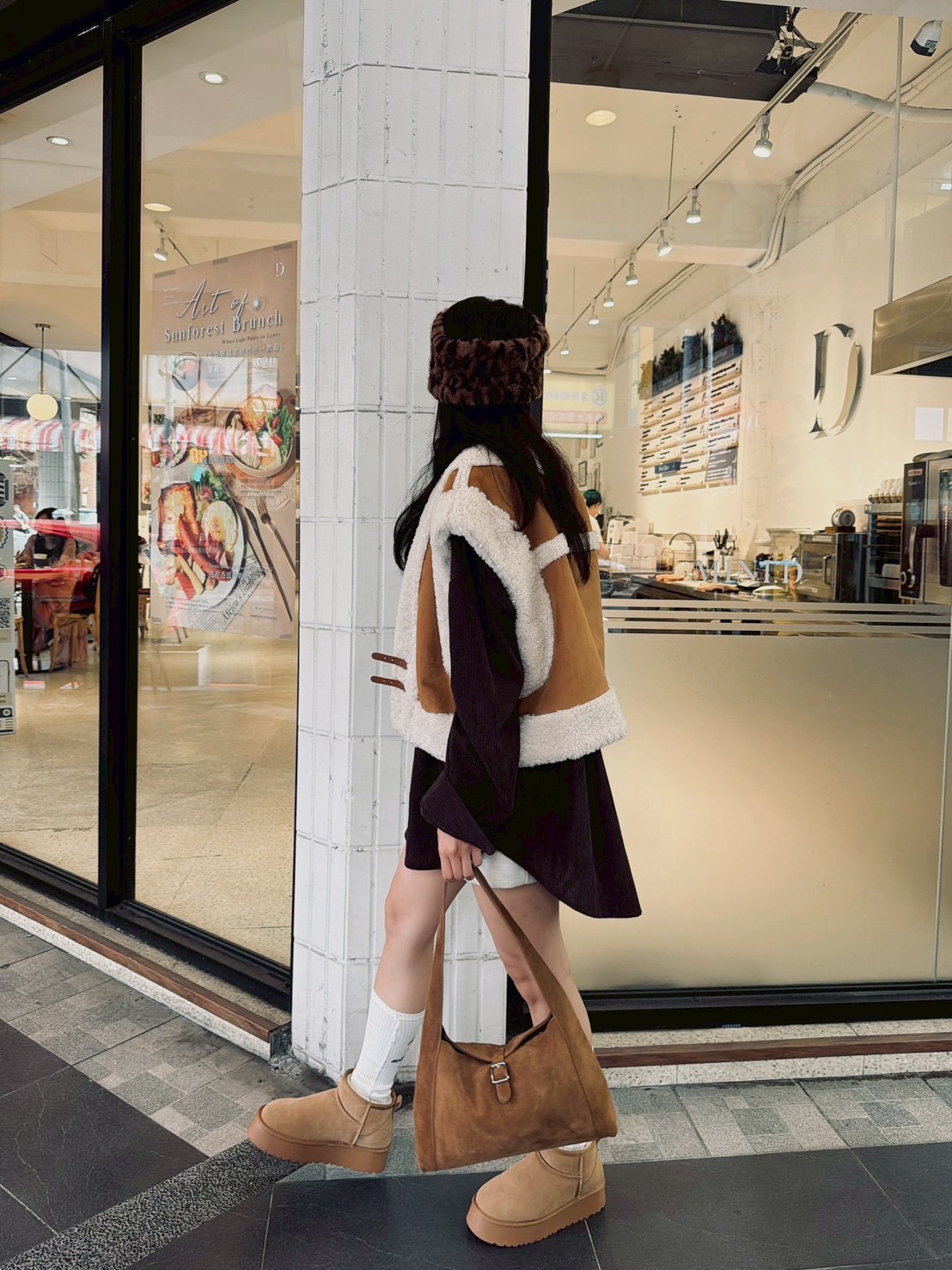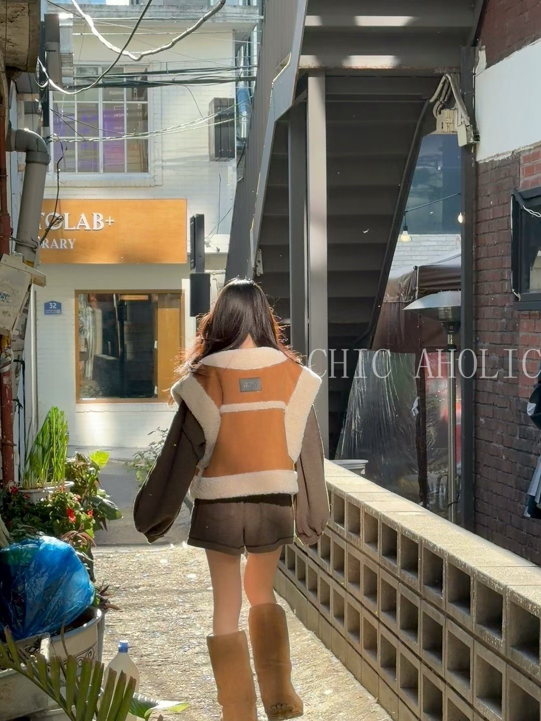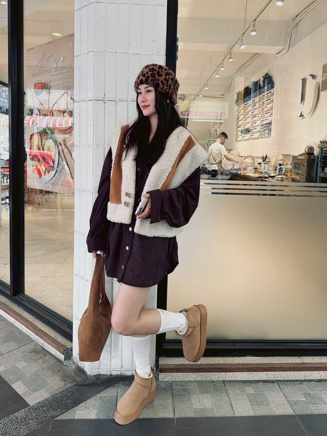 雙釦羊羔毛麂皮背心