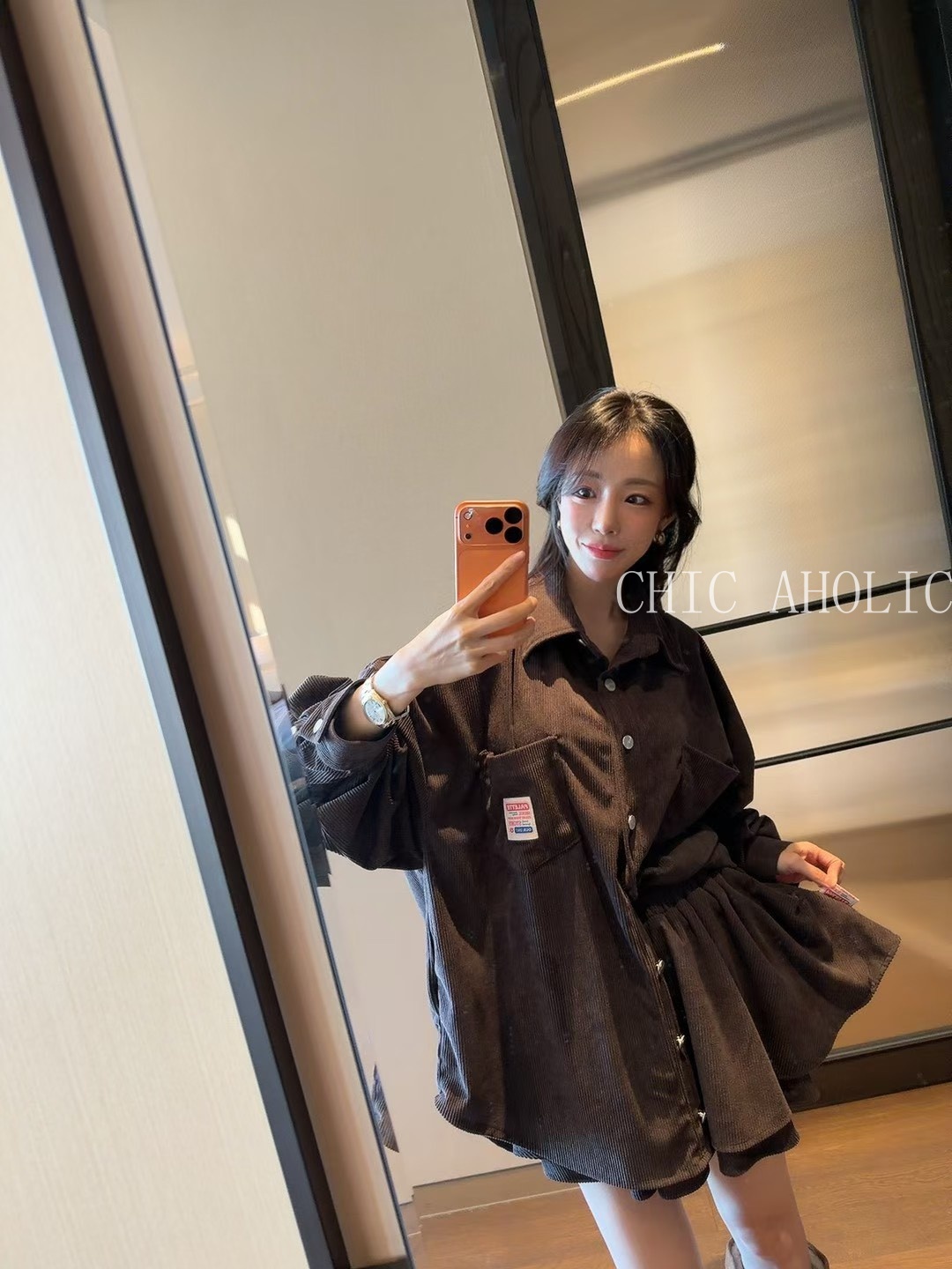 燈心絨傘擺短裙