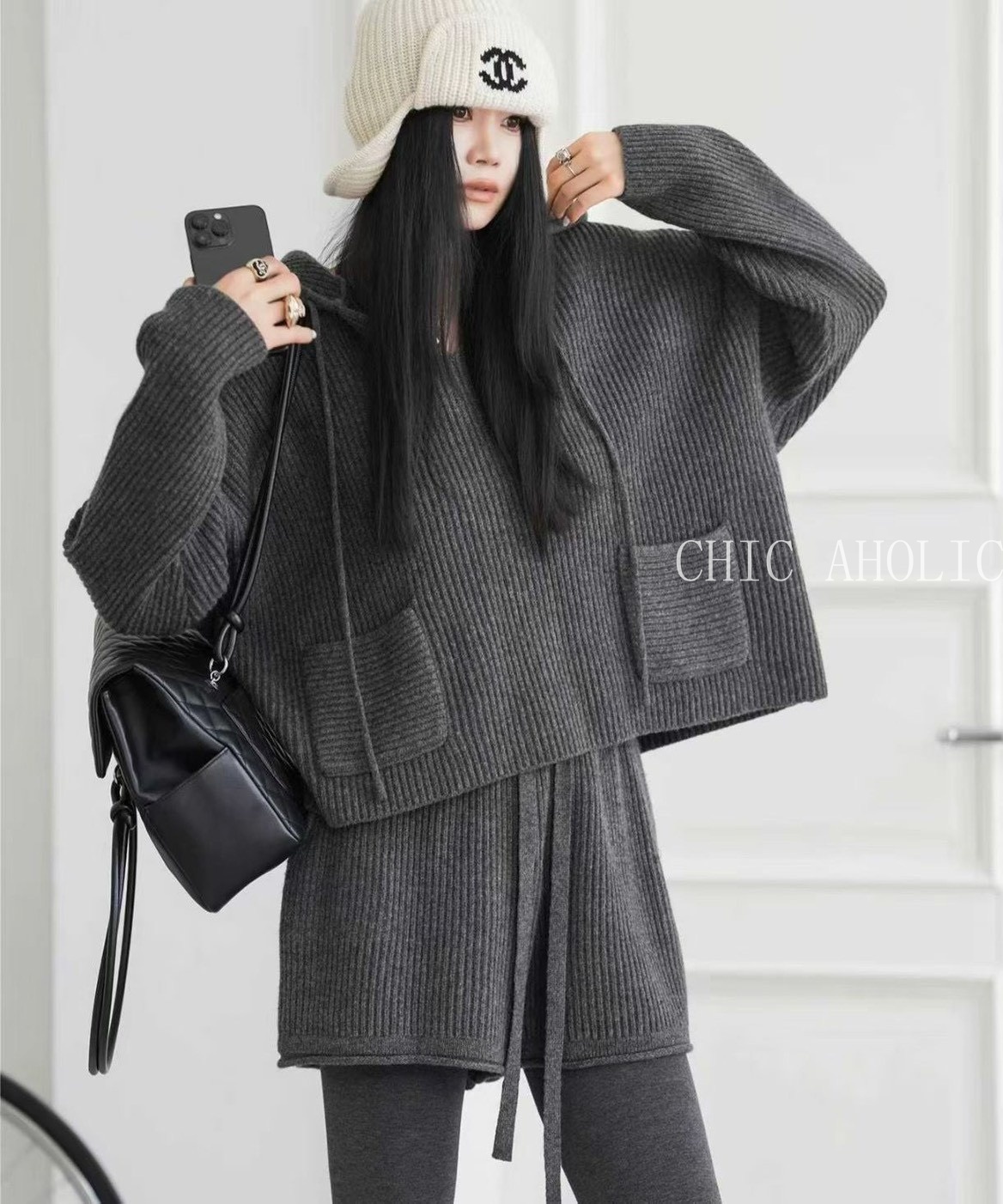 HR13雙口袋有帽短褲套裝