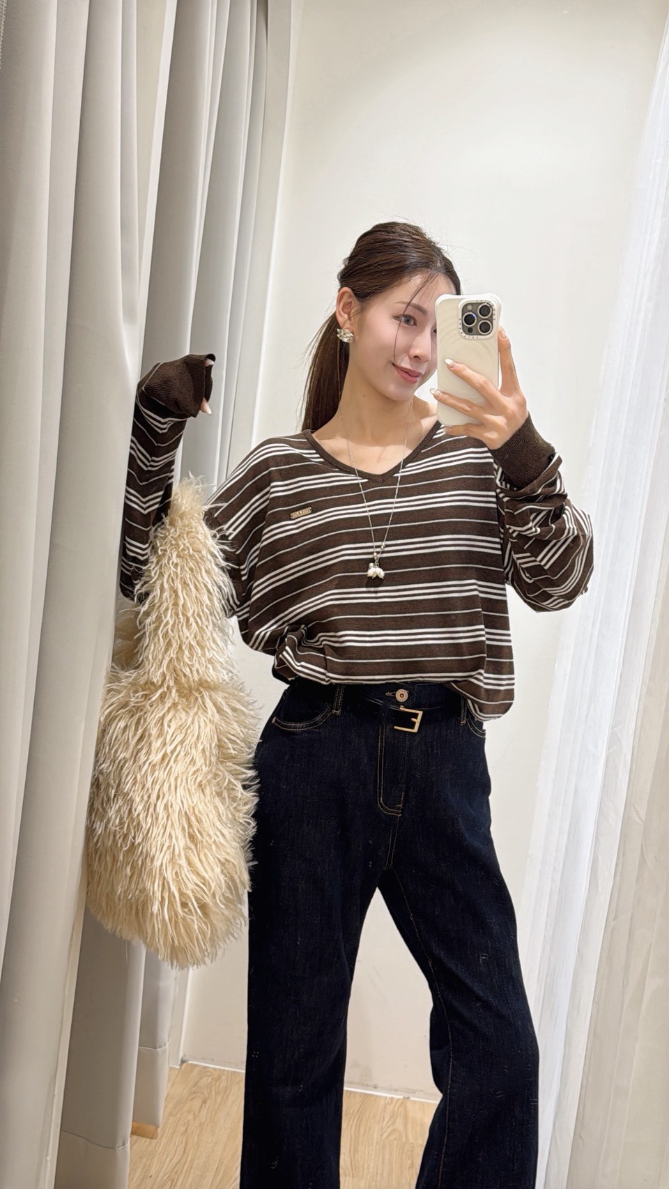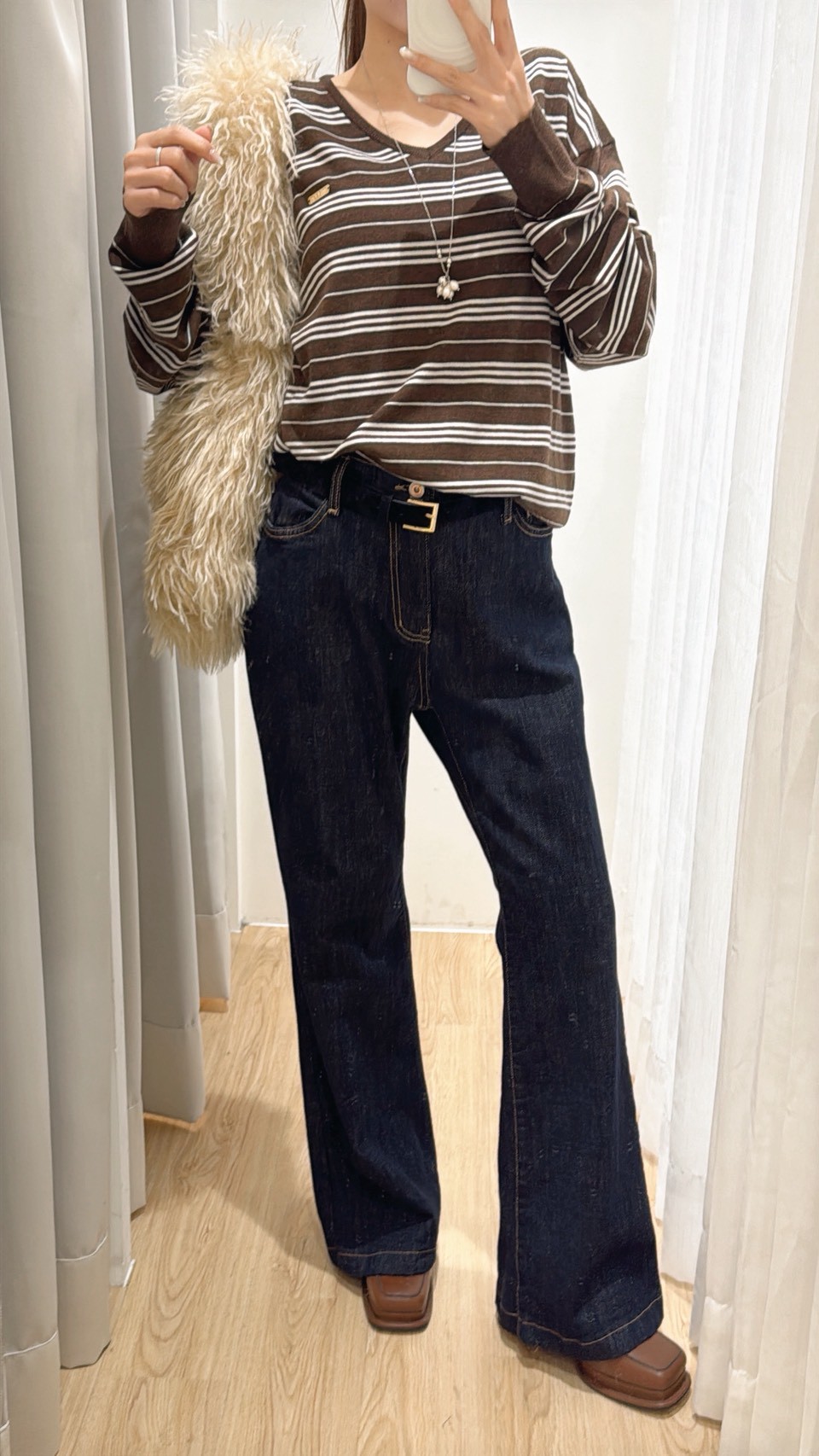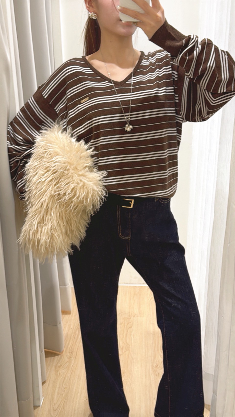 HR18高級鬆弛咖條上衣