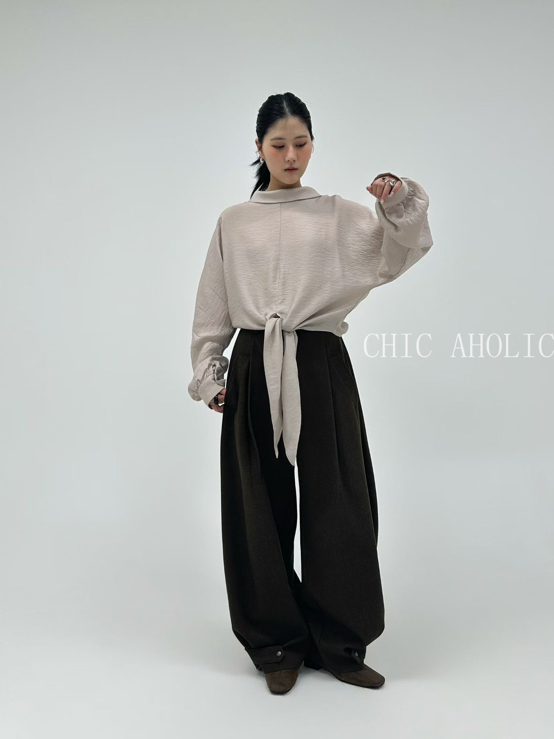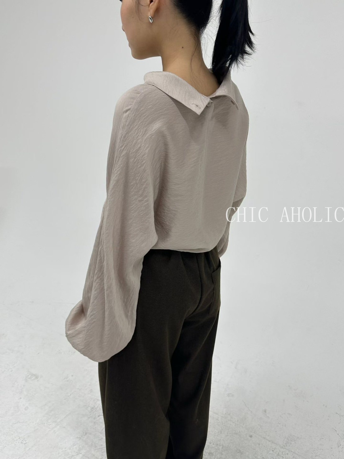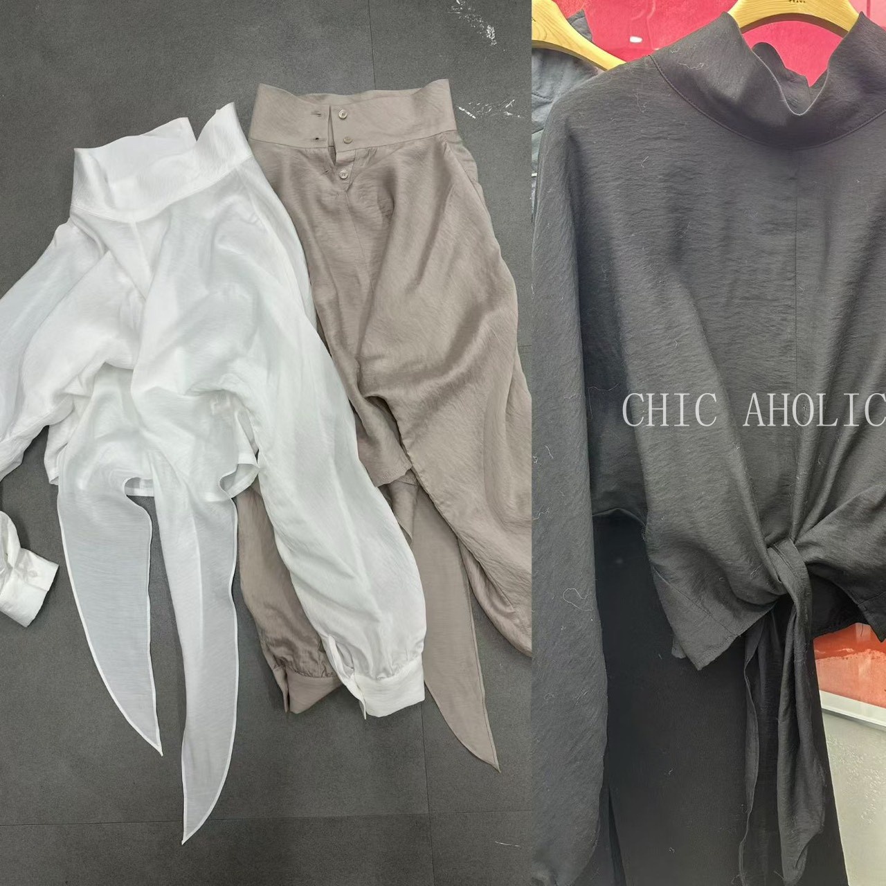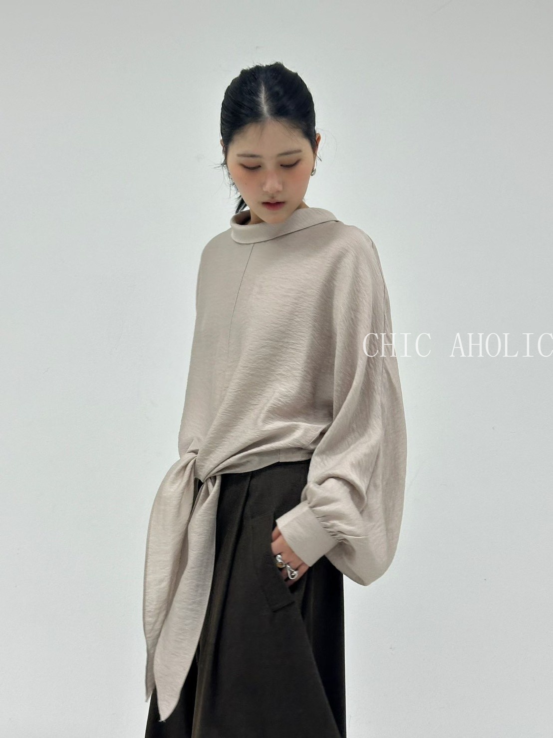 TW21鬆弛高領綁結下擺雪紡衣