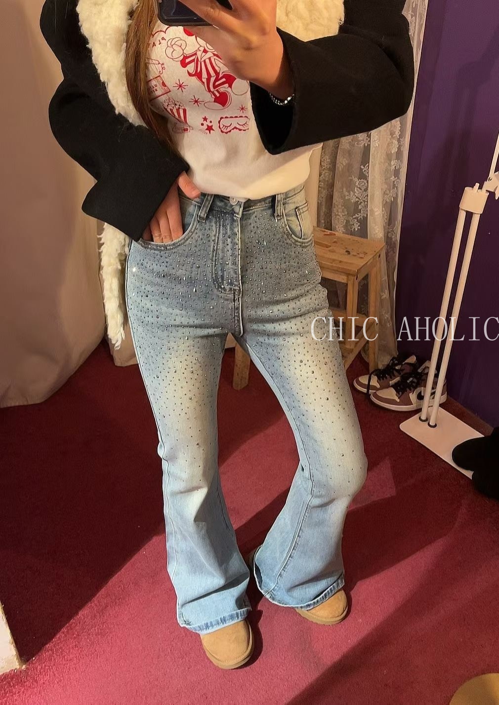 MOM13全亮鑽喇叭褲