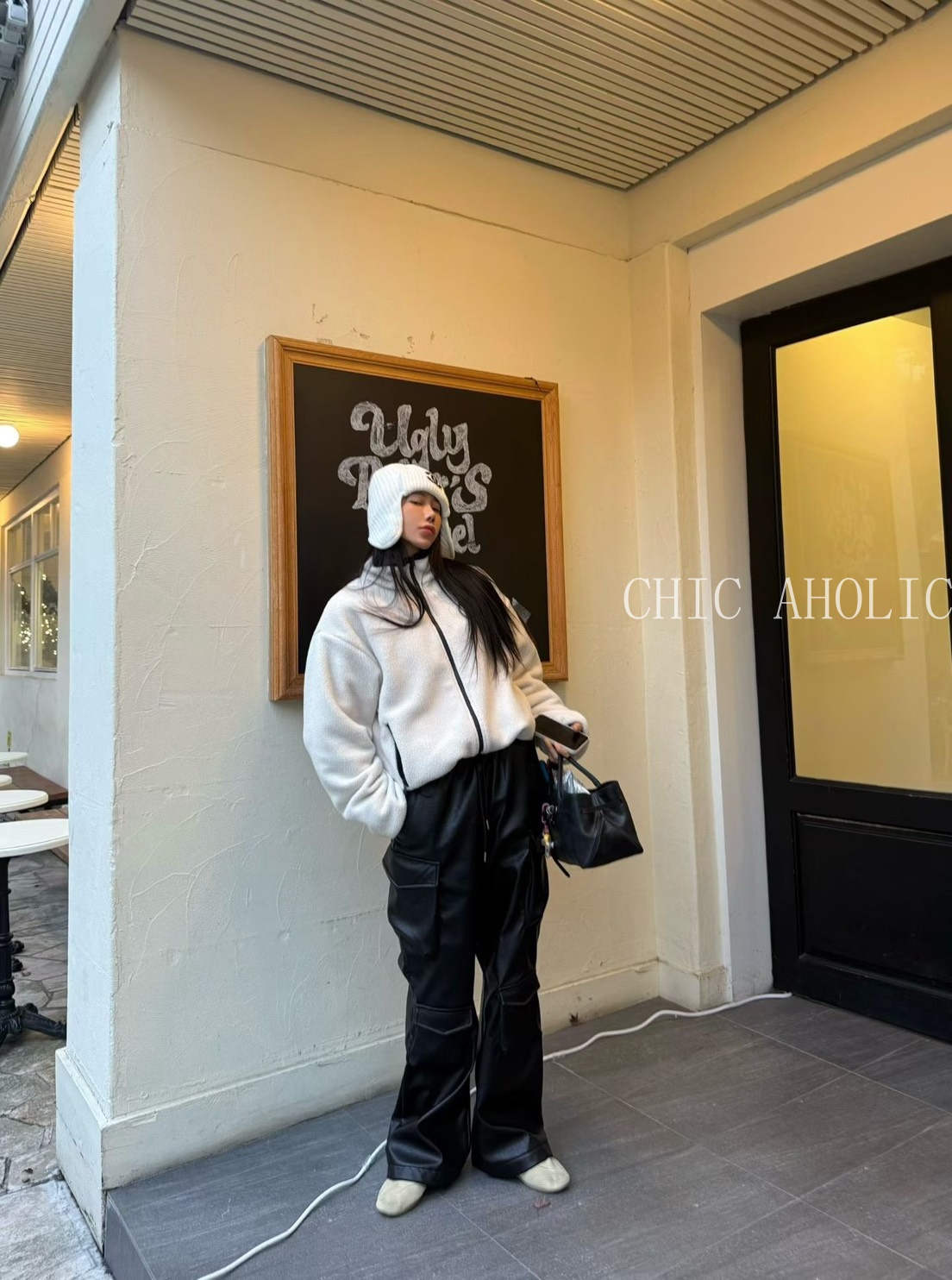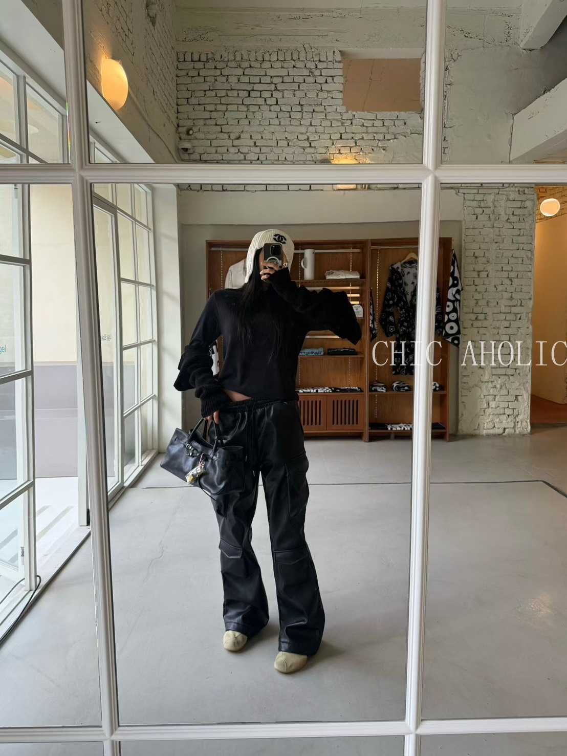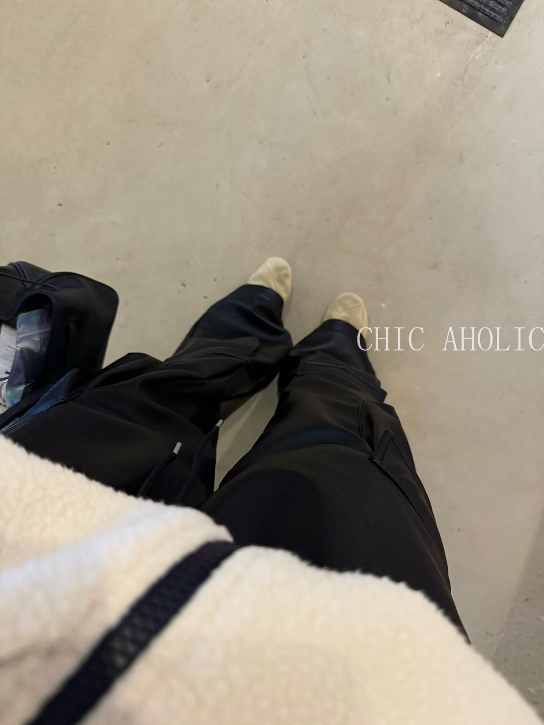 TW27亮亮皮革感工裝褲