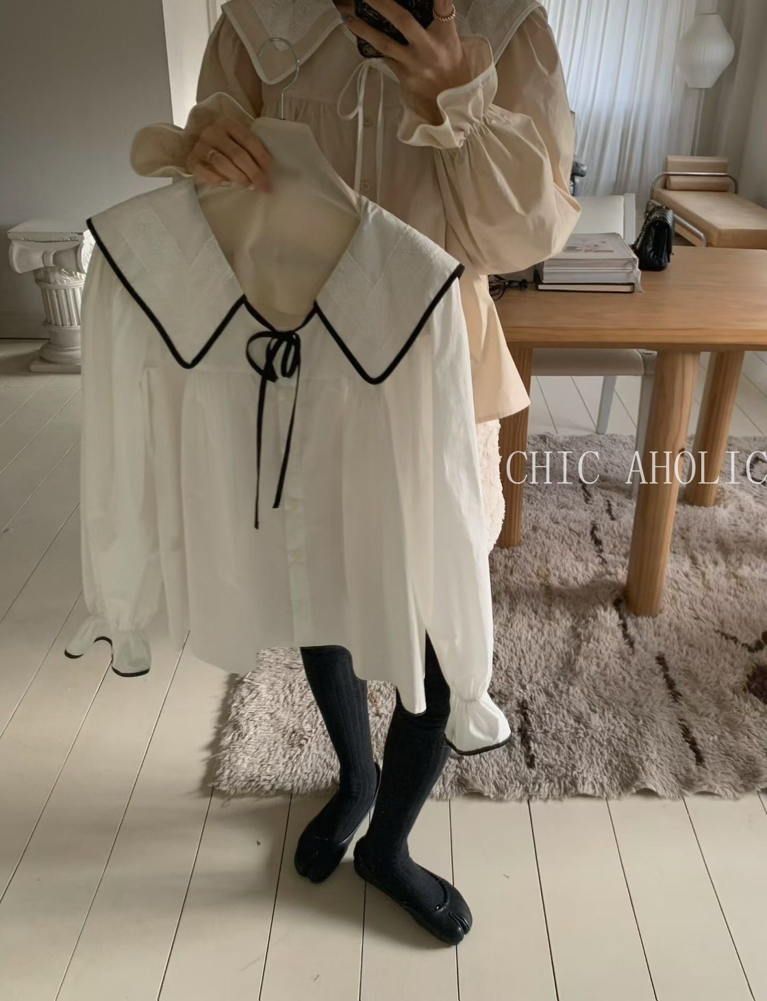 大片撞色學院領襯衫