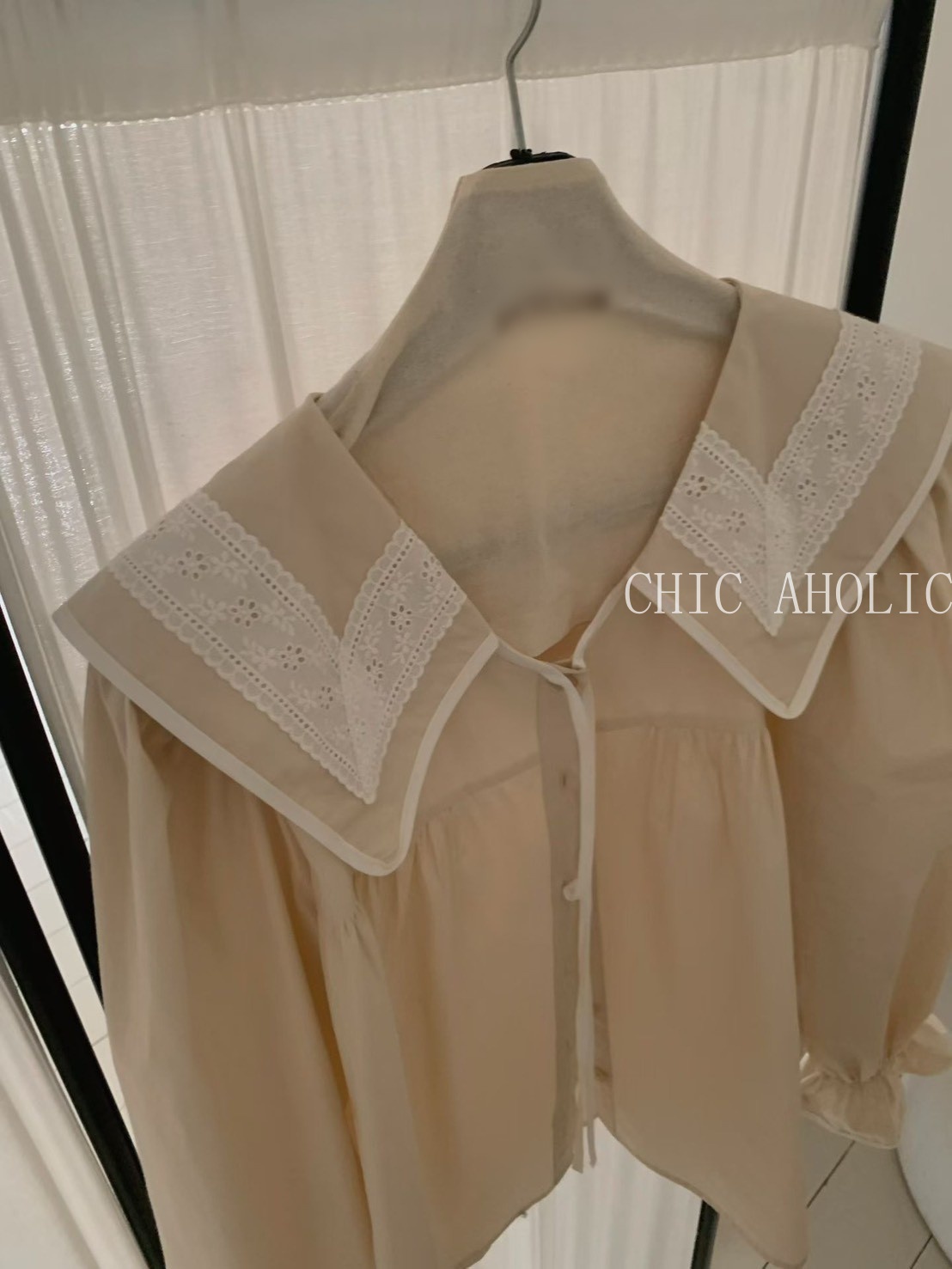 斜荷葉下擺紗薄長袖上衣