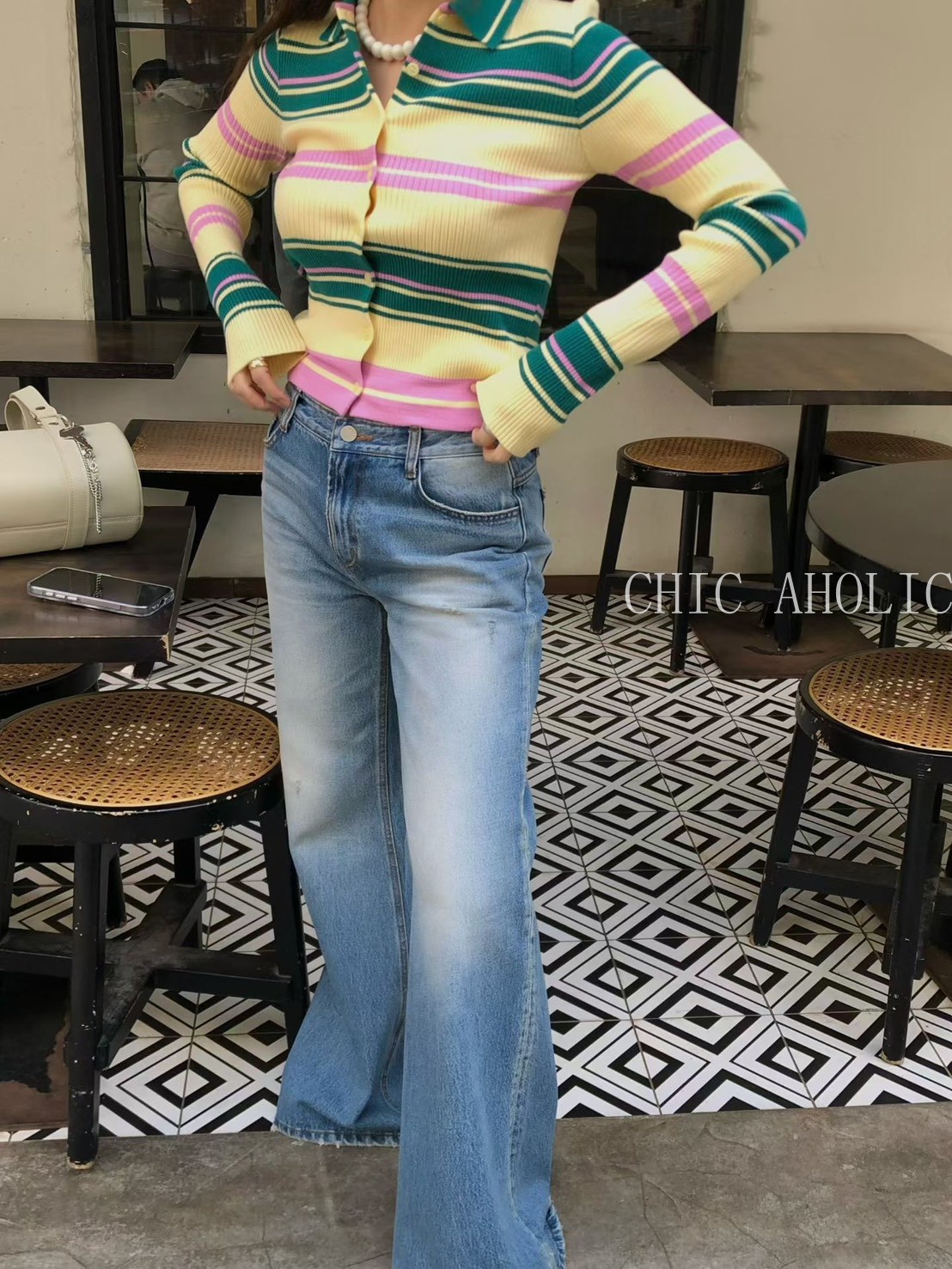 SPR06miu學員風粉藍黃針織外套