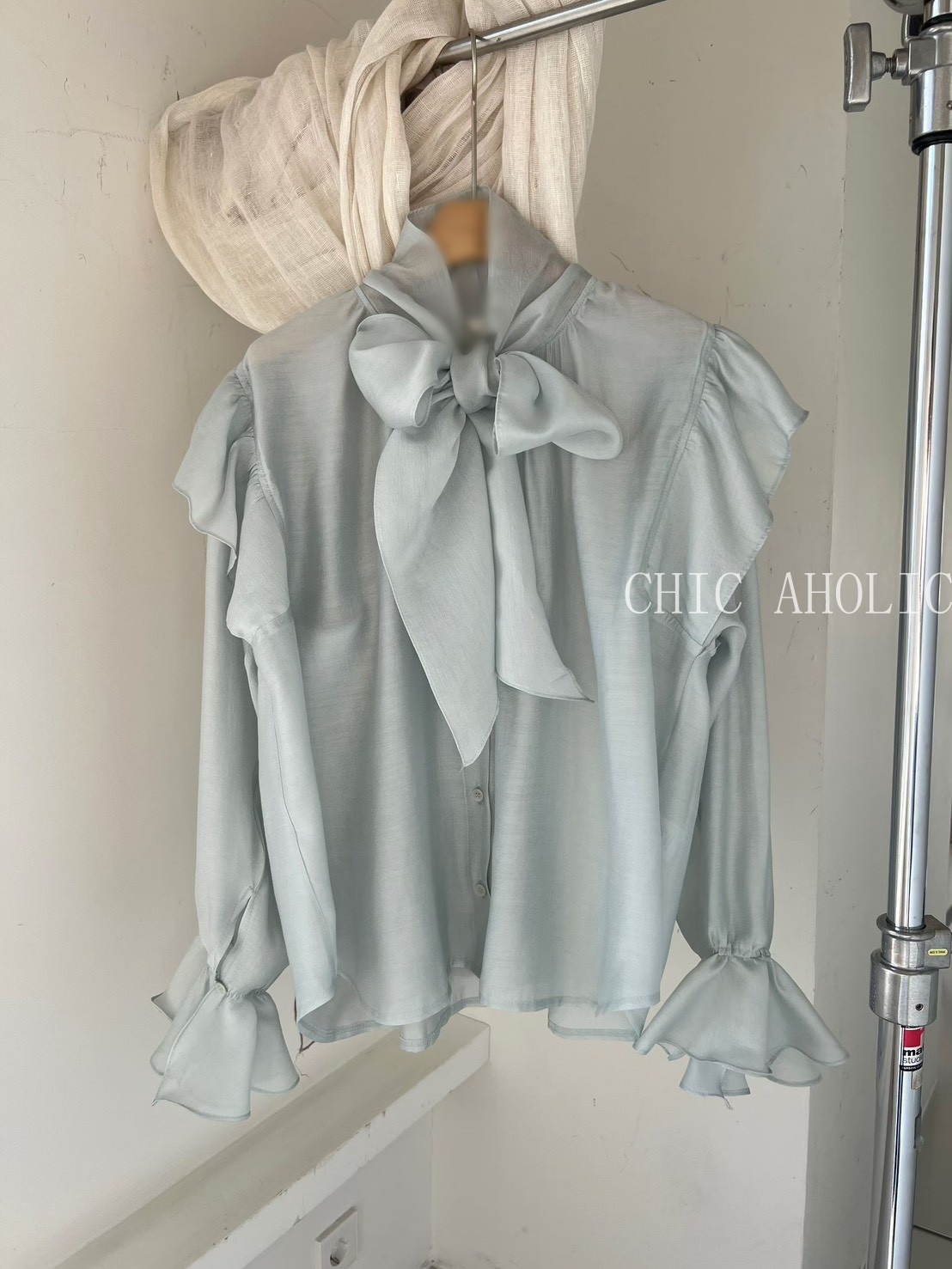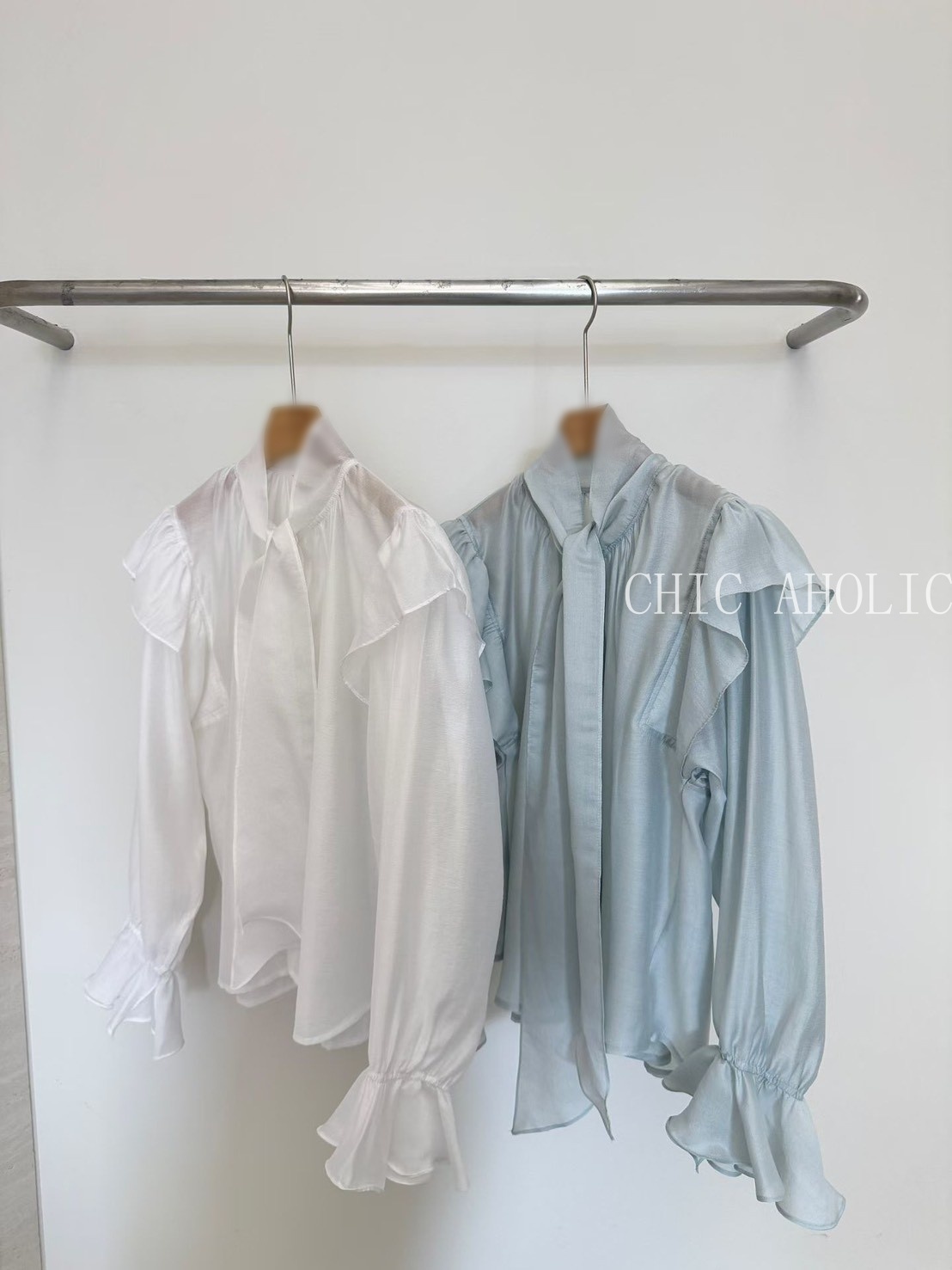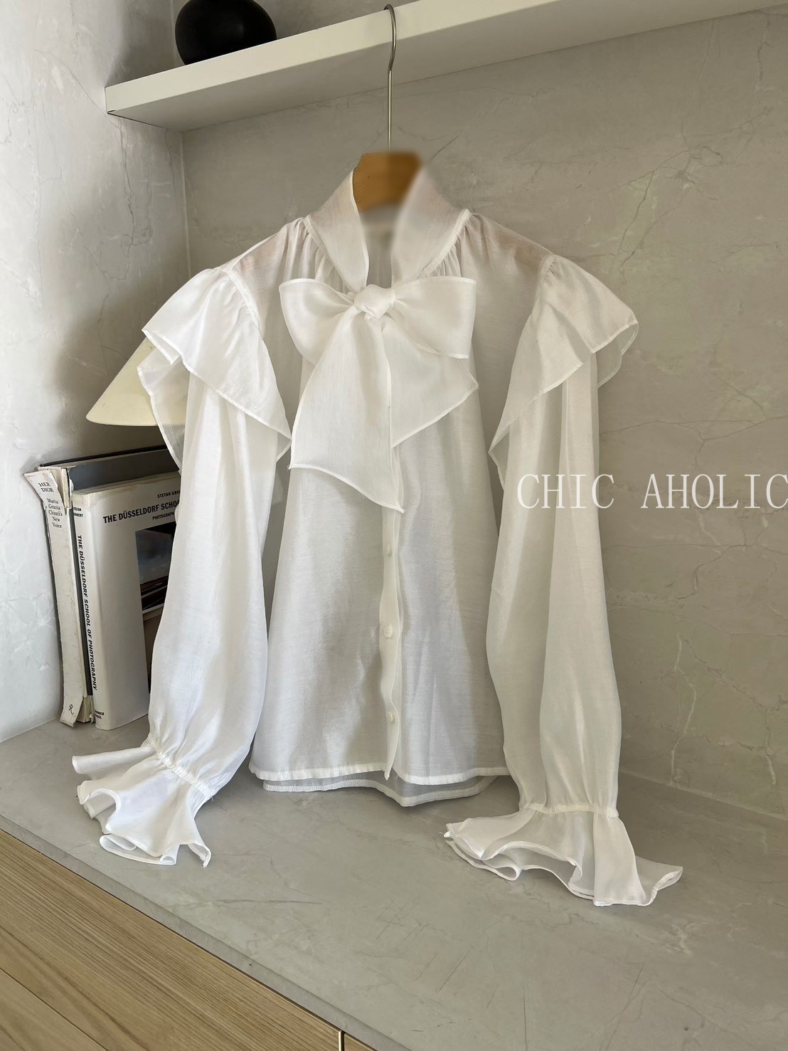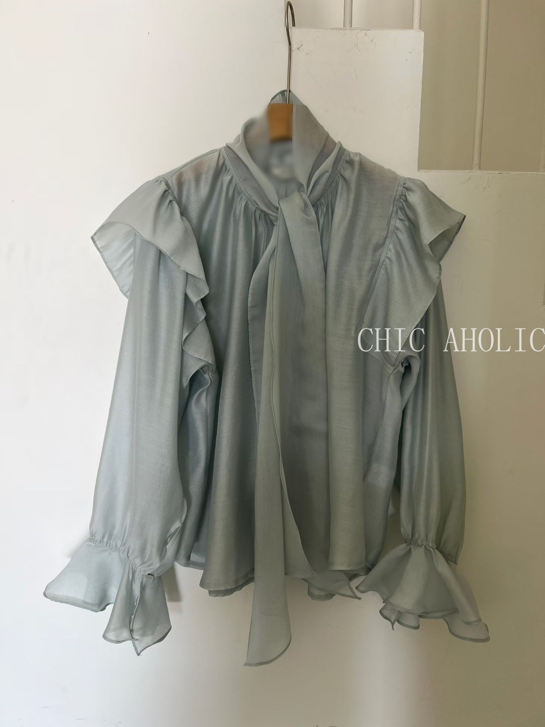 SPR17手袖多層抓摺一字領上衣