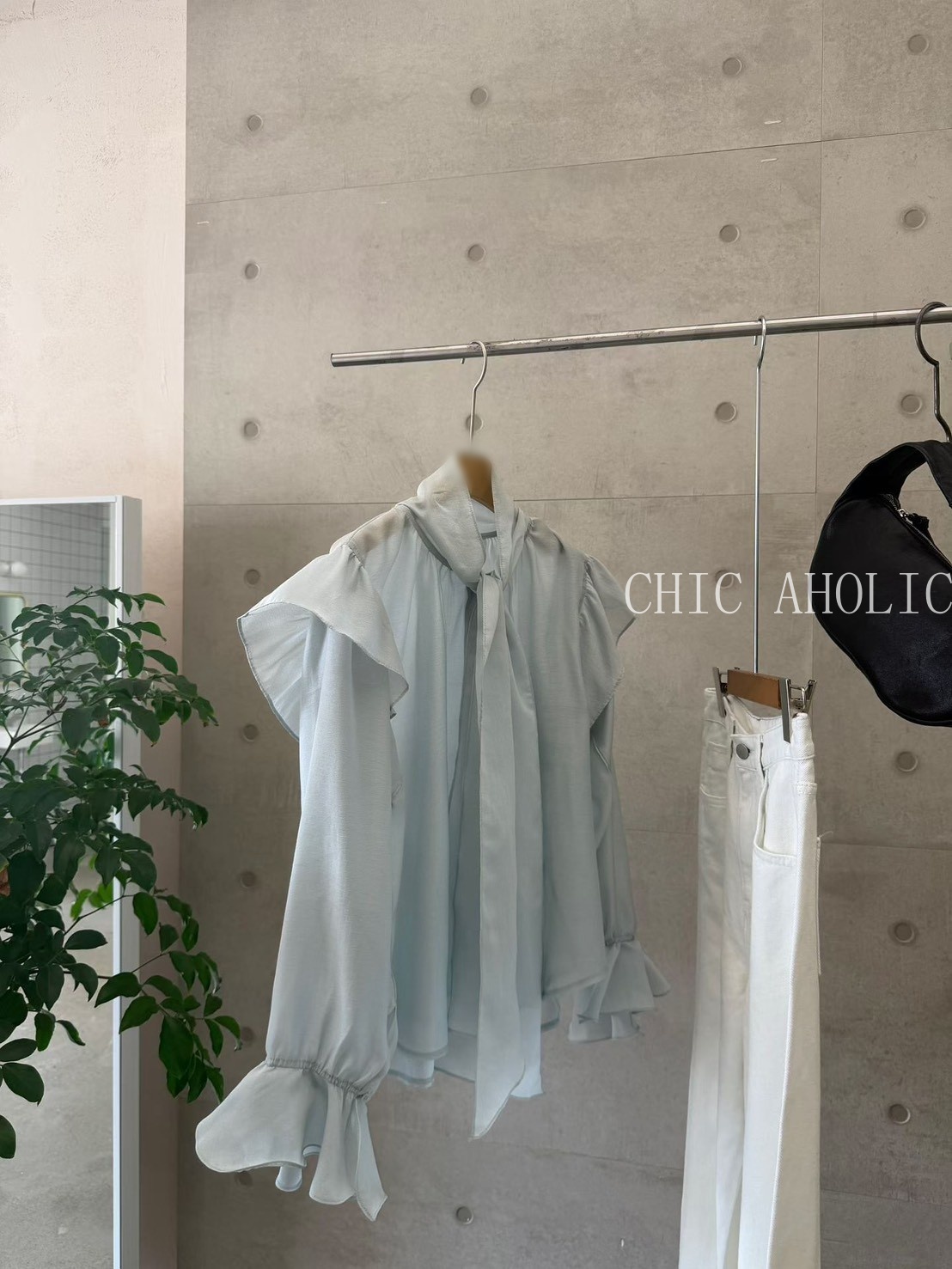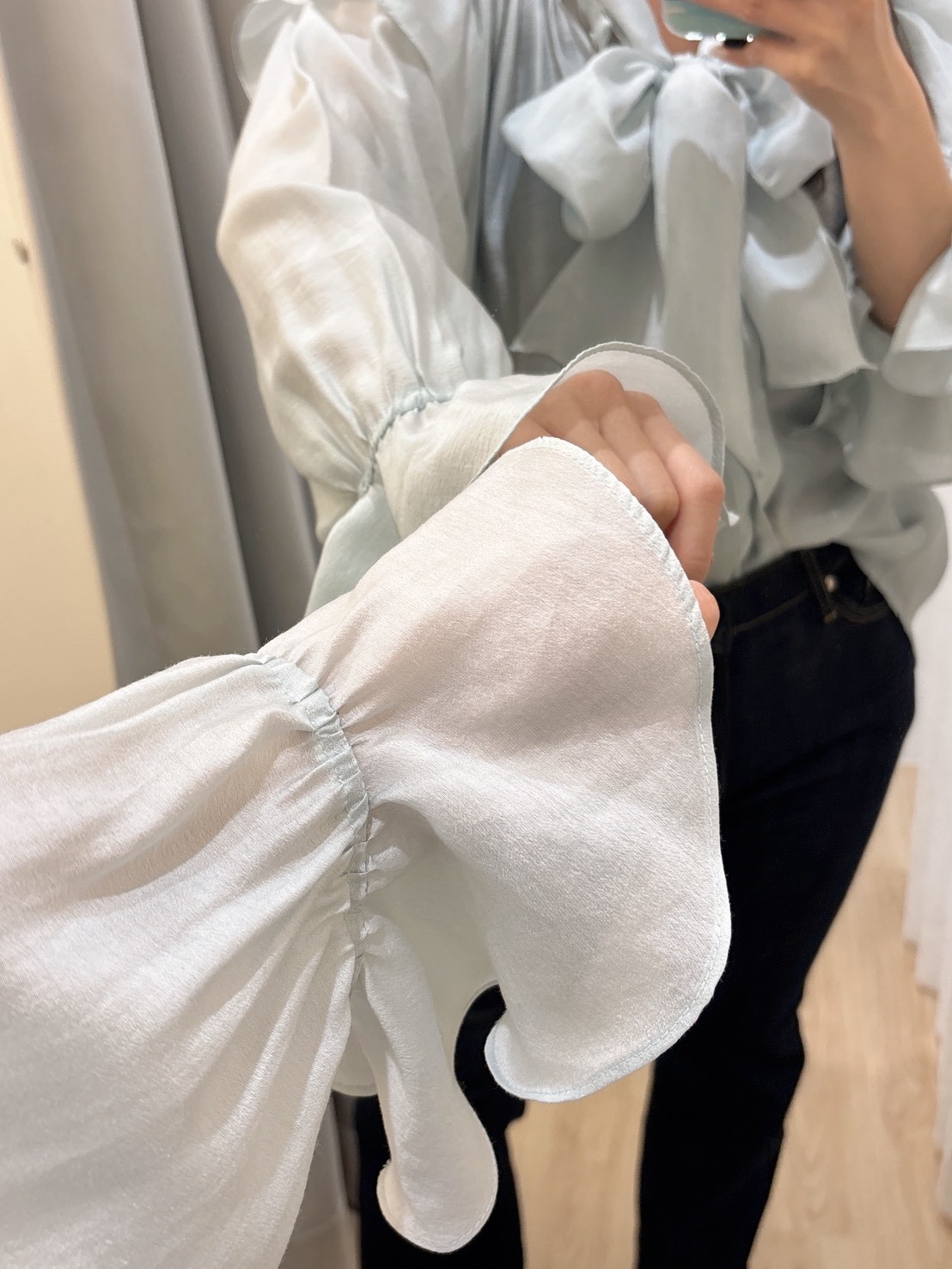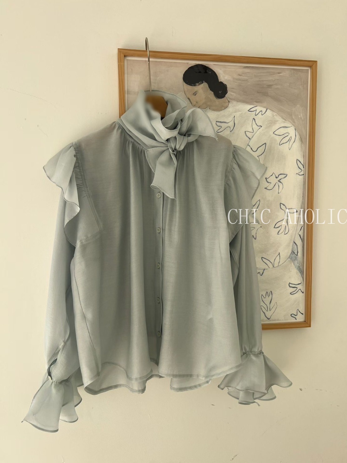 SPR17手袖多層抓摺一字領上衣