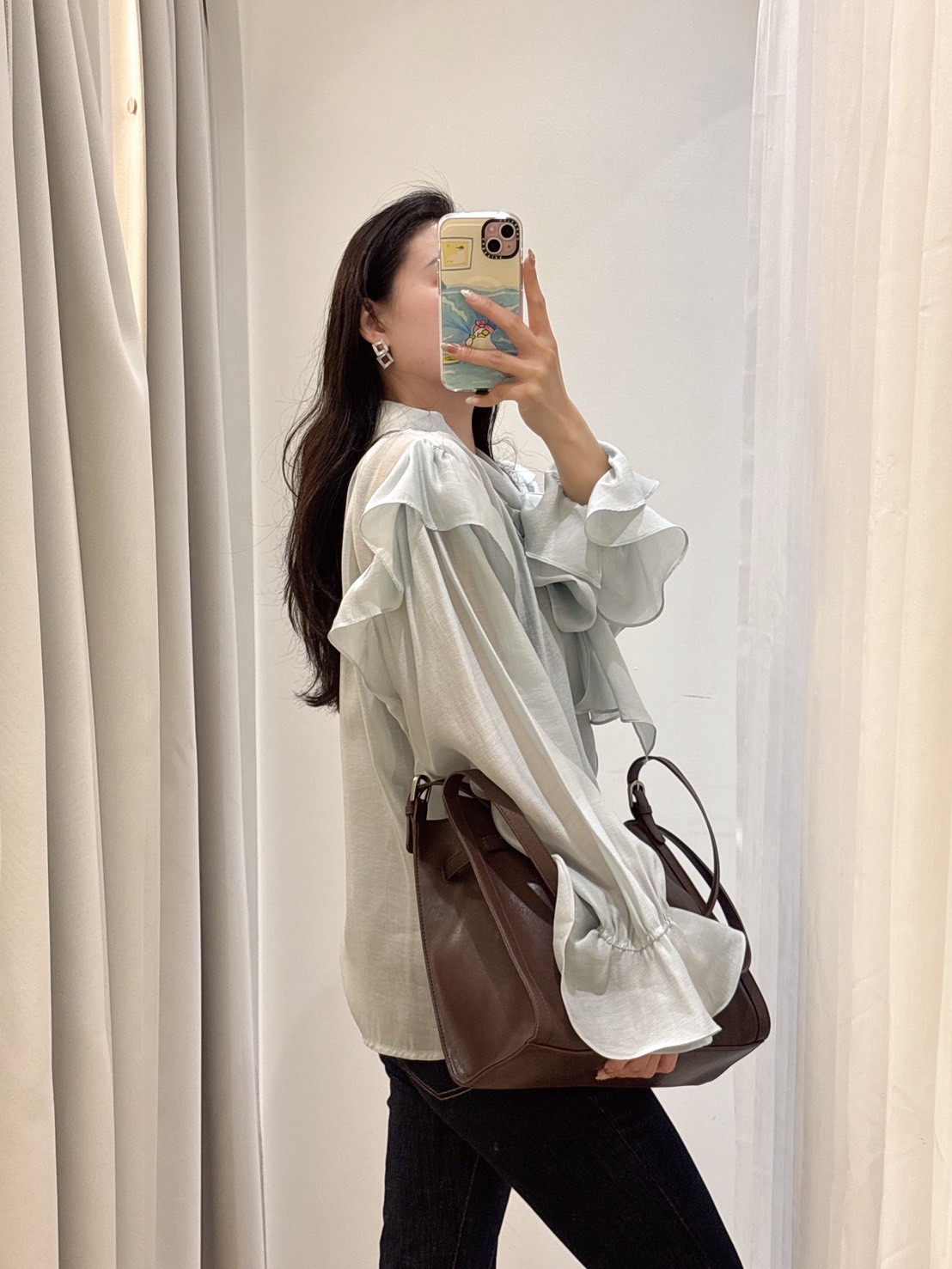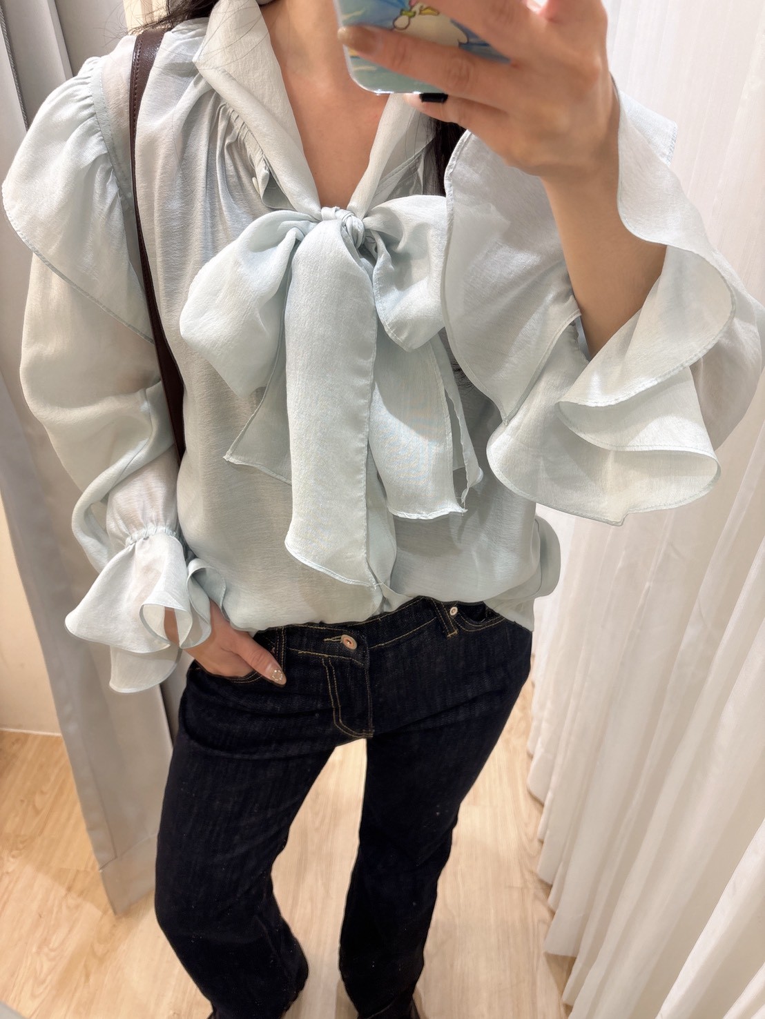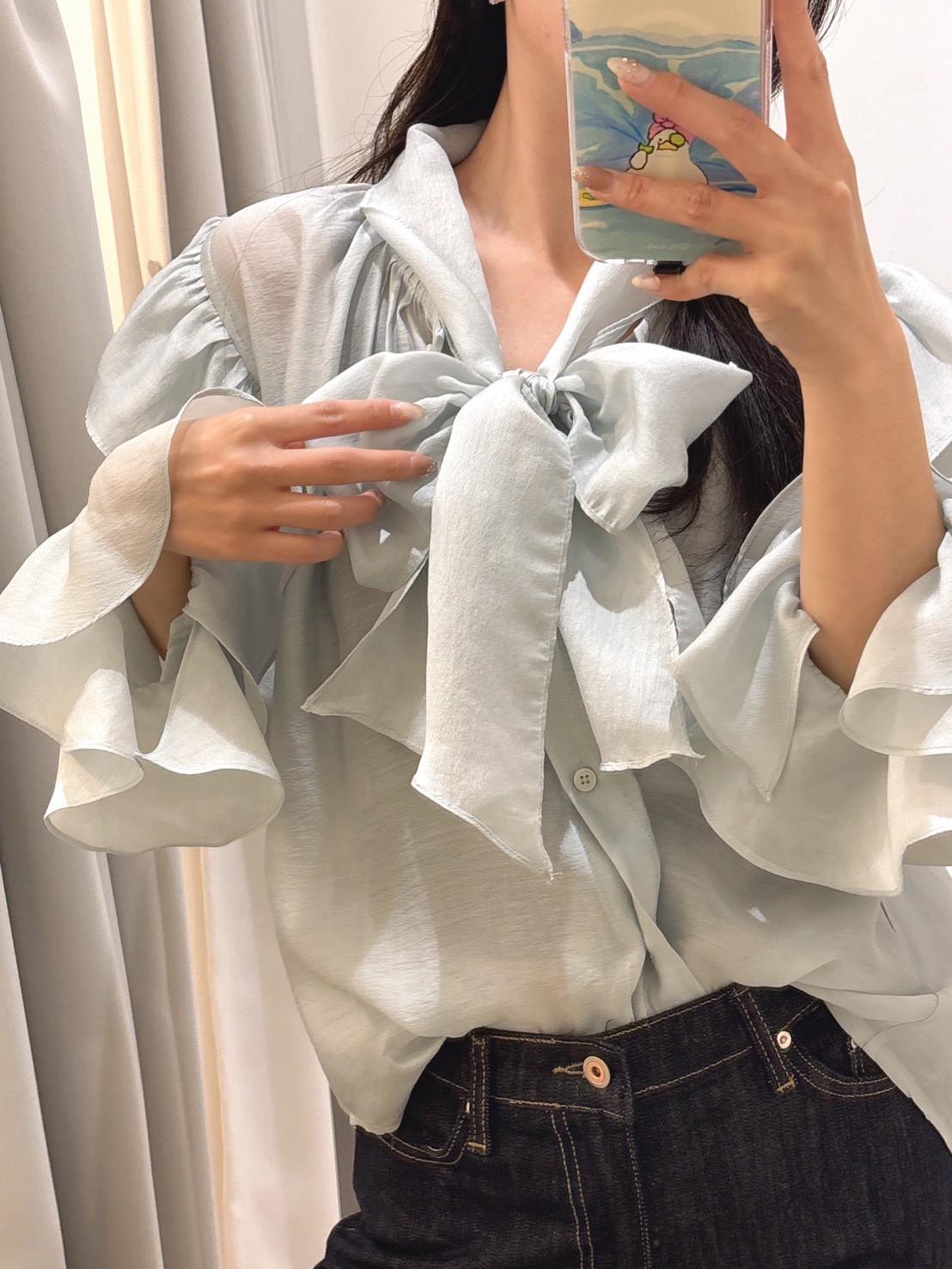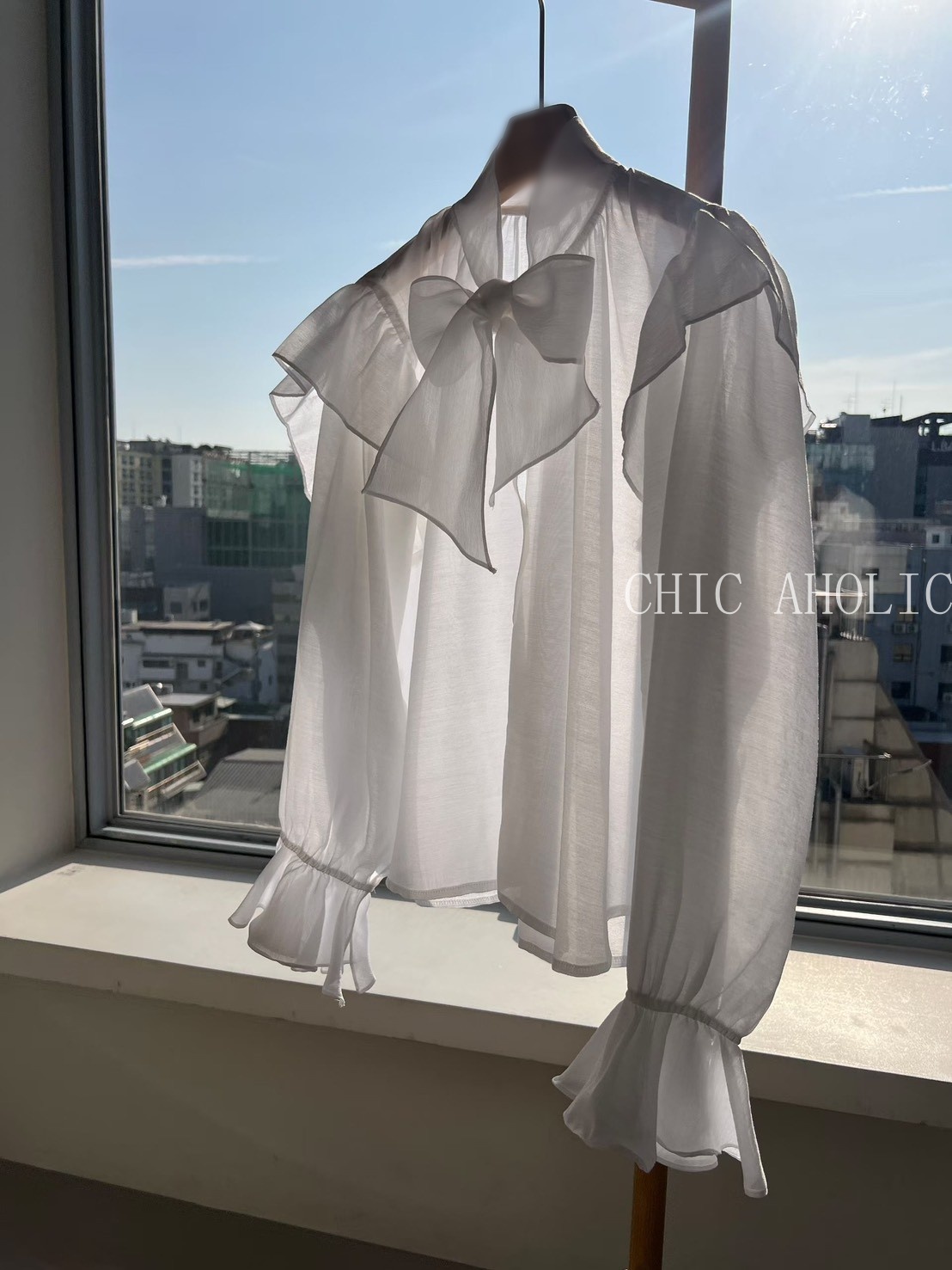 SPR17手袖多層抓摺一字領上衣