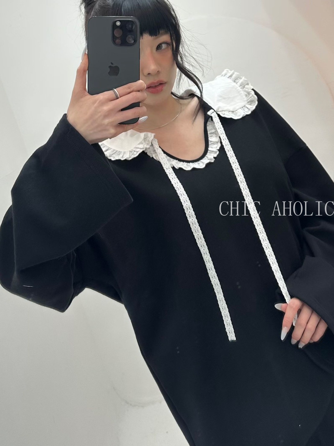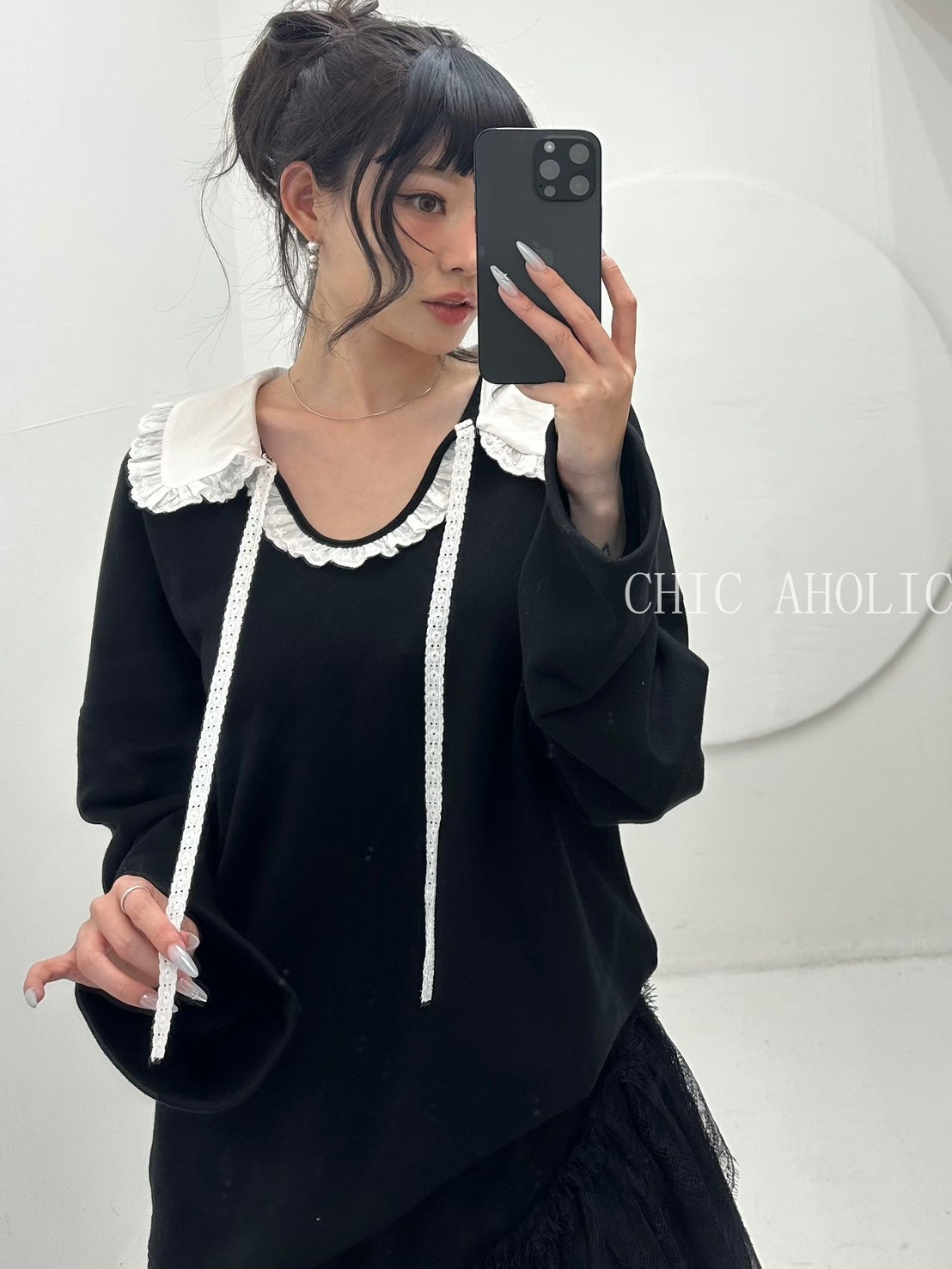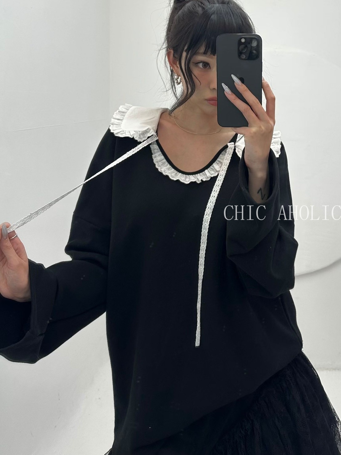 SPR19蕾絲圓領蕾絲綁帶衣