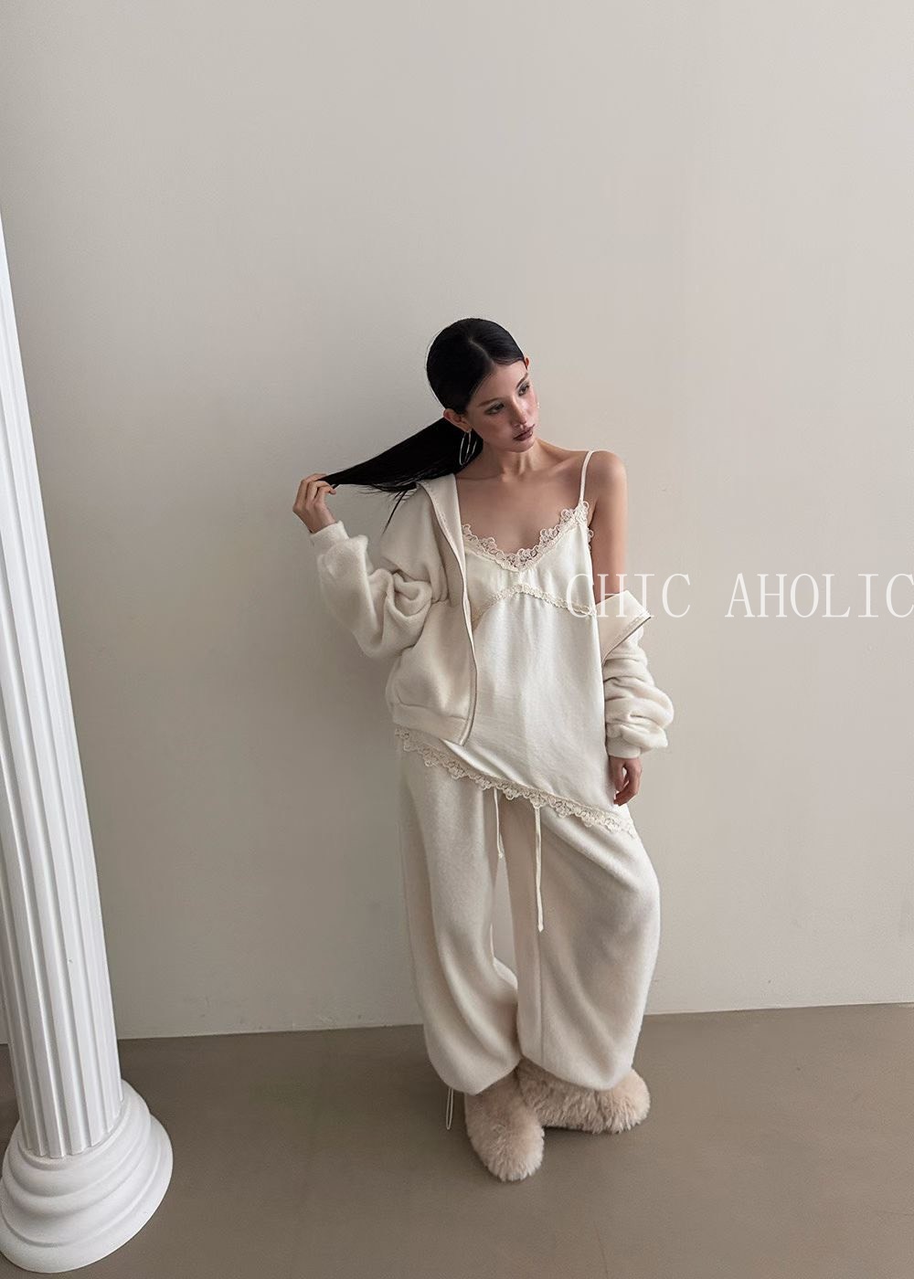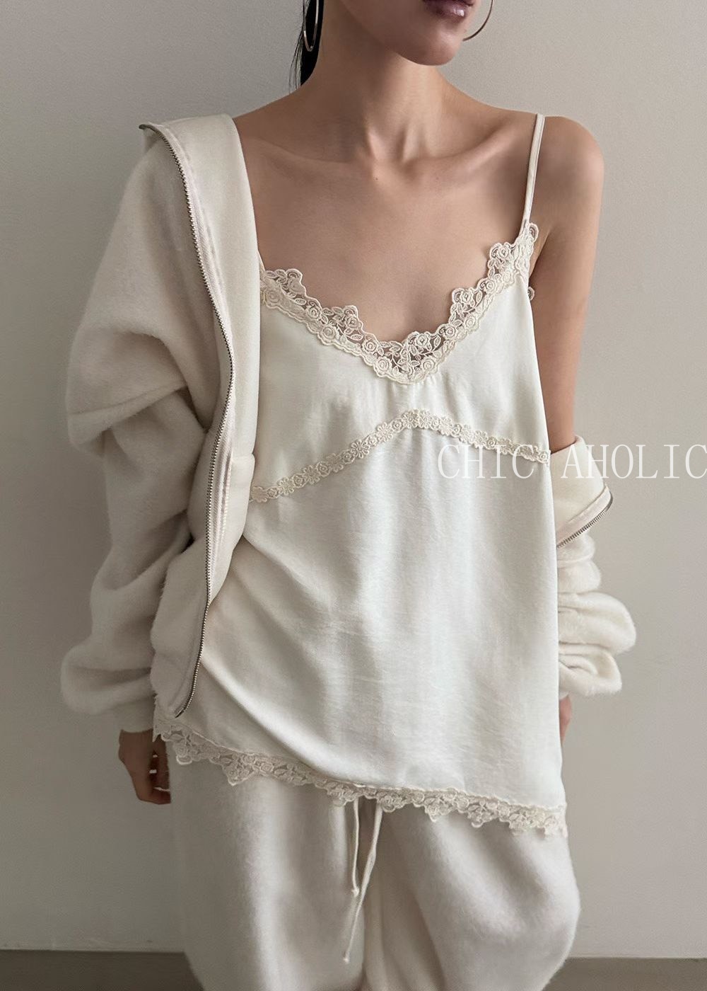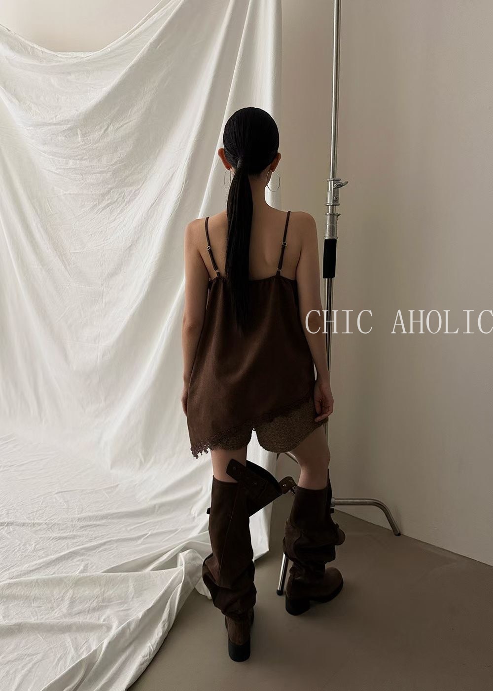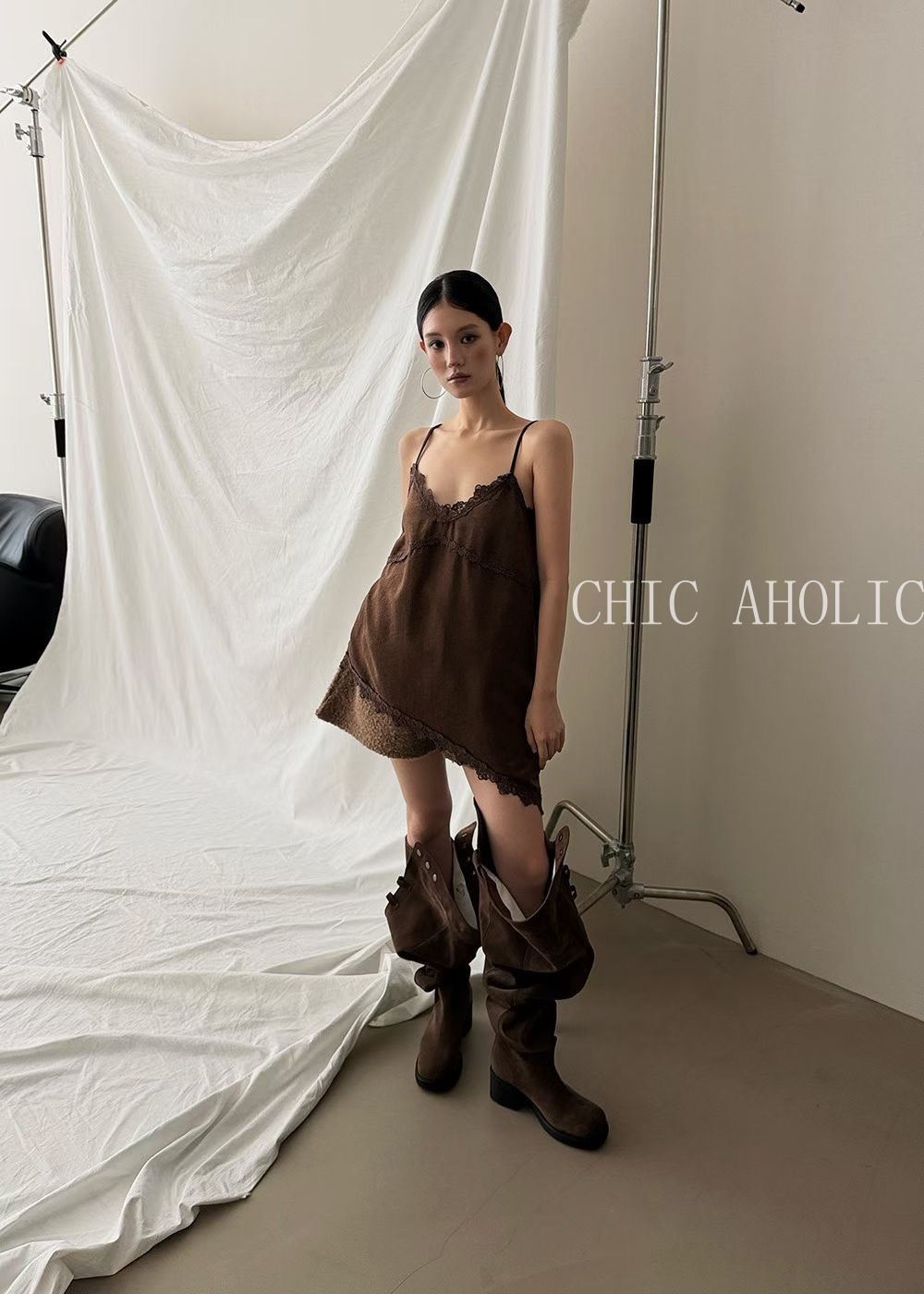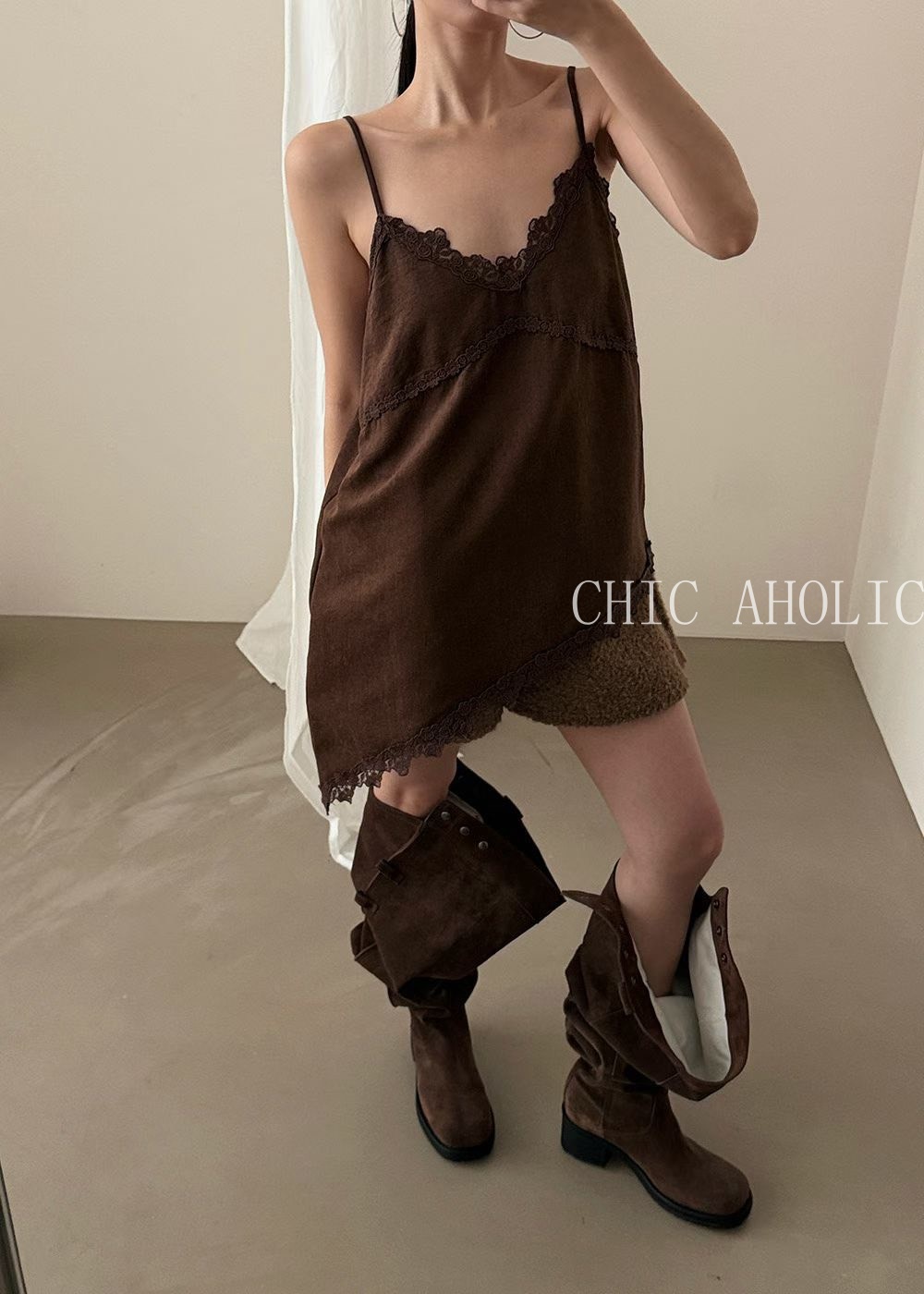 SPR26麂皮絨感蕾絲細肩衣