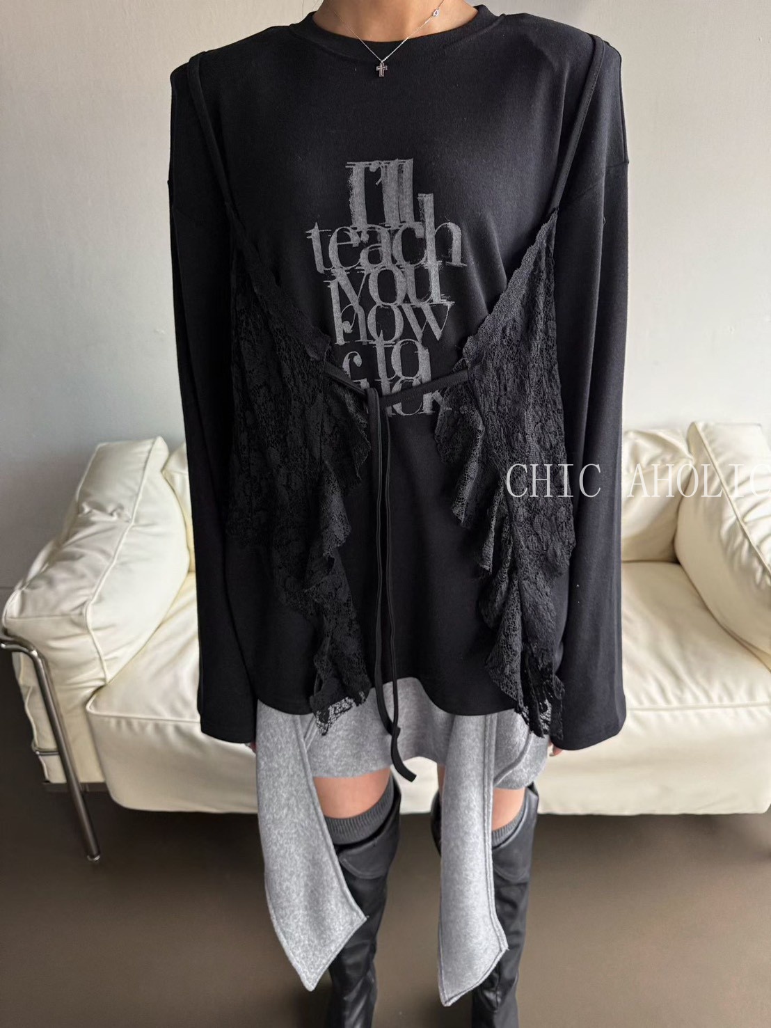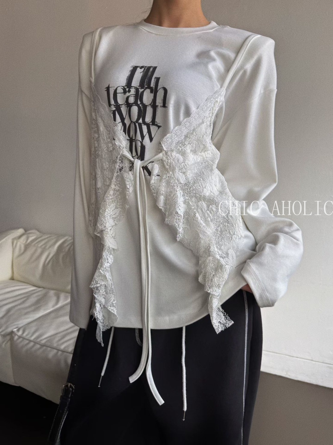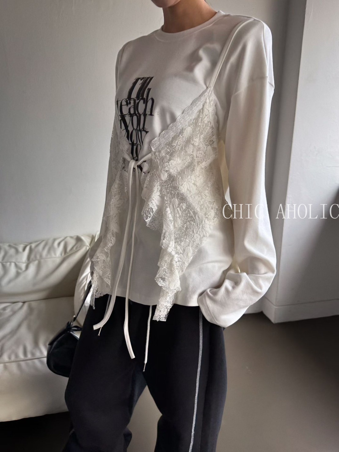 MOM19蕾絲蝴蝶結背心假兩件式衣