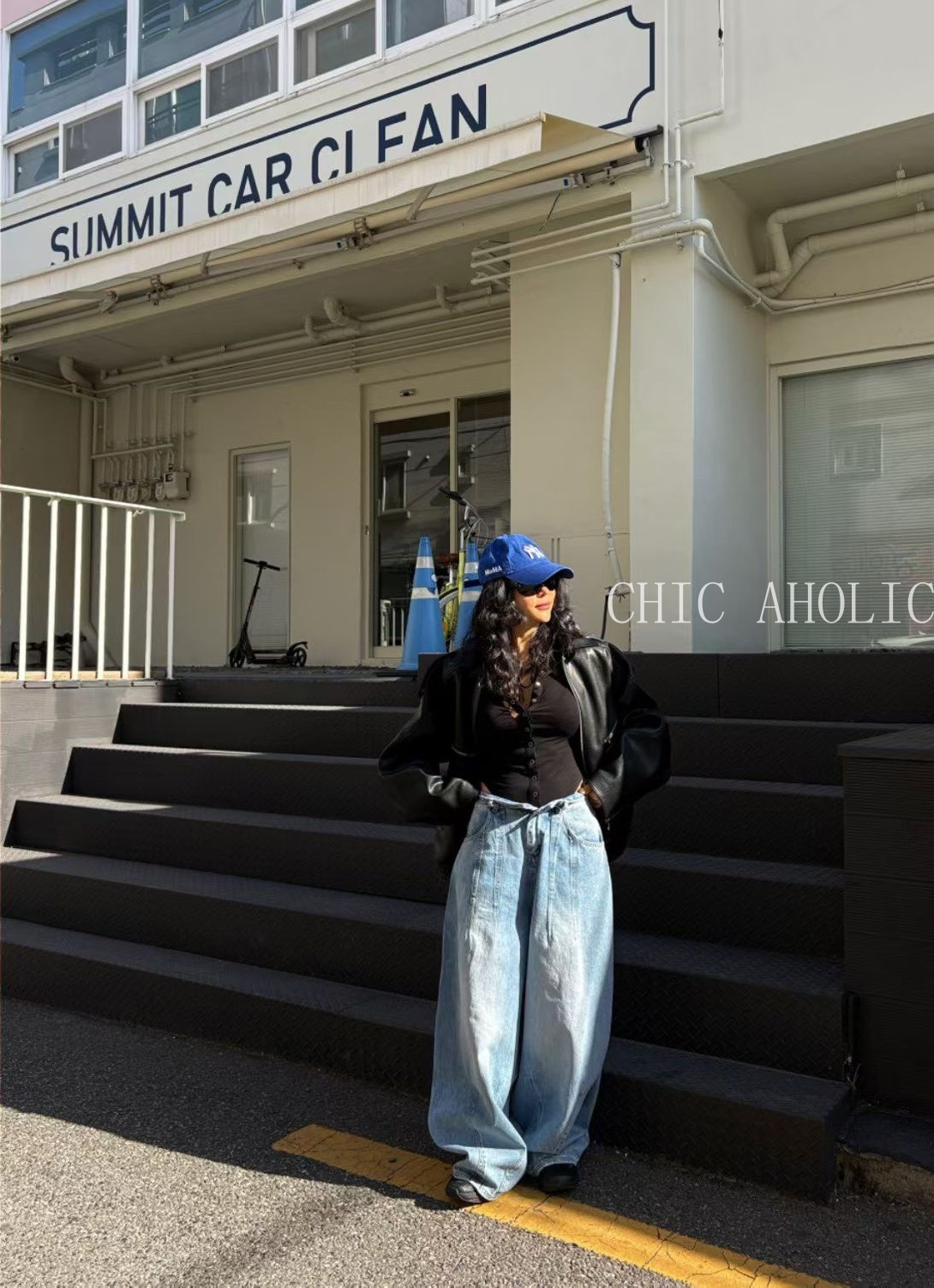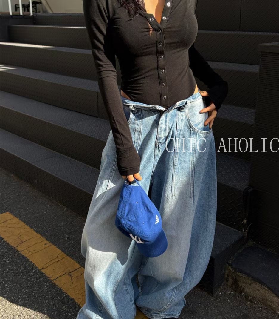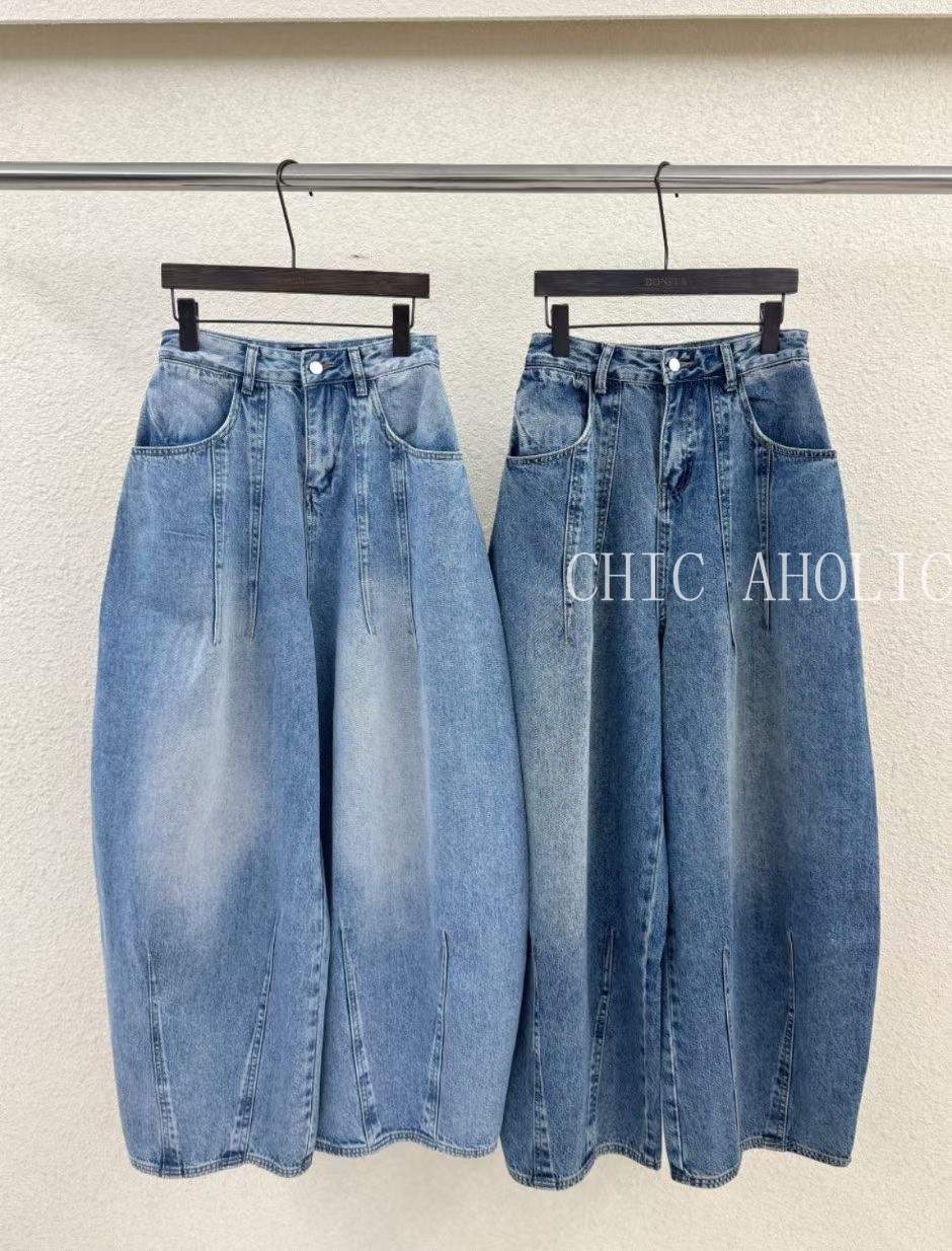 前雙打摺彎刀牛仔褲