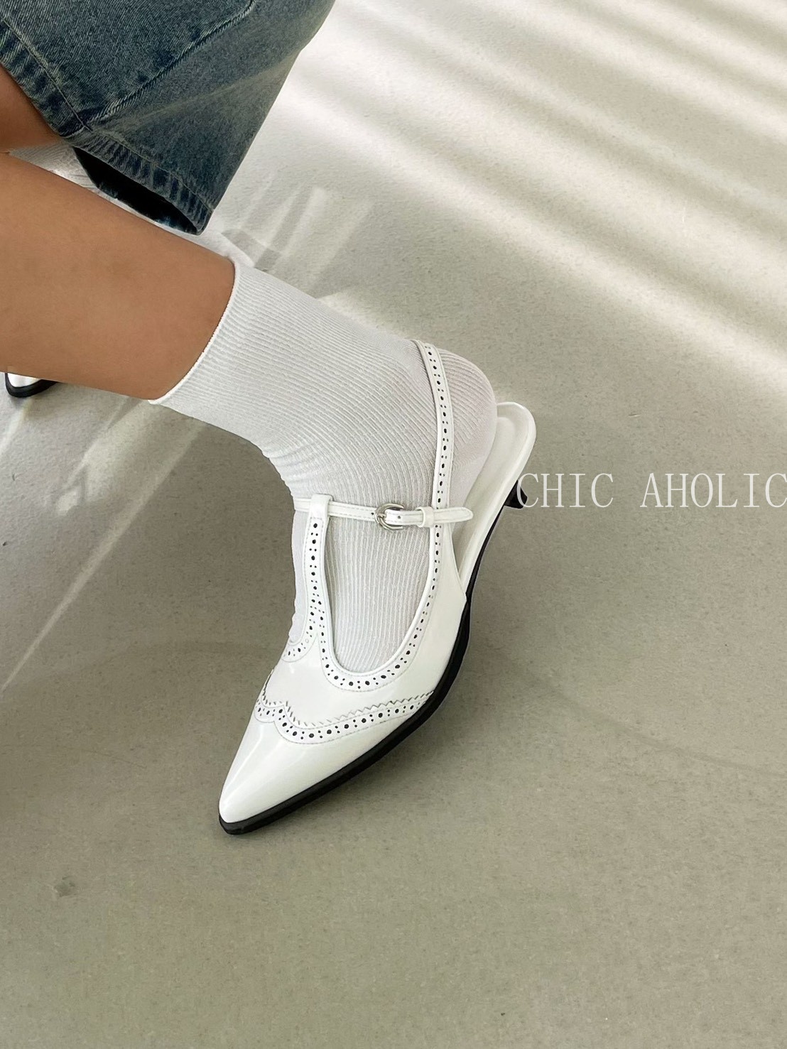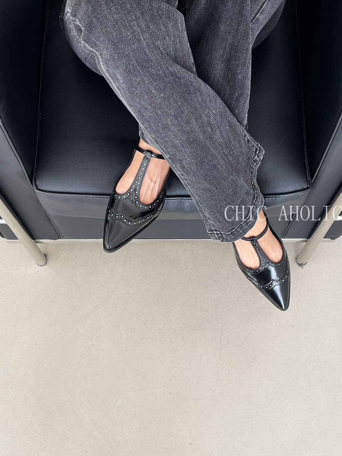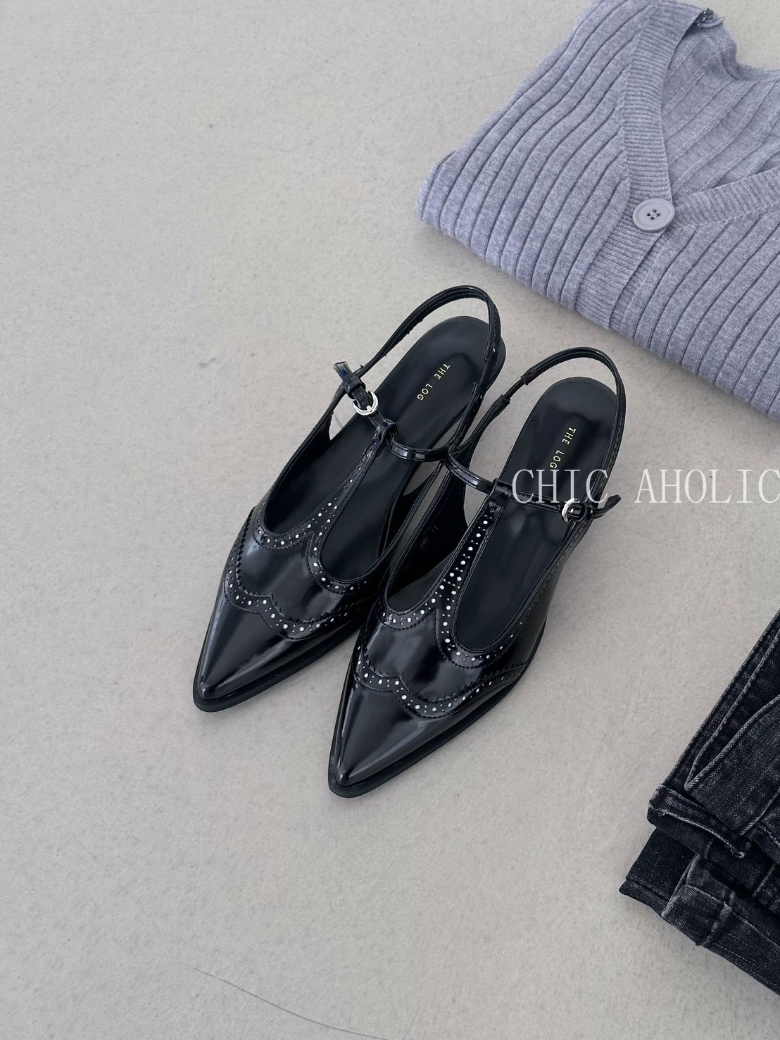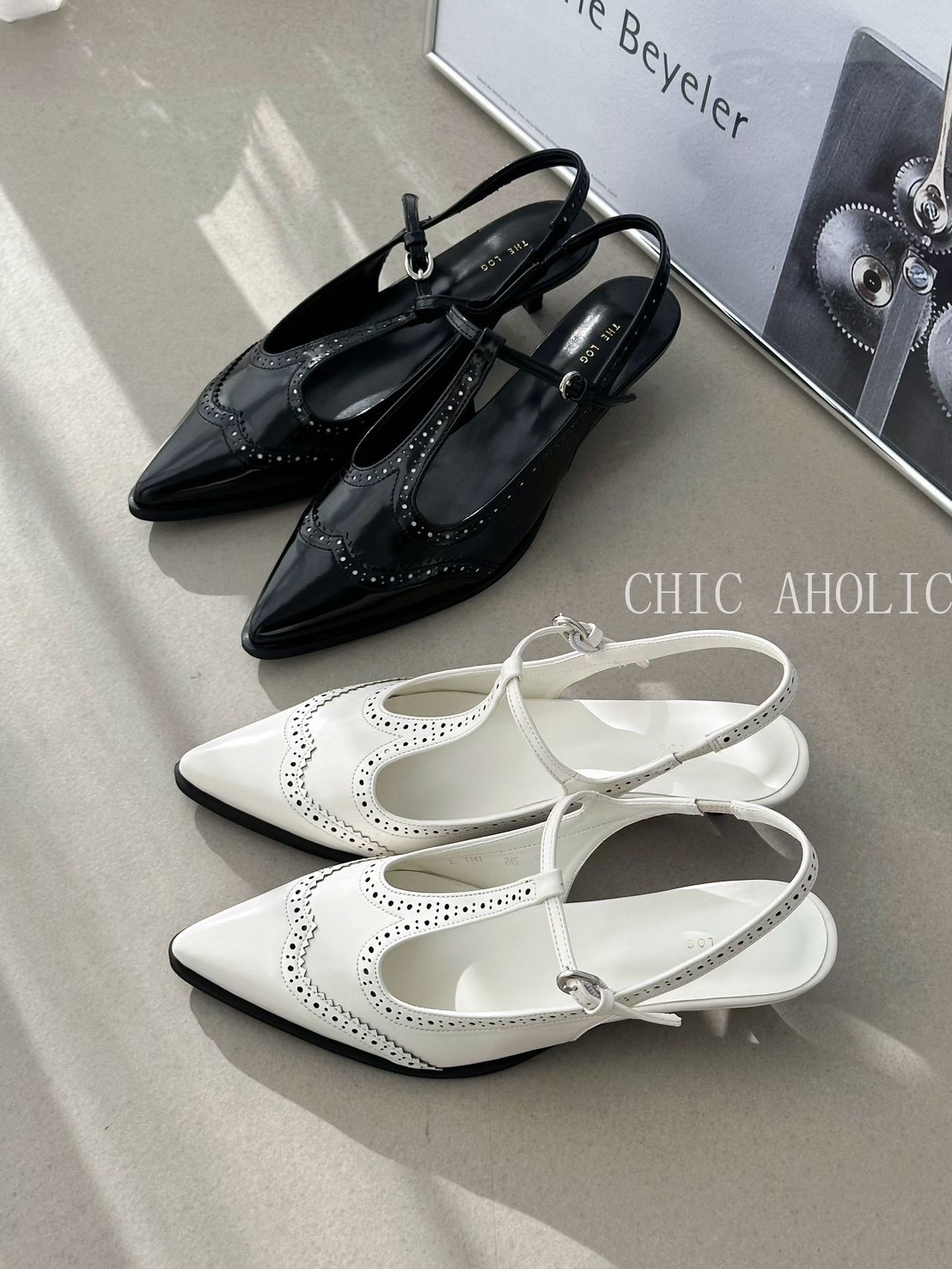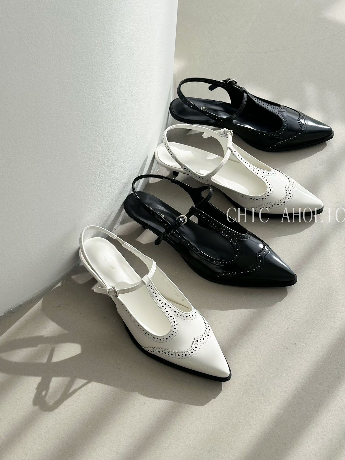 FEB21雕花T字尖頭低跟鞋