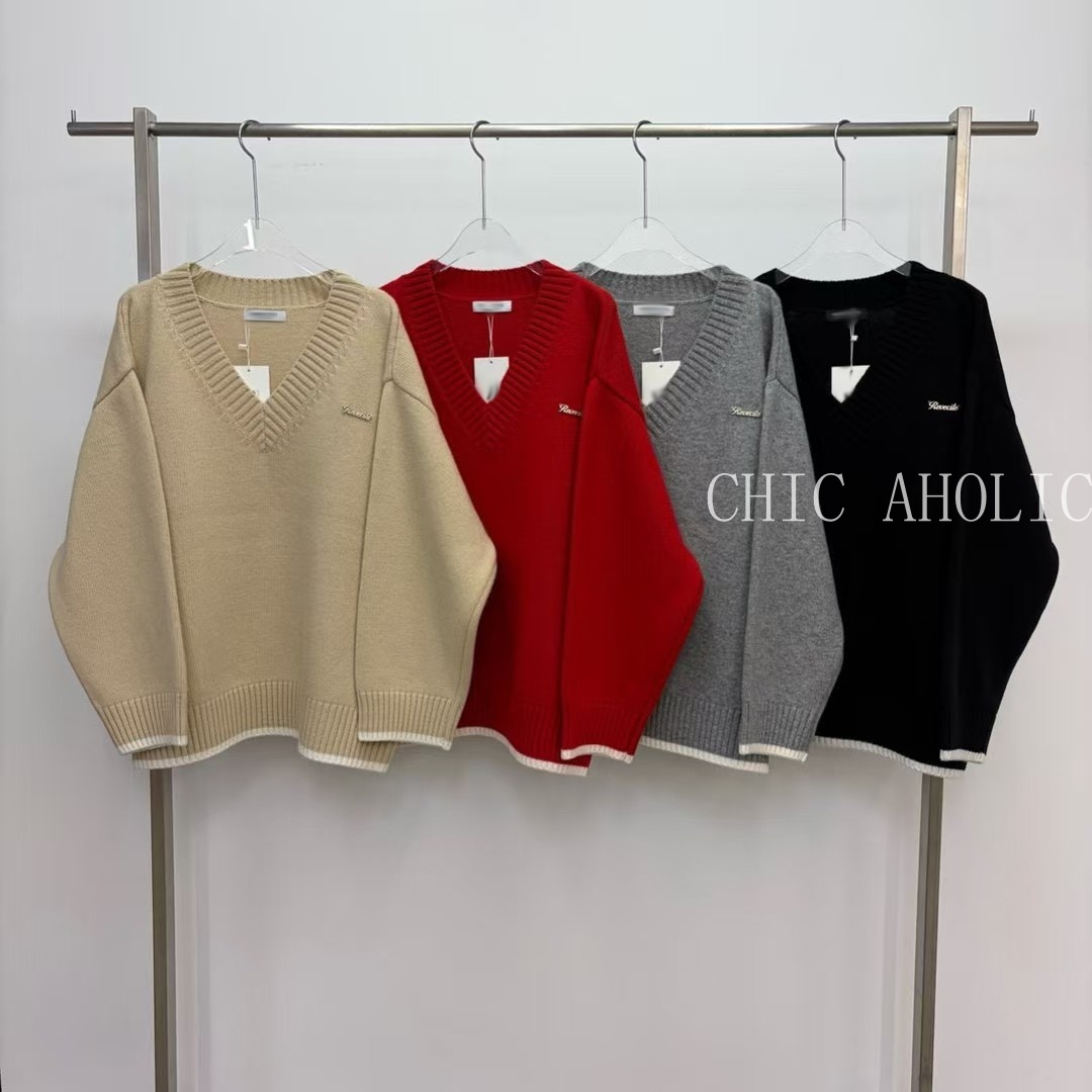 FEB35羊毛40%撞色邊針織衣