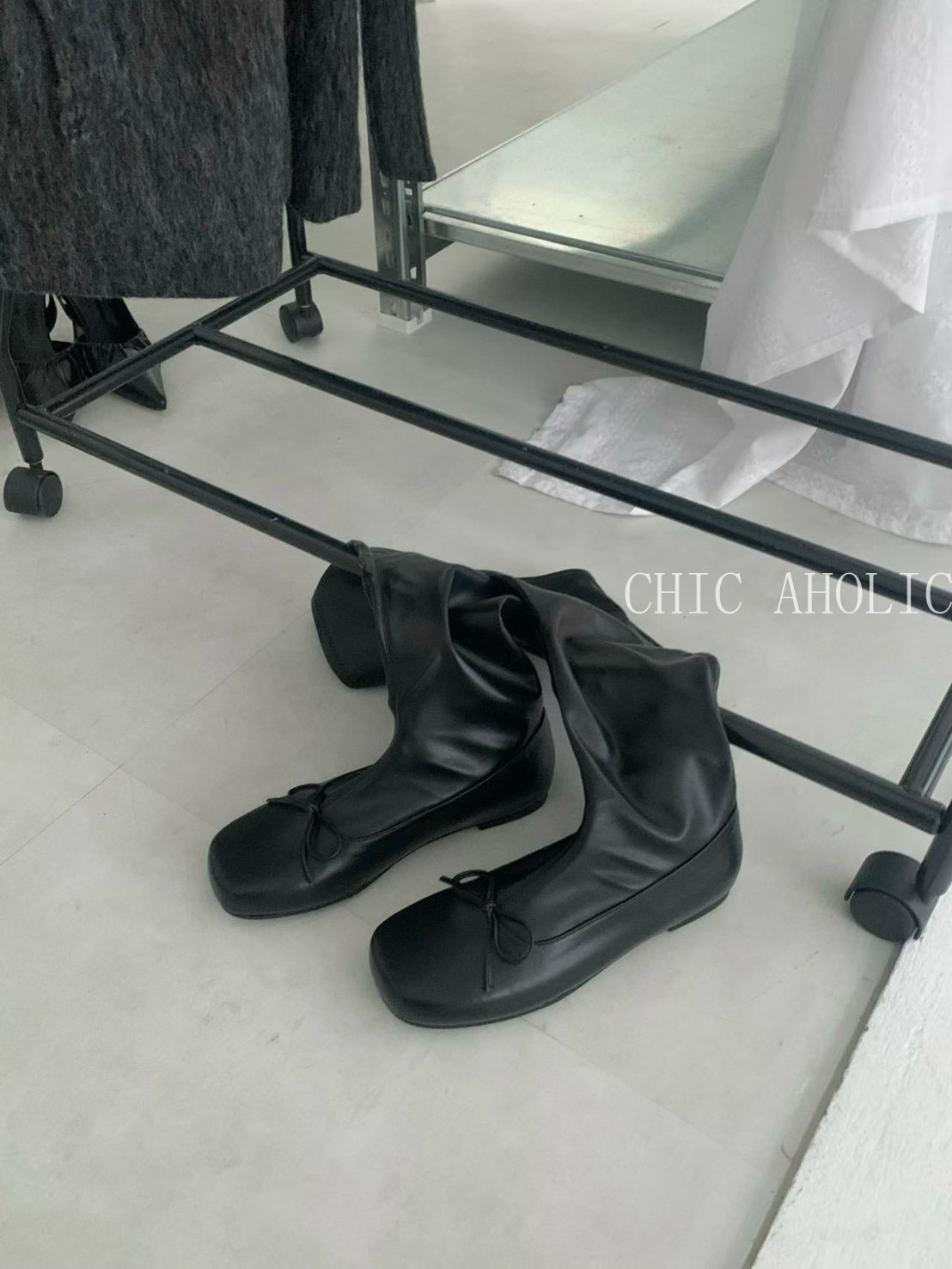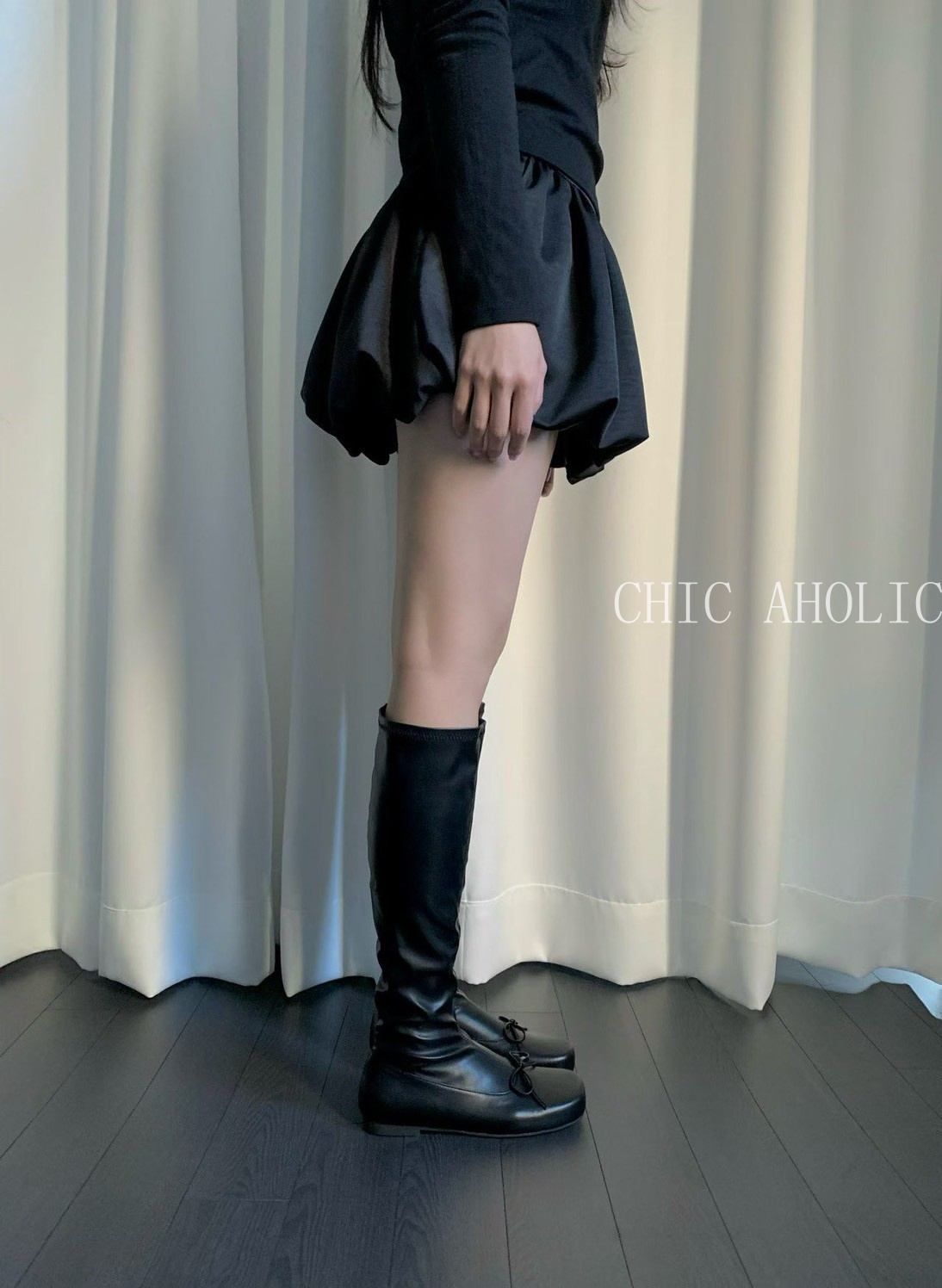 SSR52 方頭芭蕾蝴蝶結皮版長靴