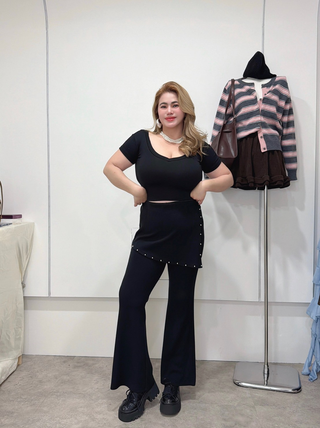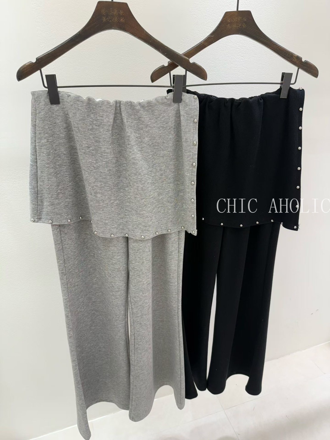 WQ18鉚釘裙擺兩件式褲子