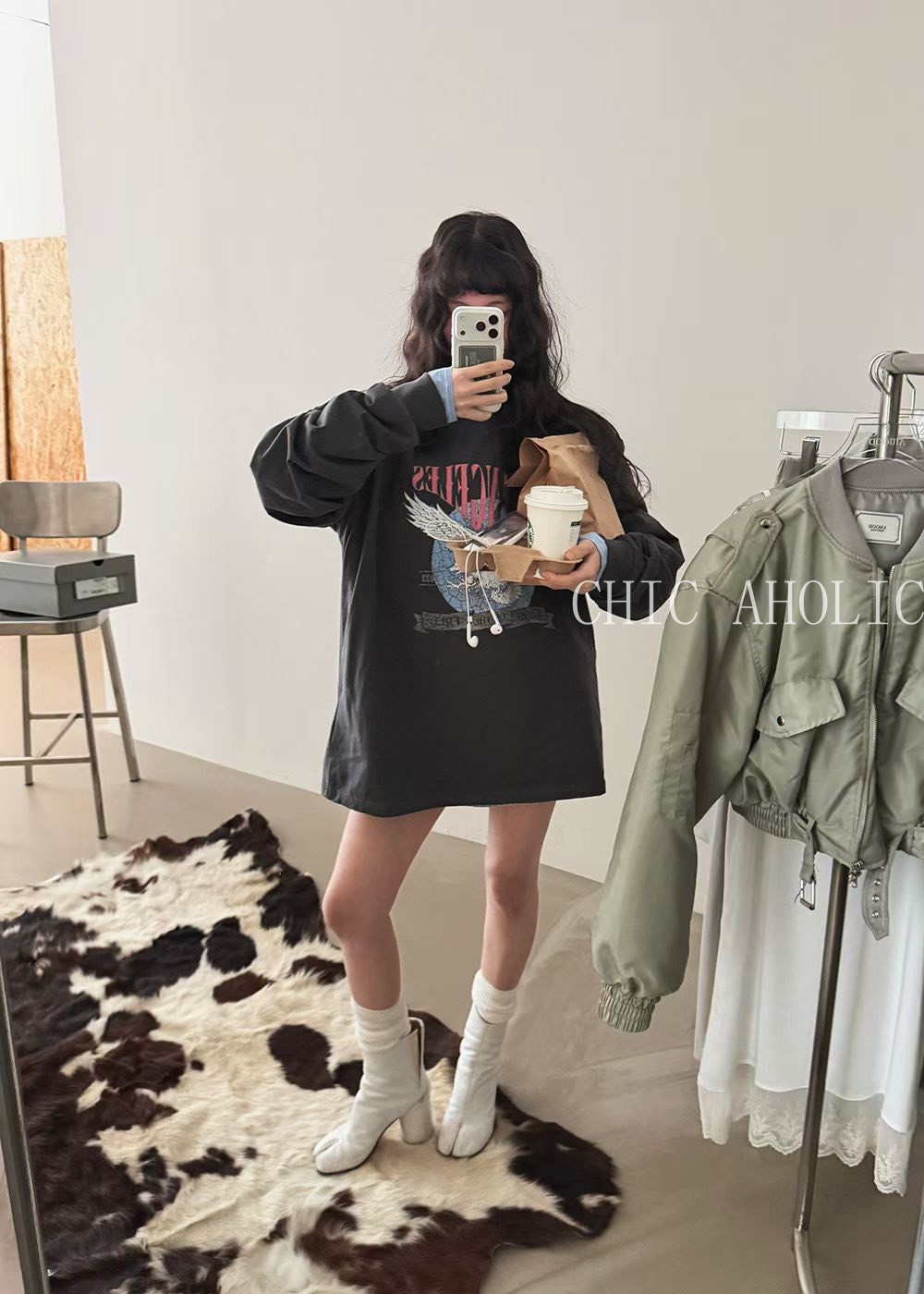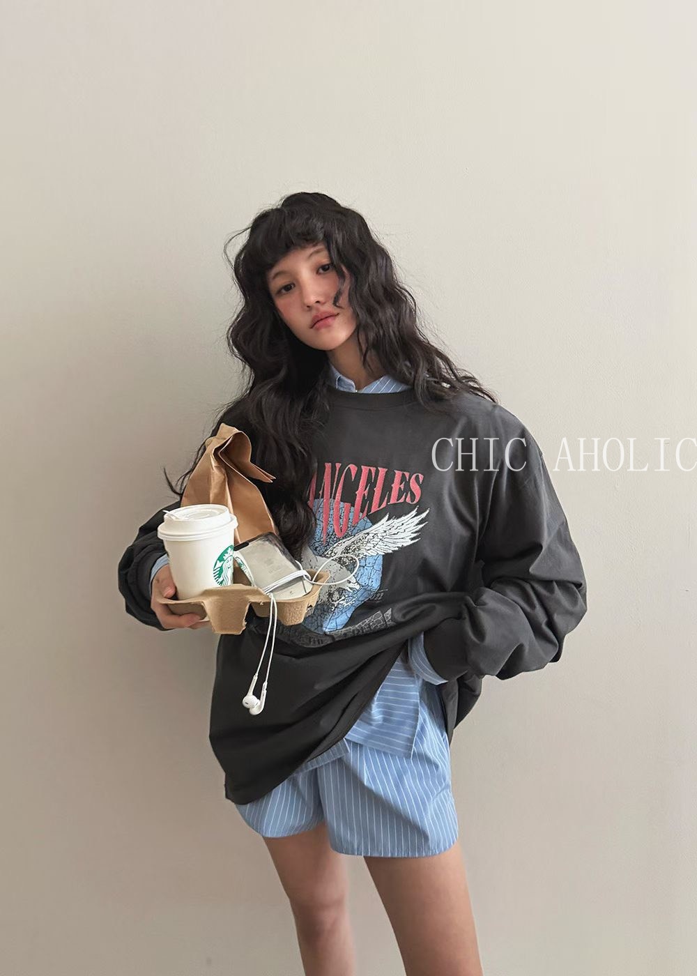 NY18粉字母老鷹鐵灰長上衣