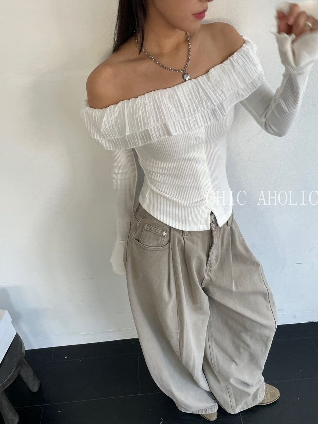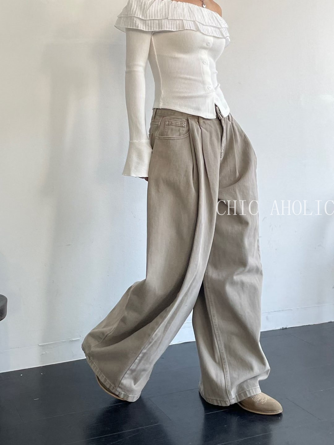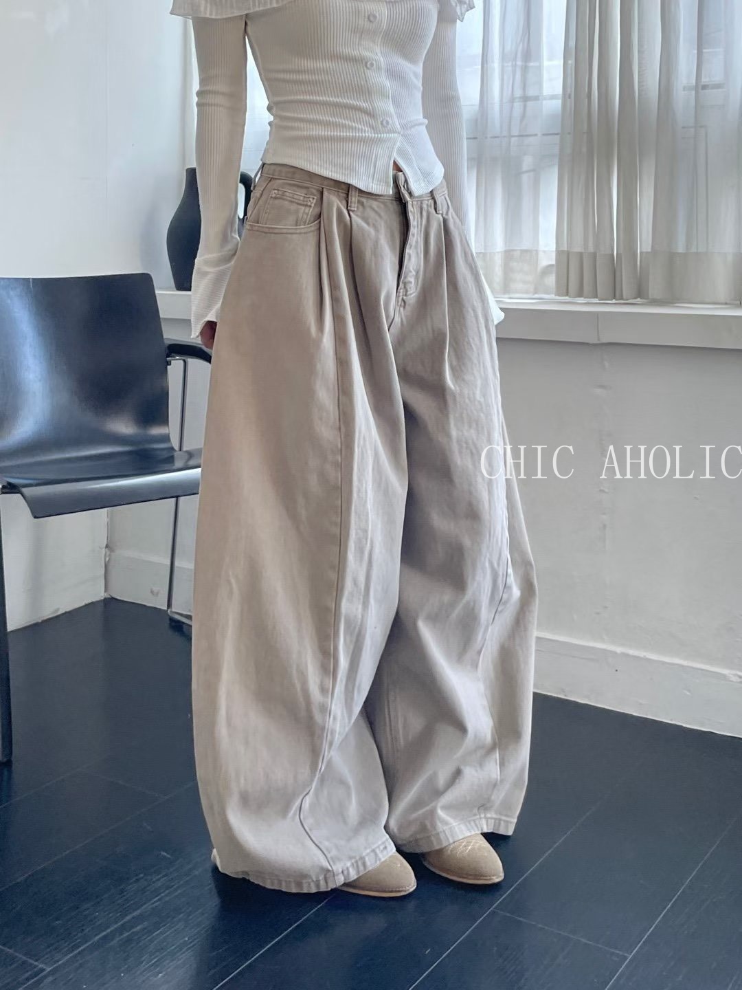 NY02珍珠口袋寬棉褲